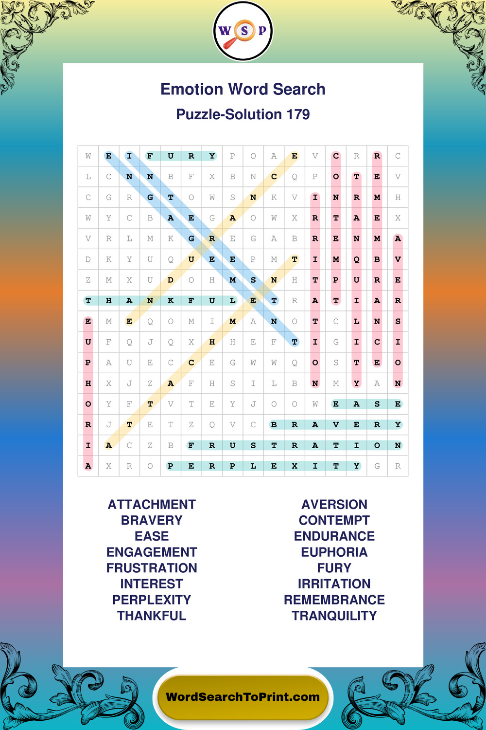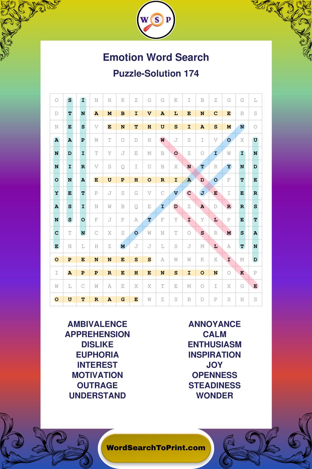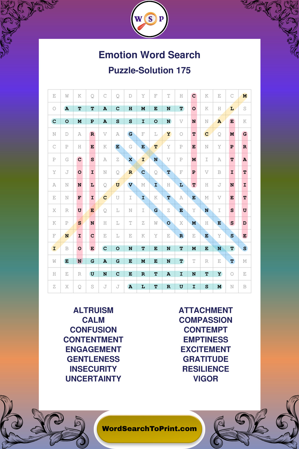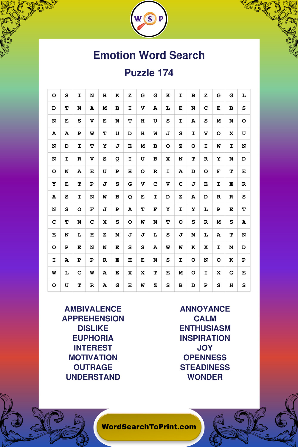 Printable Emotion Wordsearch Puzzles
