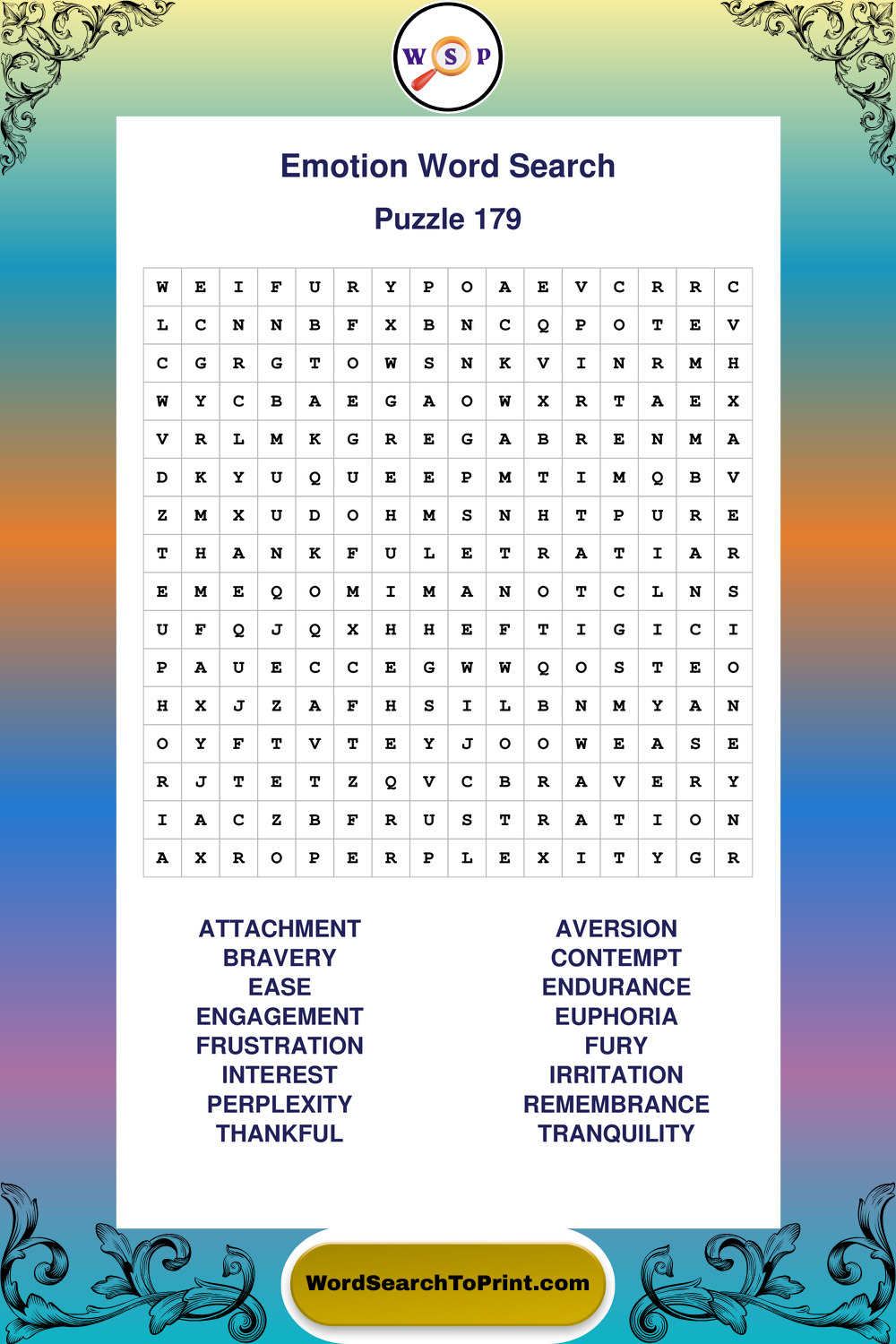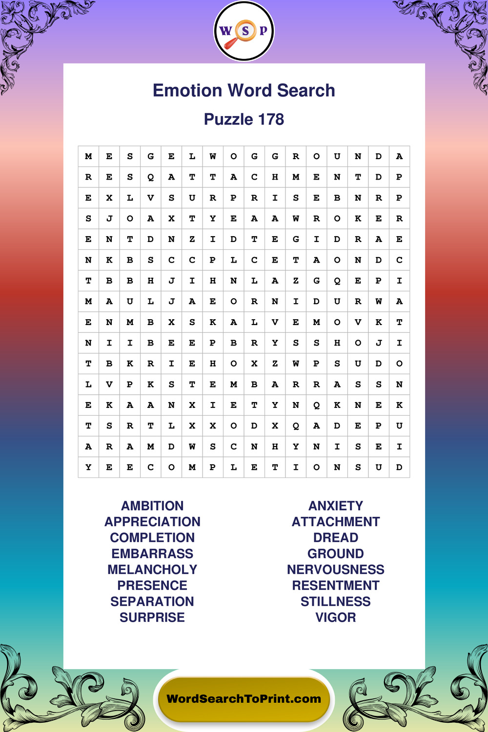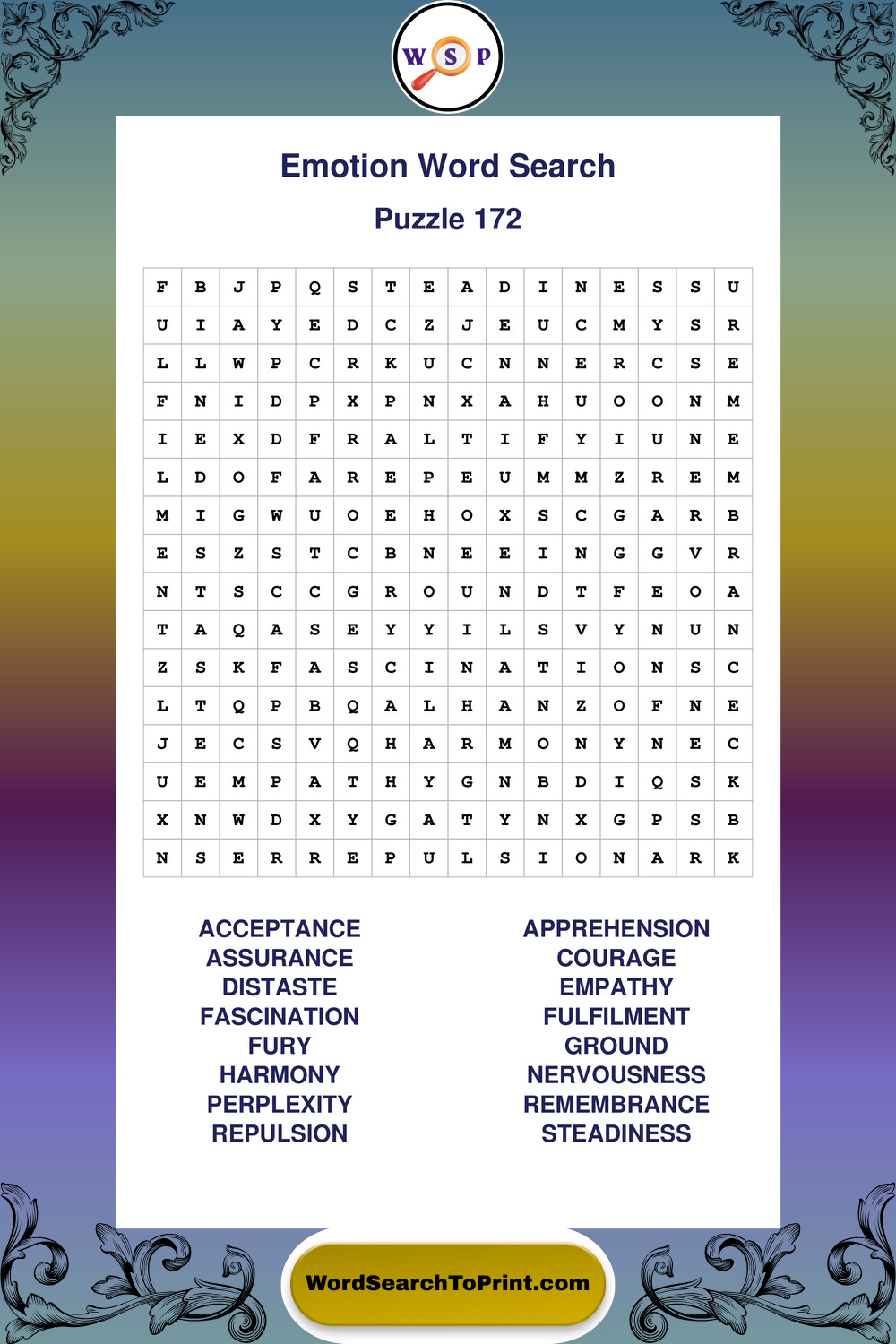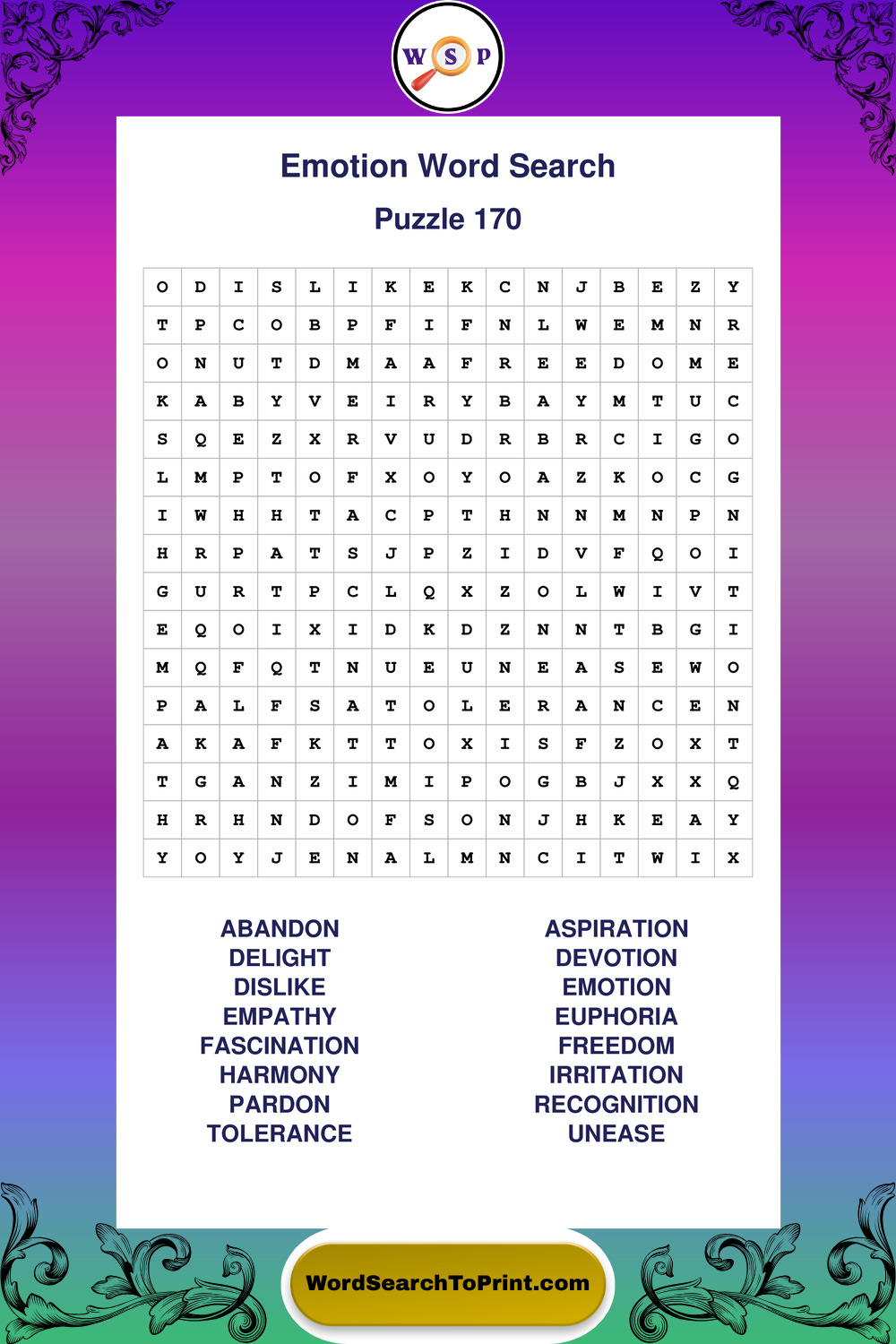 Printable Emotion Wordsearch Puzzles