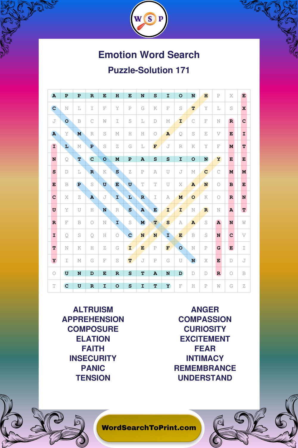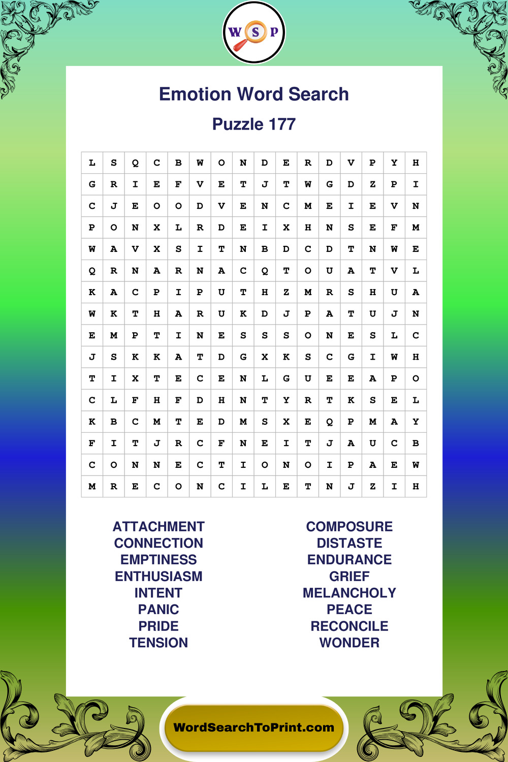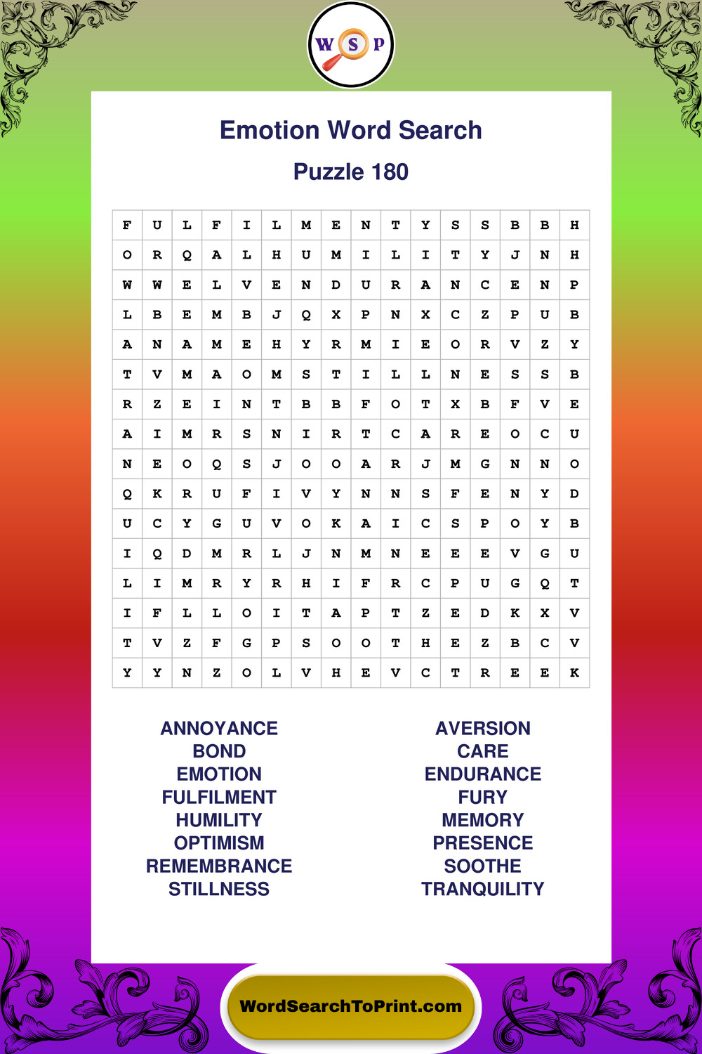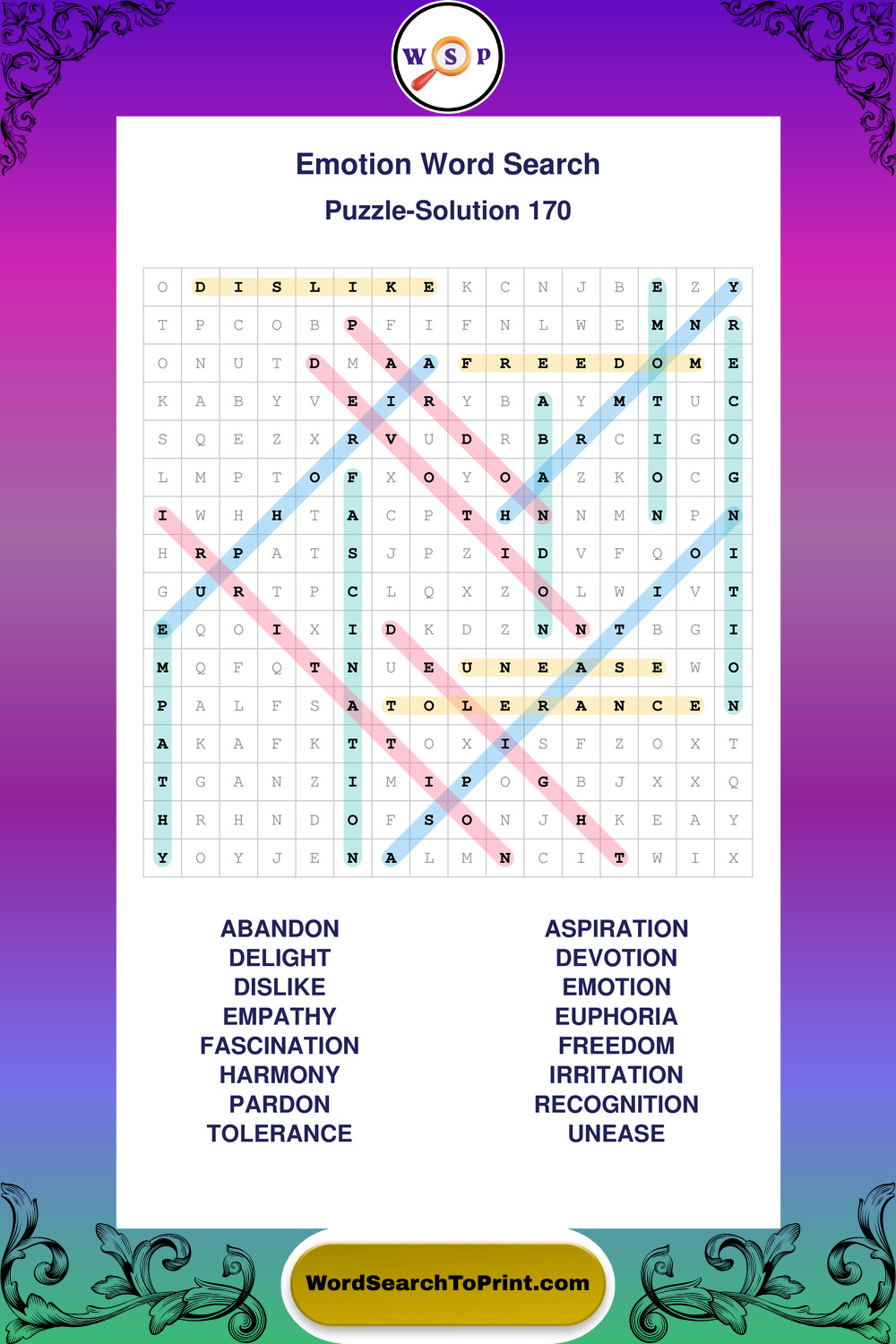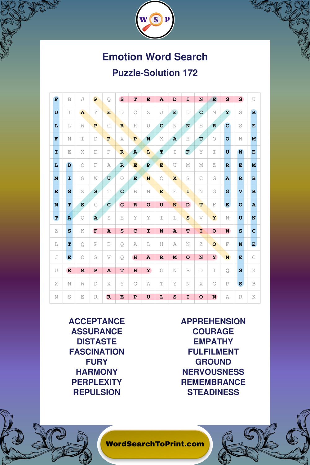 Printable Emotion Wordsearch Puzzles