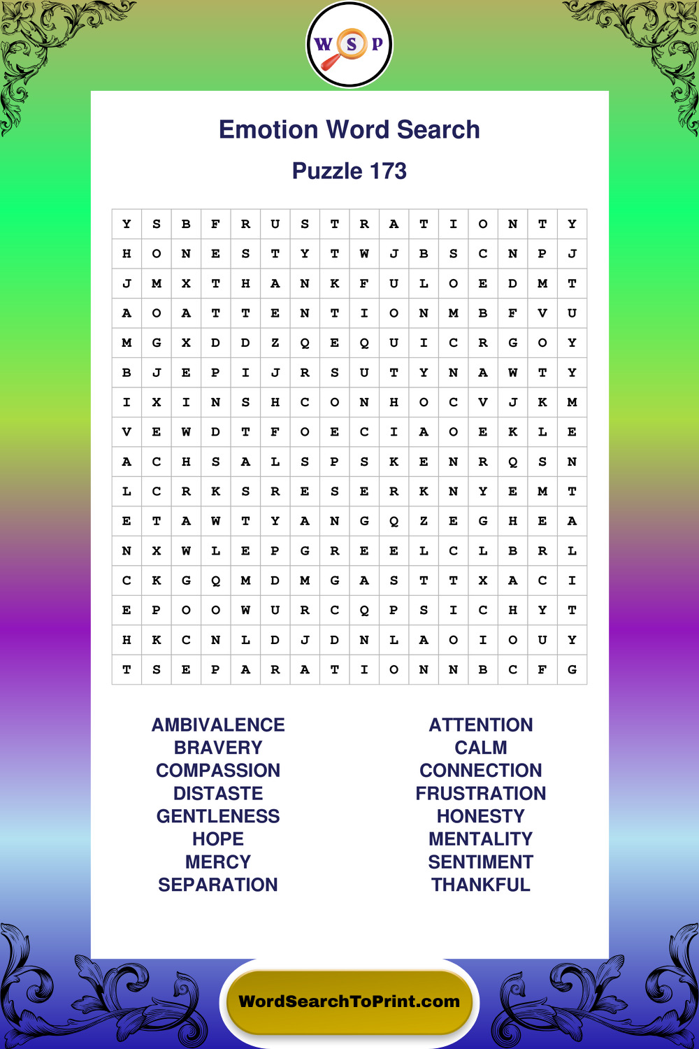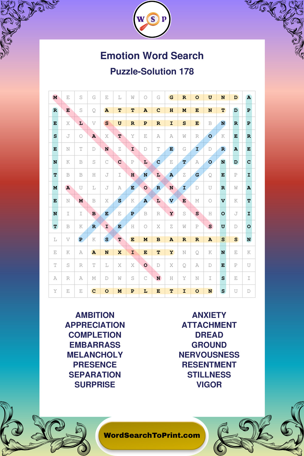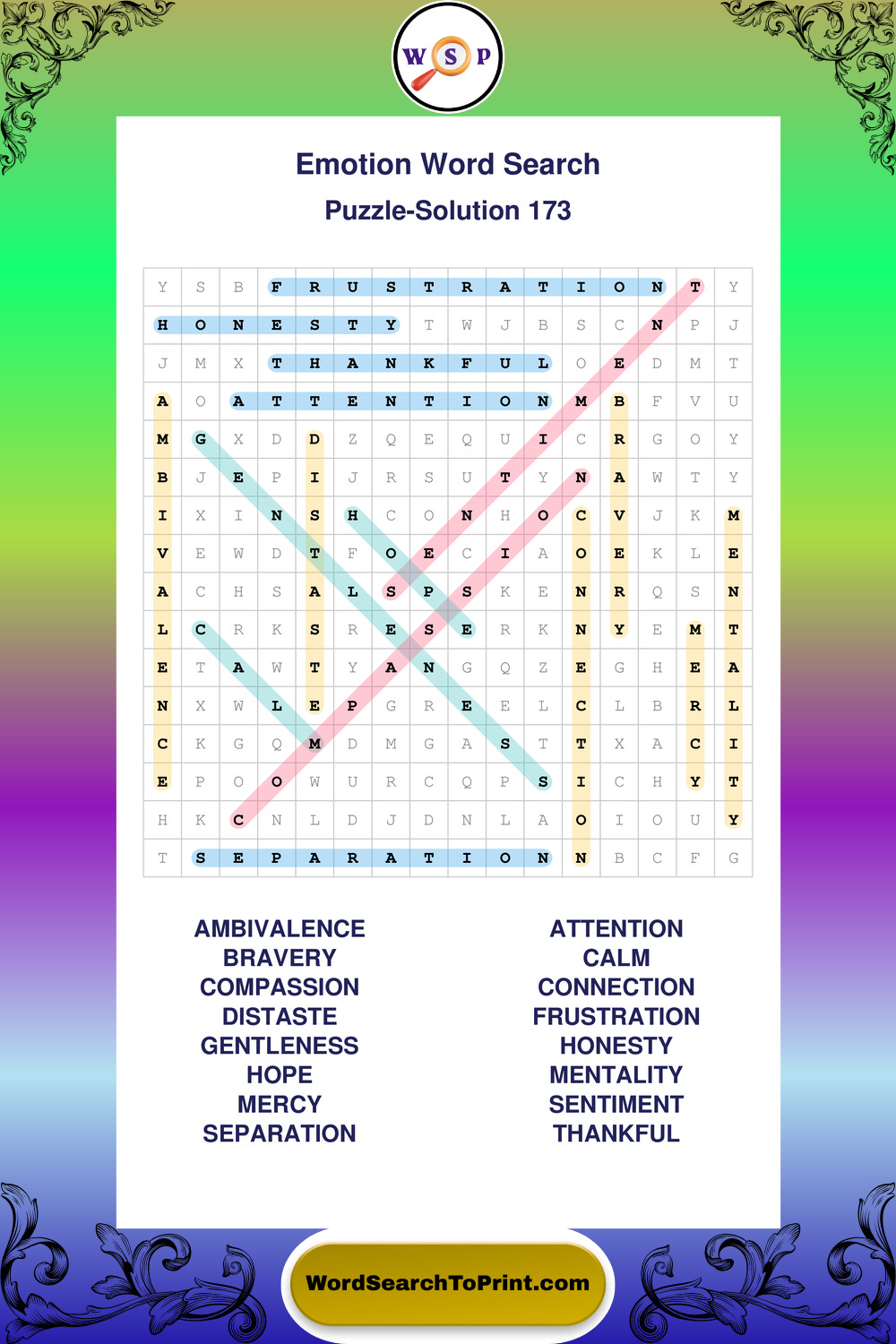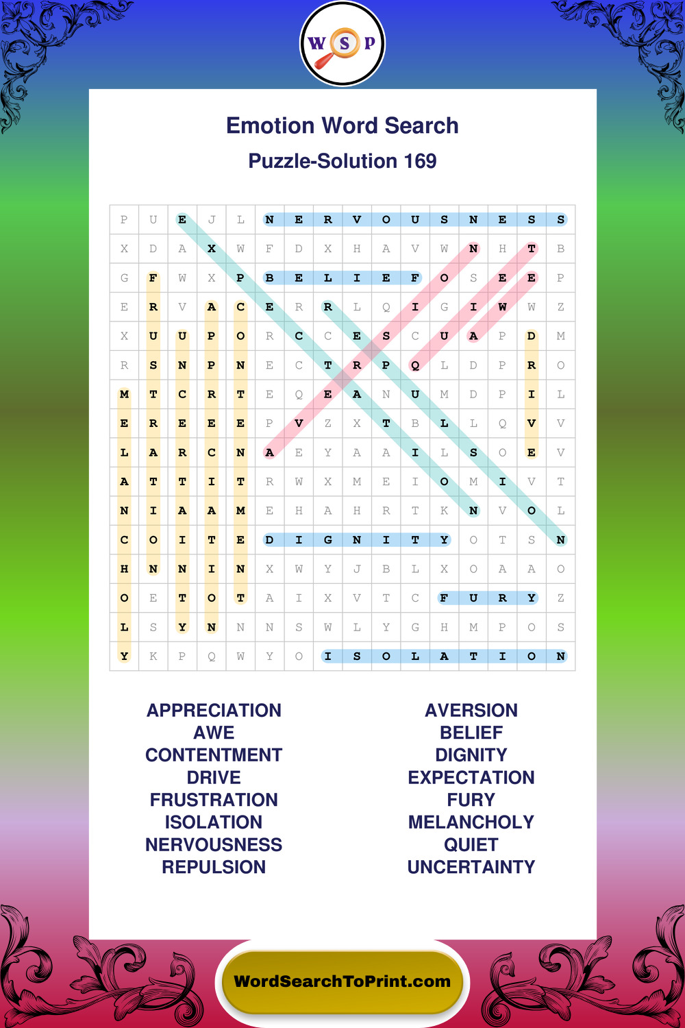 Printable Emotion Wordsearch Puzzles
