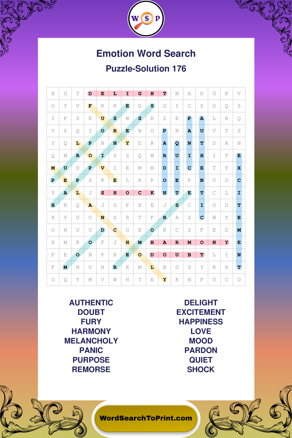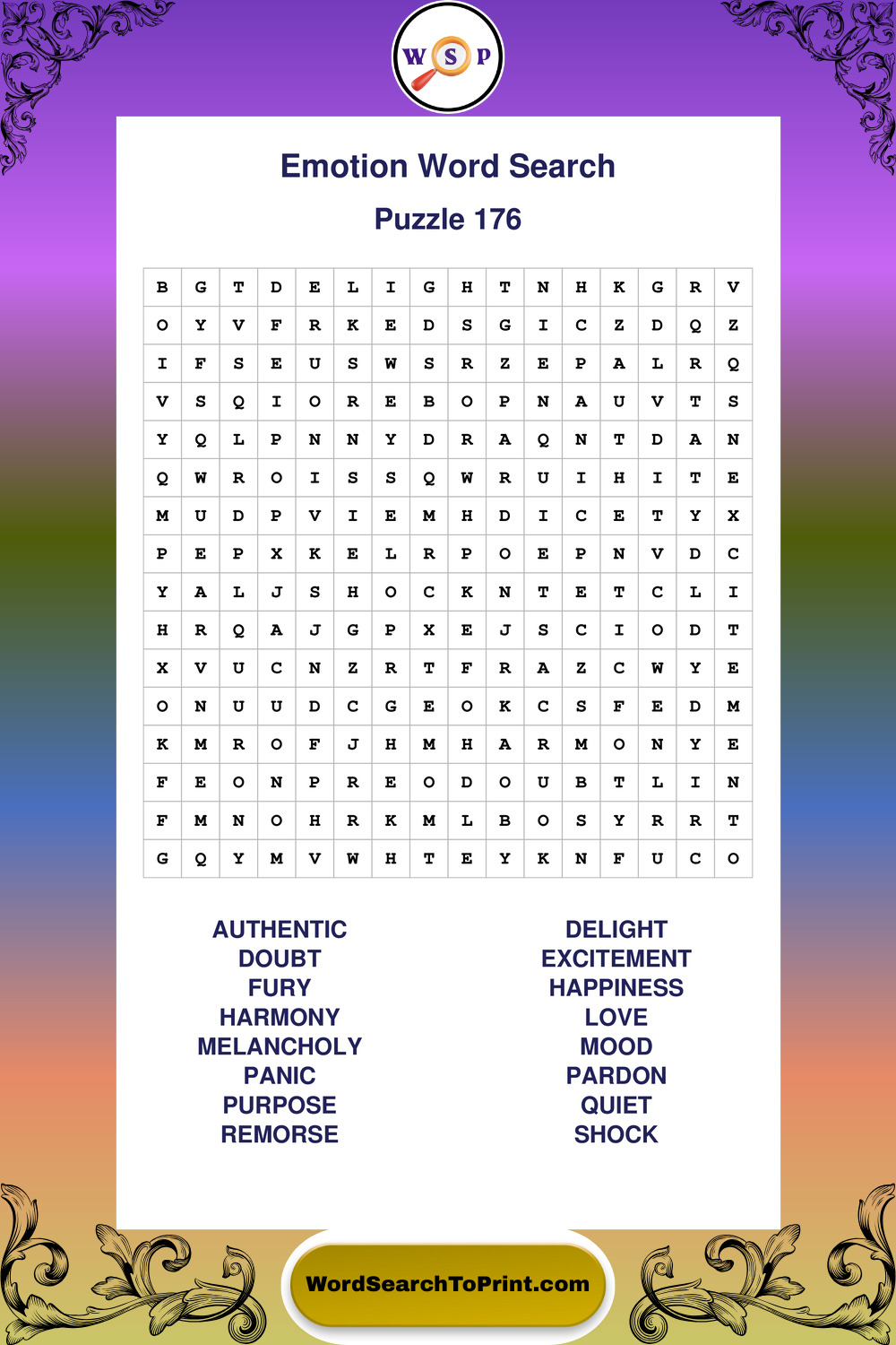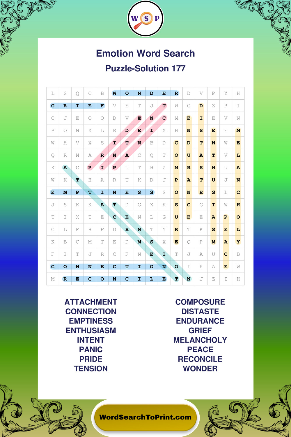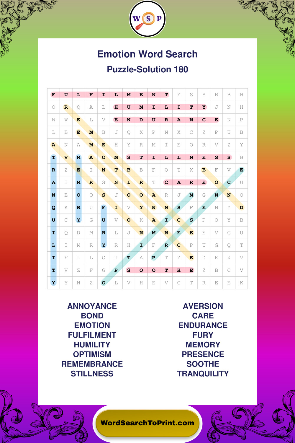 Printable Emotion Wordsearch Puzzles