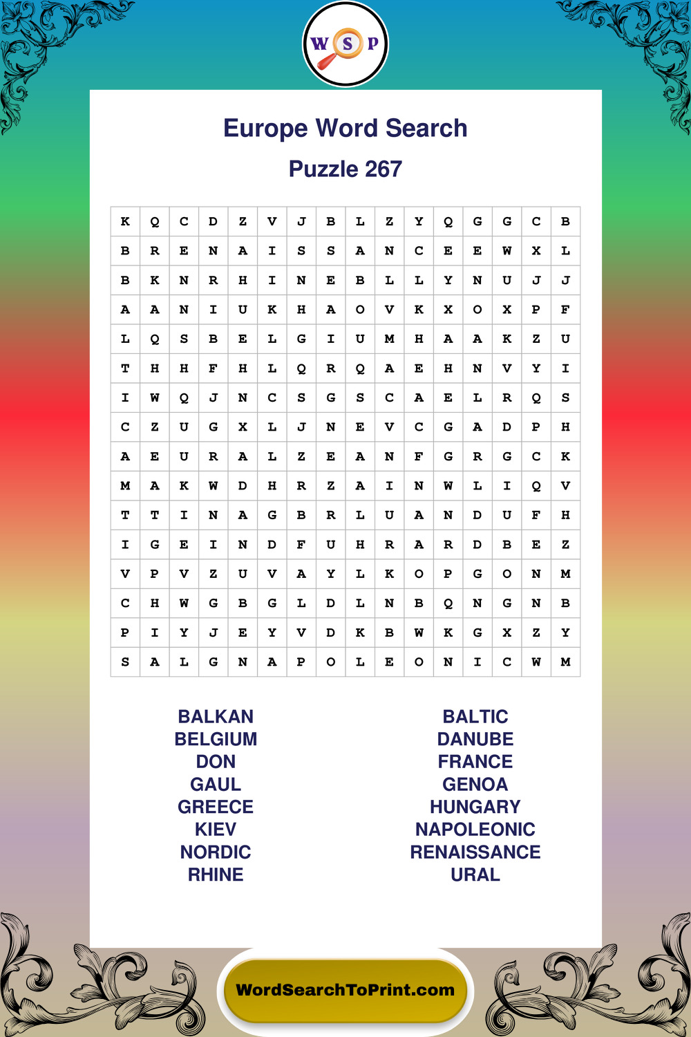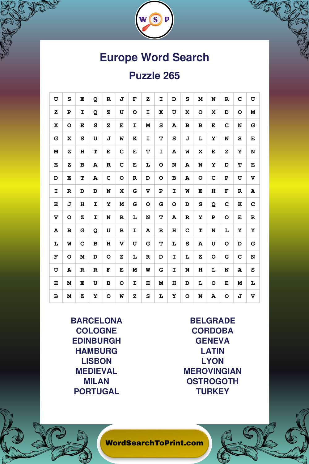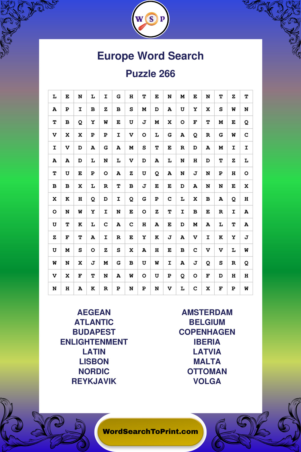Browse easy-to-read large print Europe wordsearches created for peaceful moments and clear visual comfort.