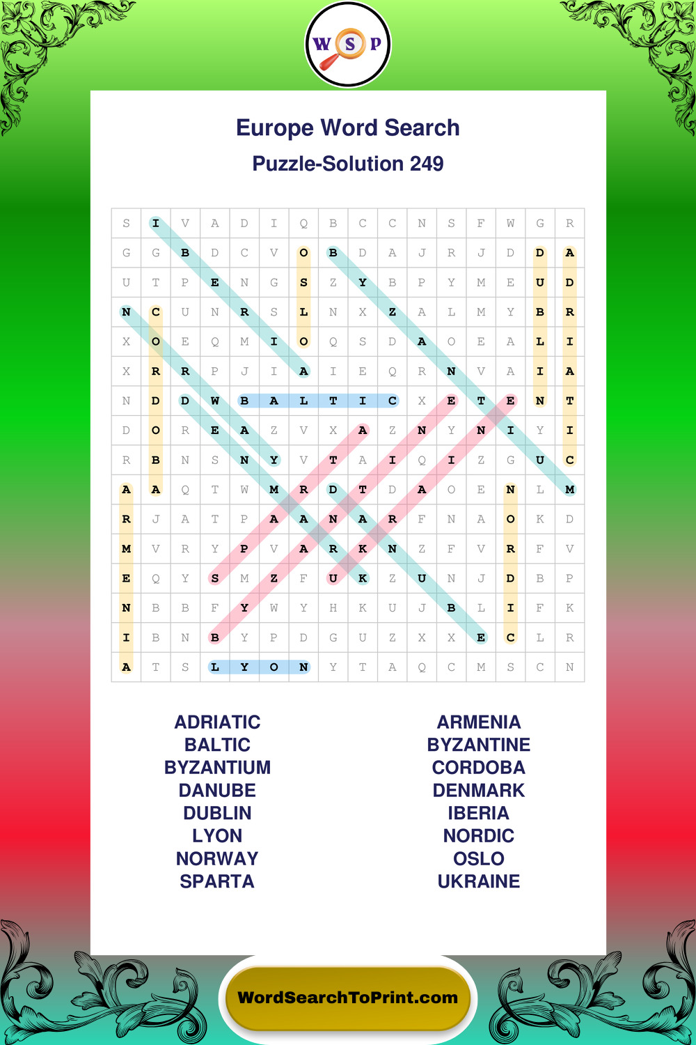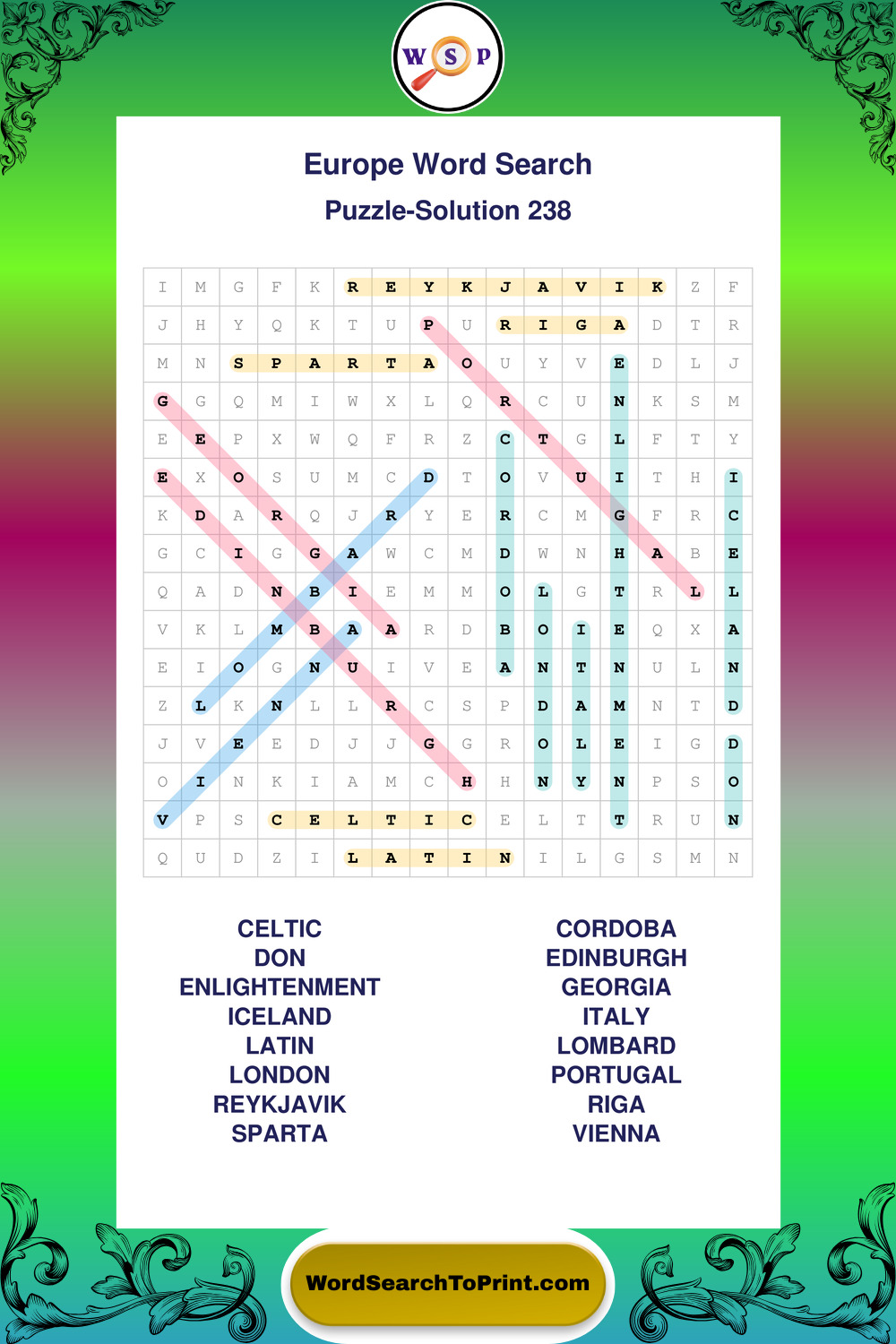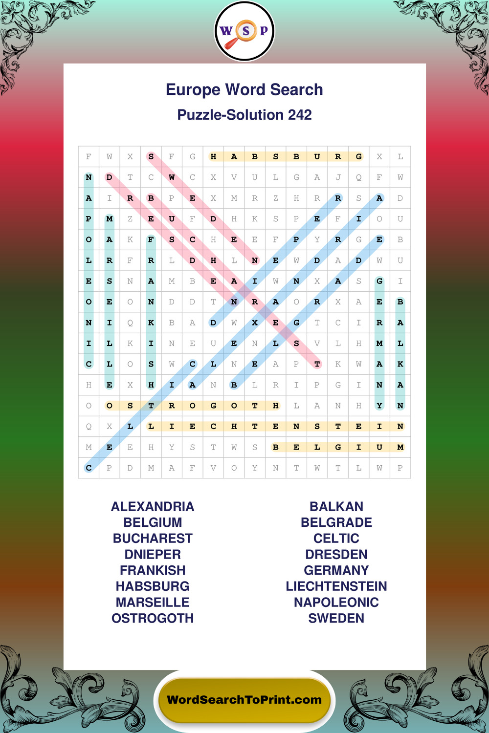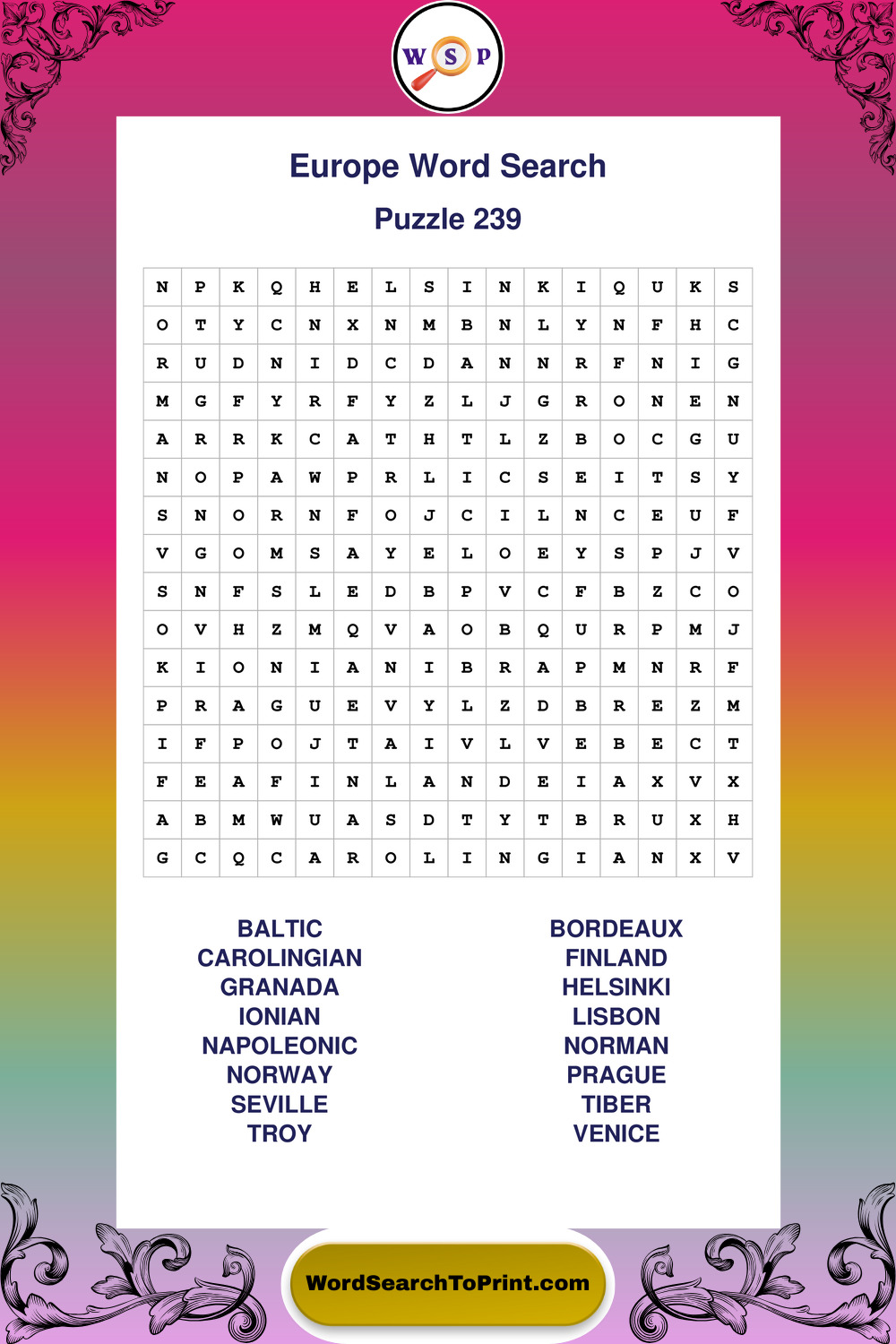 Europe Wordsearches