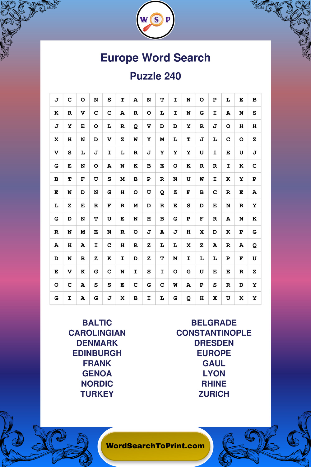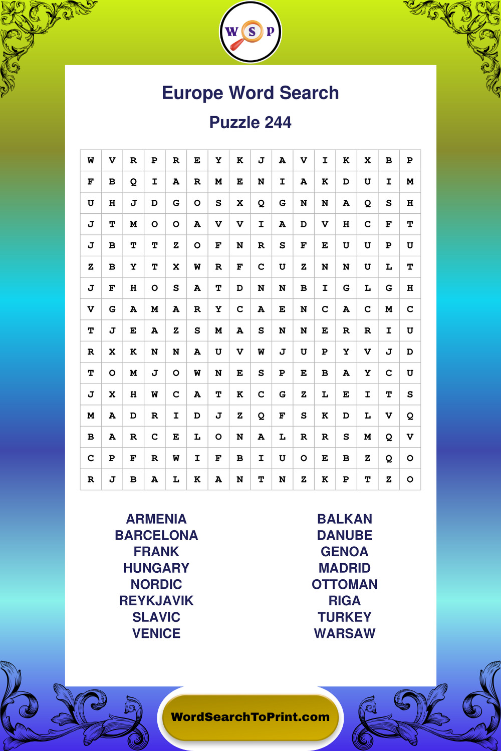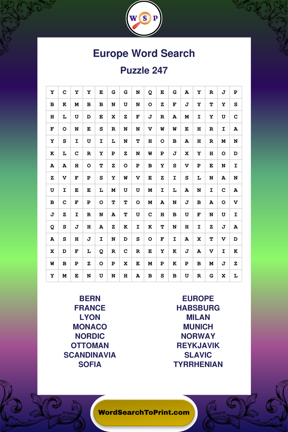 Printable Europe Wordsearch Puzzles