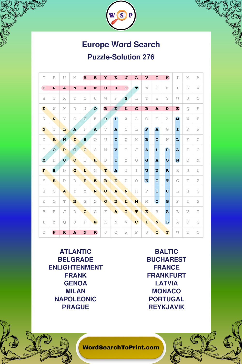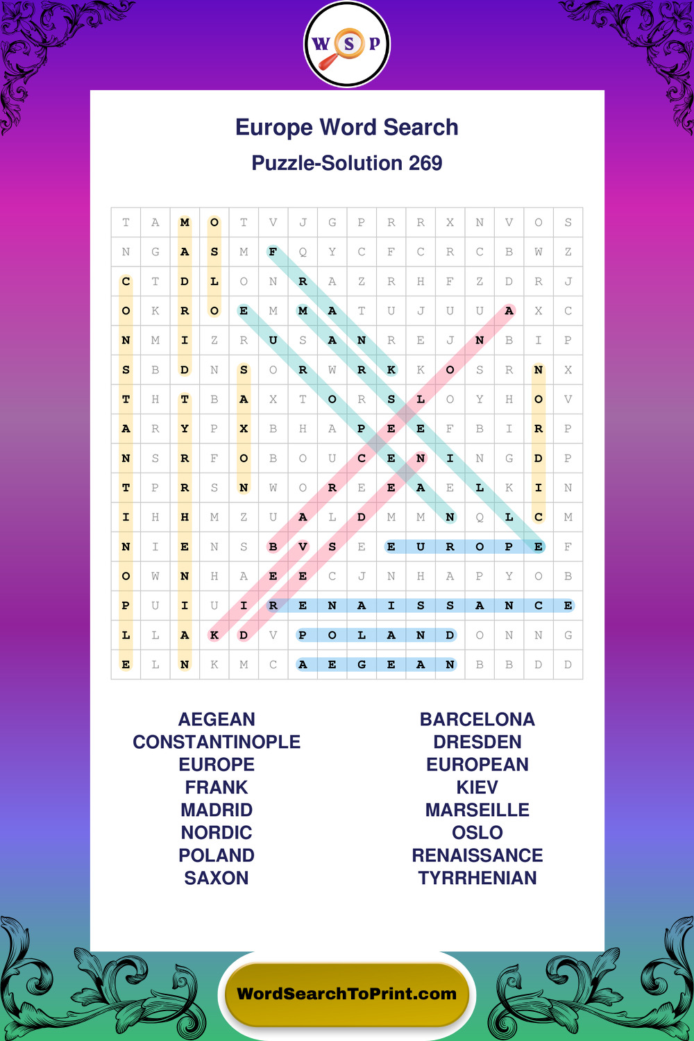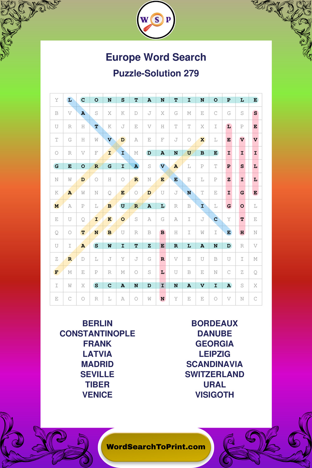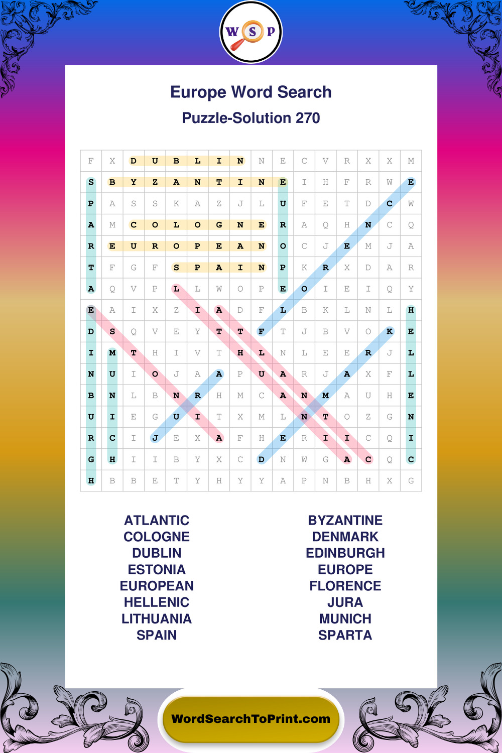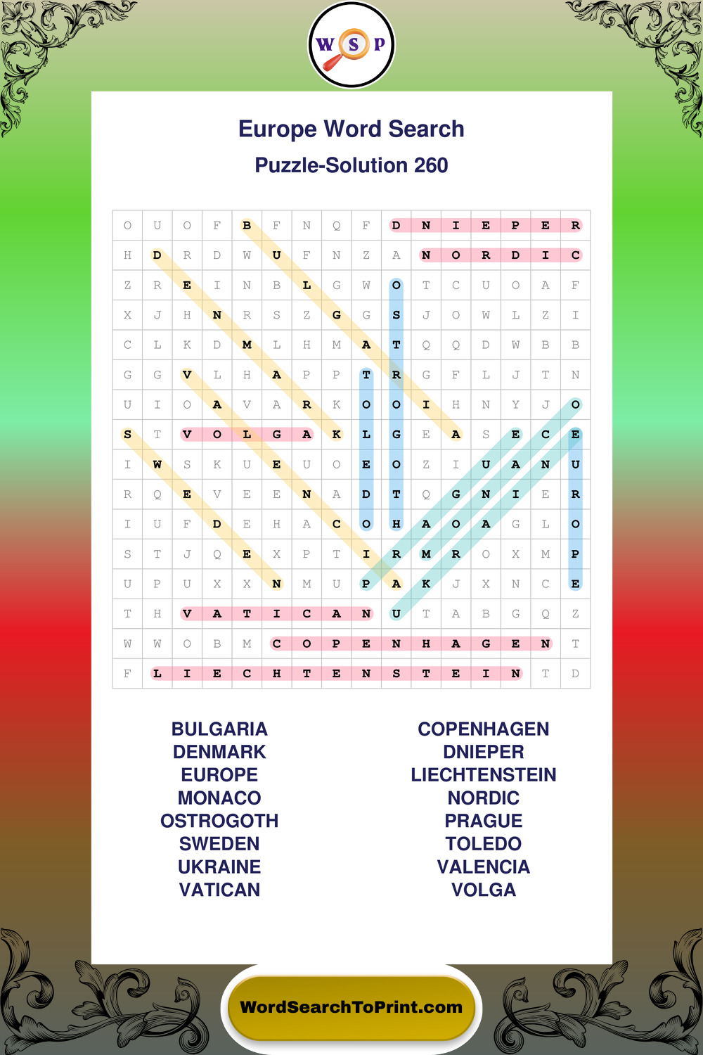 Printable Europe Wordsearch Puzzles