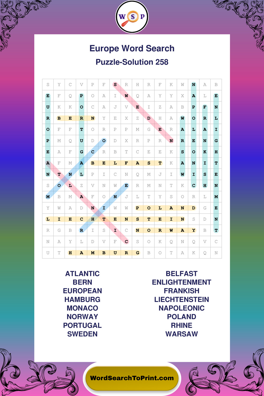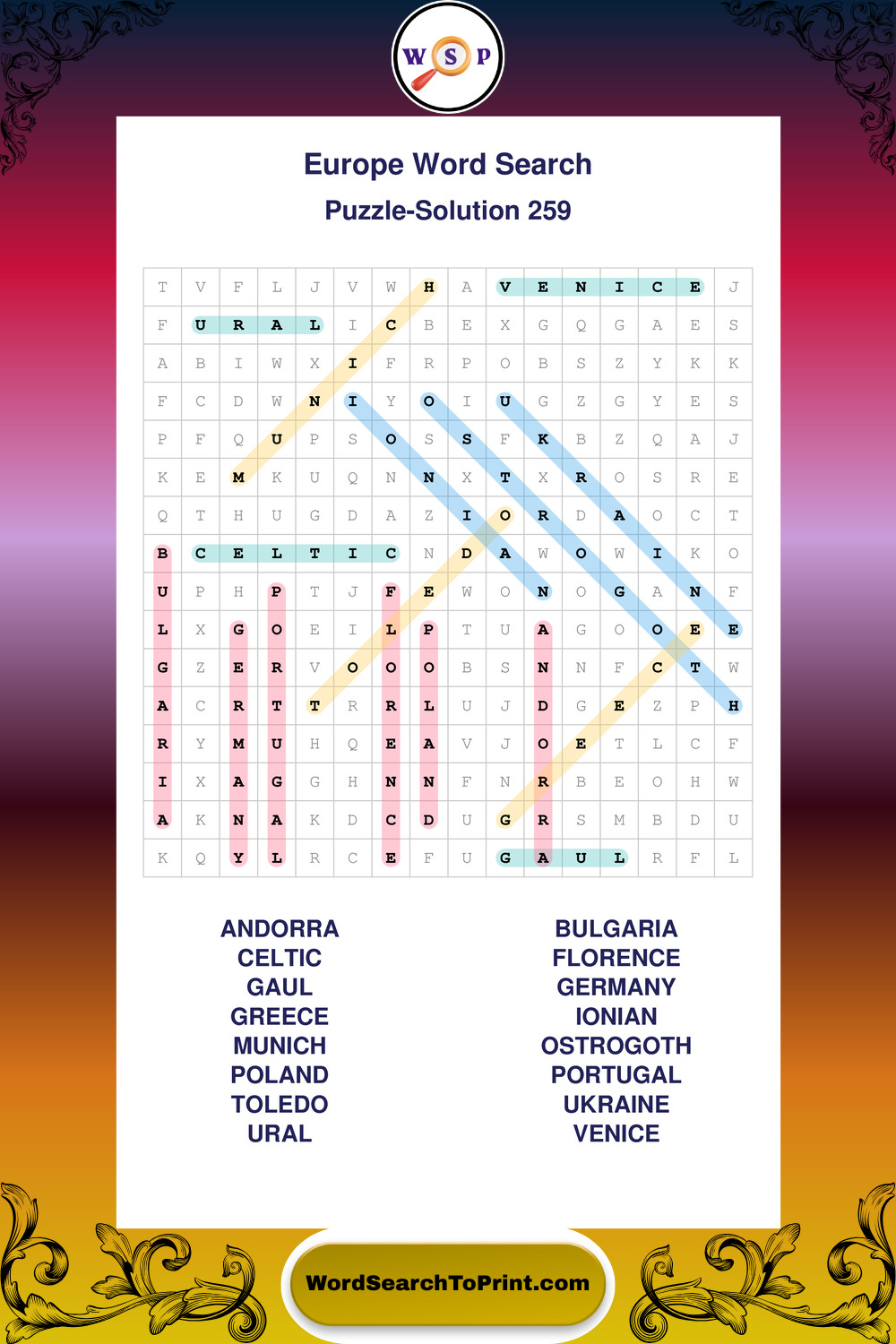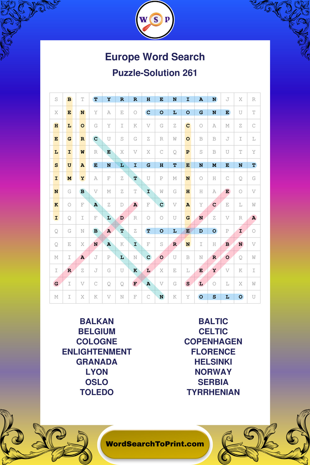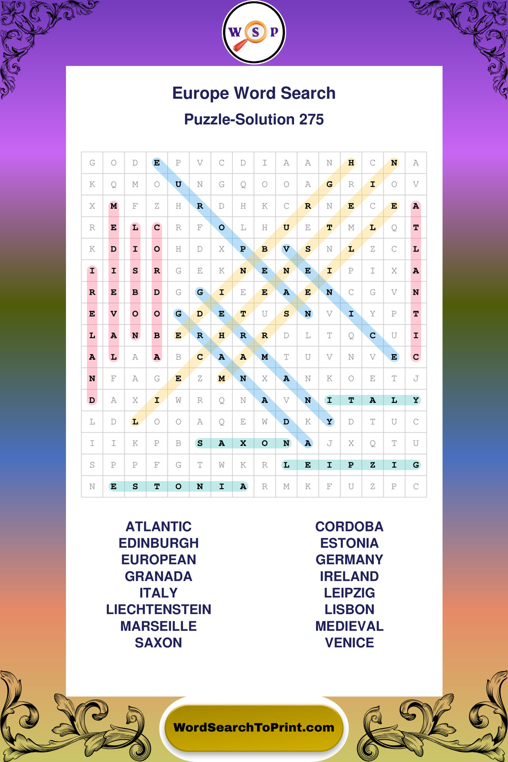 Europe Wordsearches
