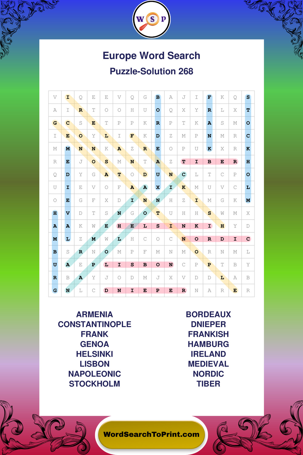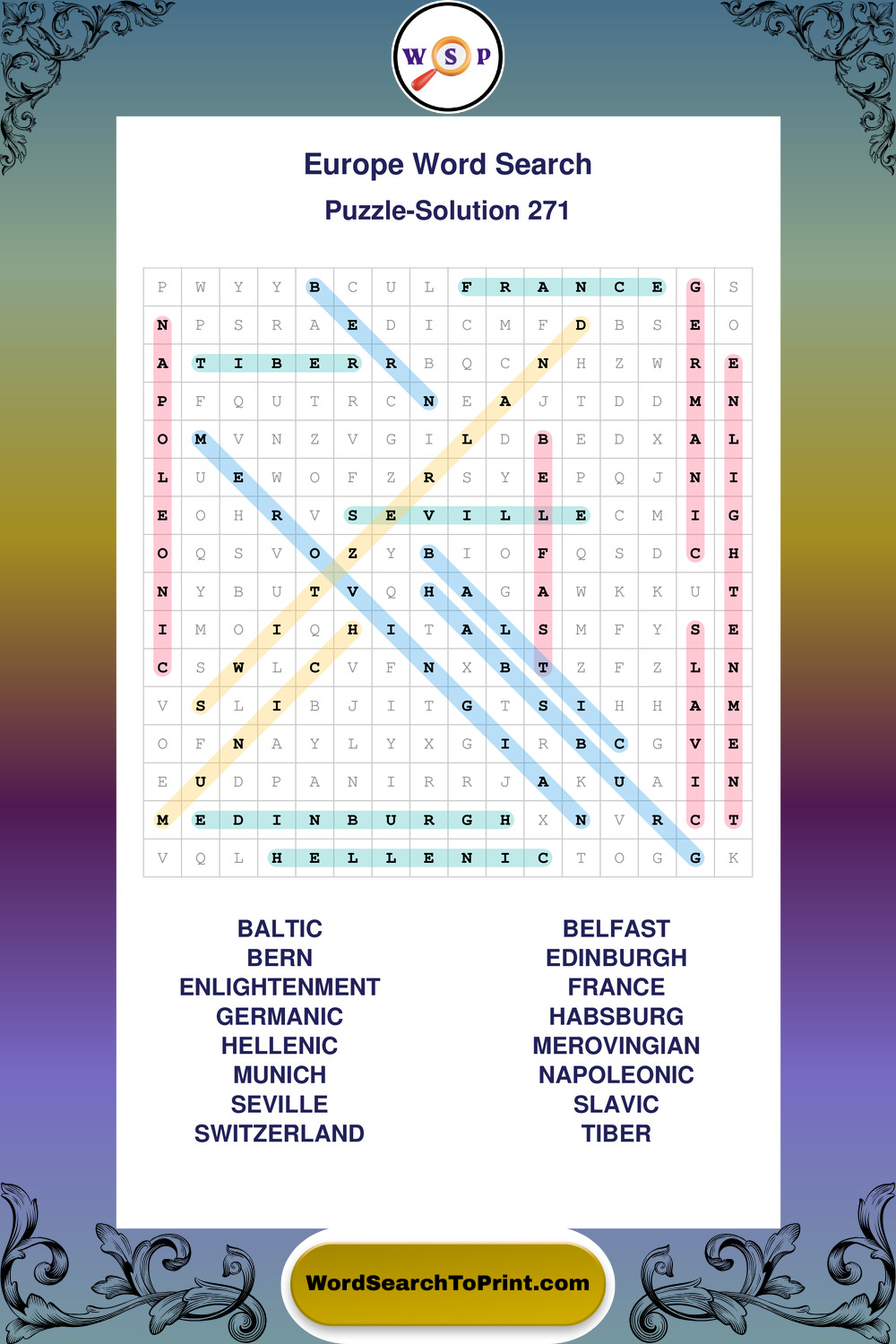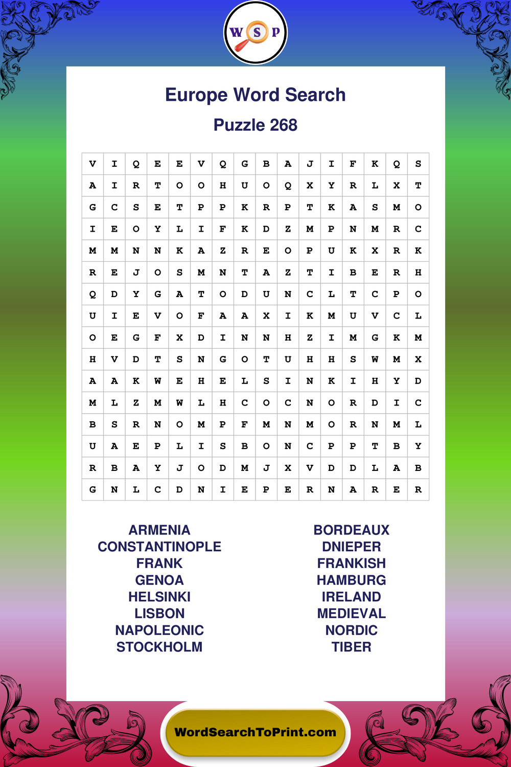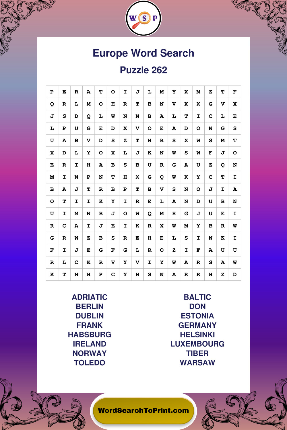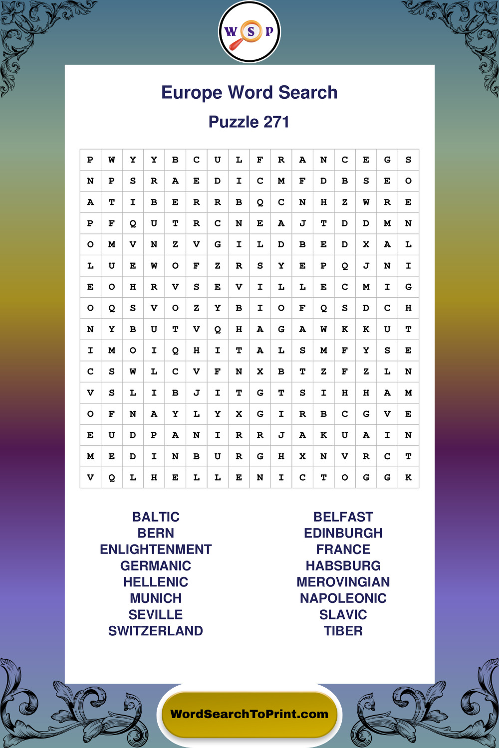 Browse easy-to-read large print Europe wordsearches created for peaceful moments and clear visual comfort.