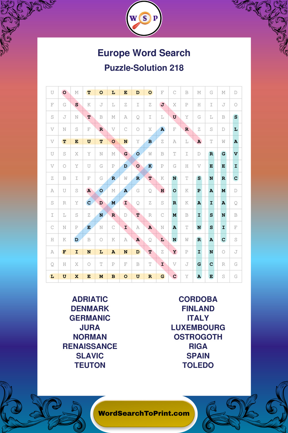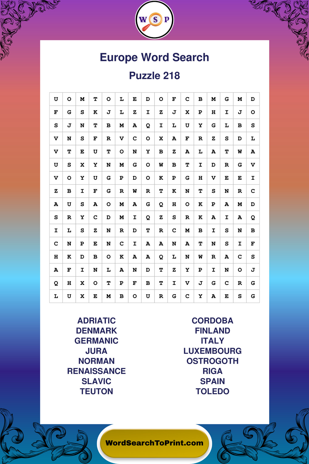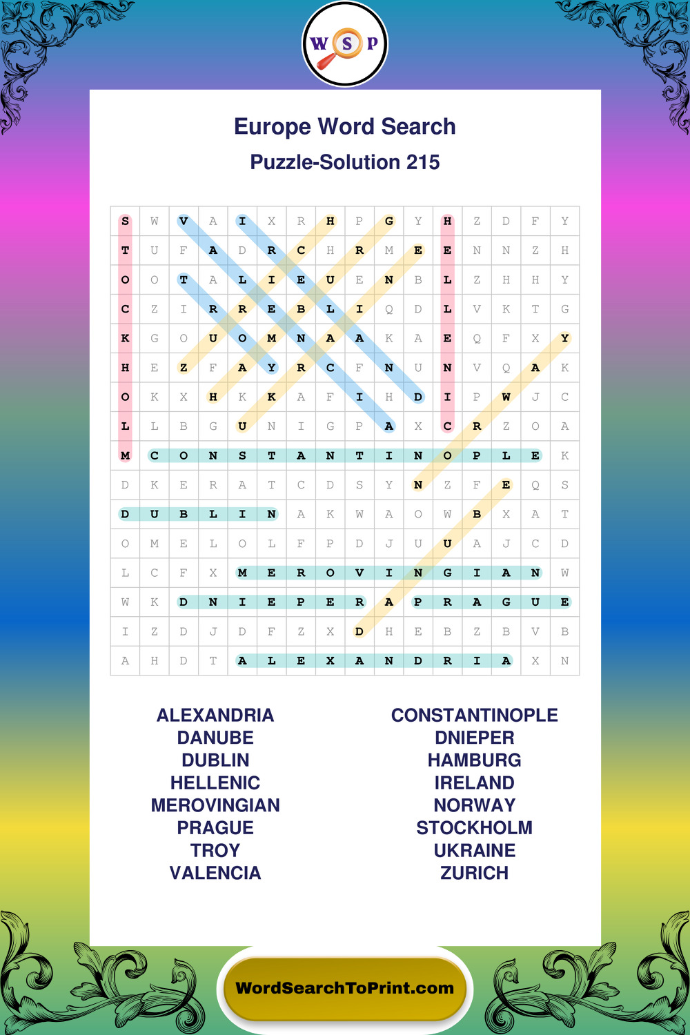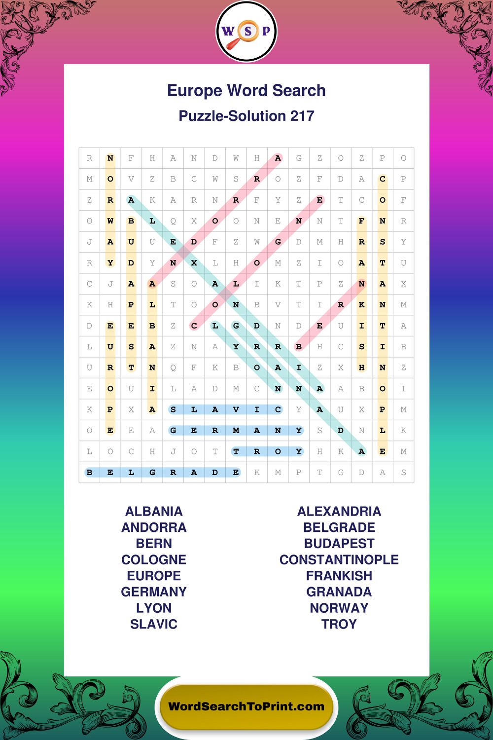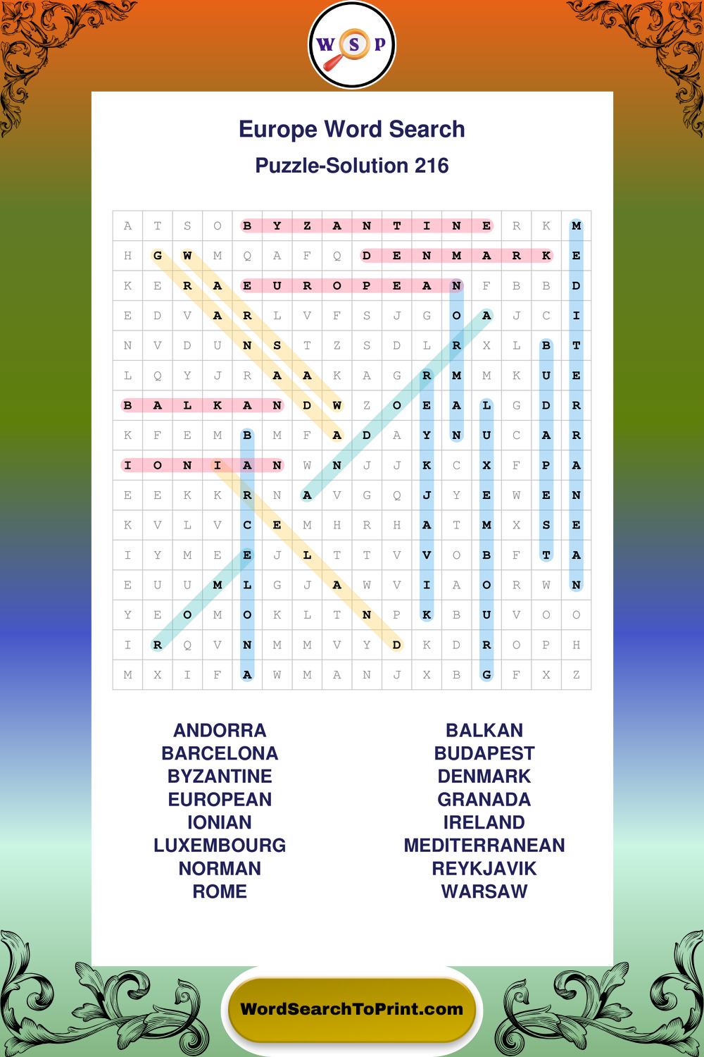 Printable Europe Wordsearch Puzzles