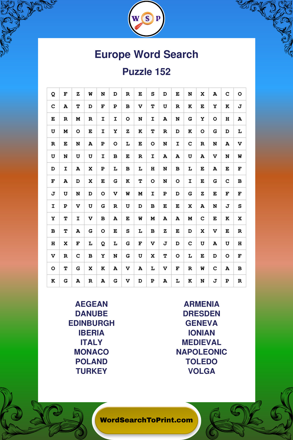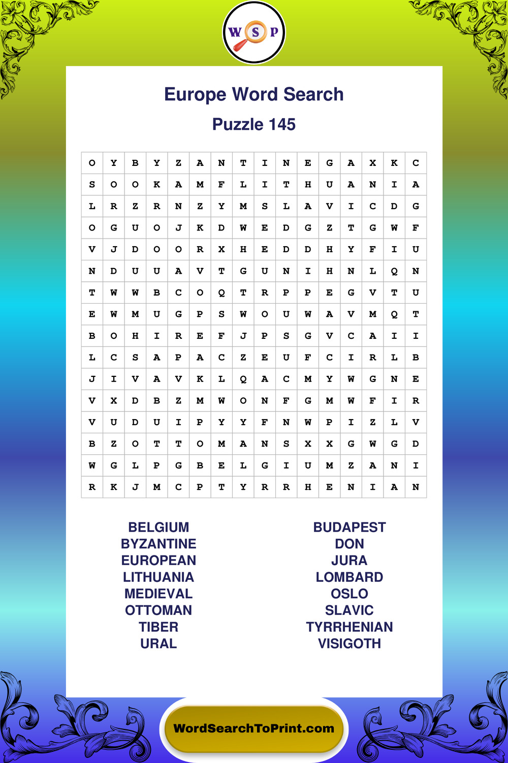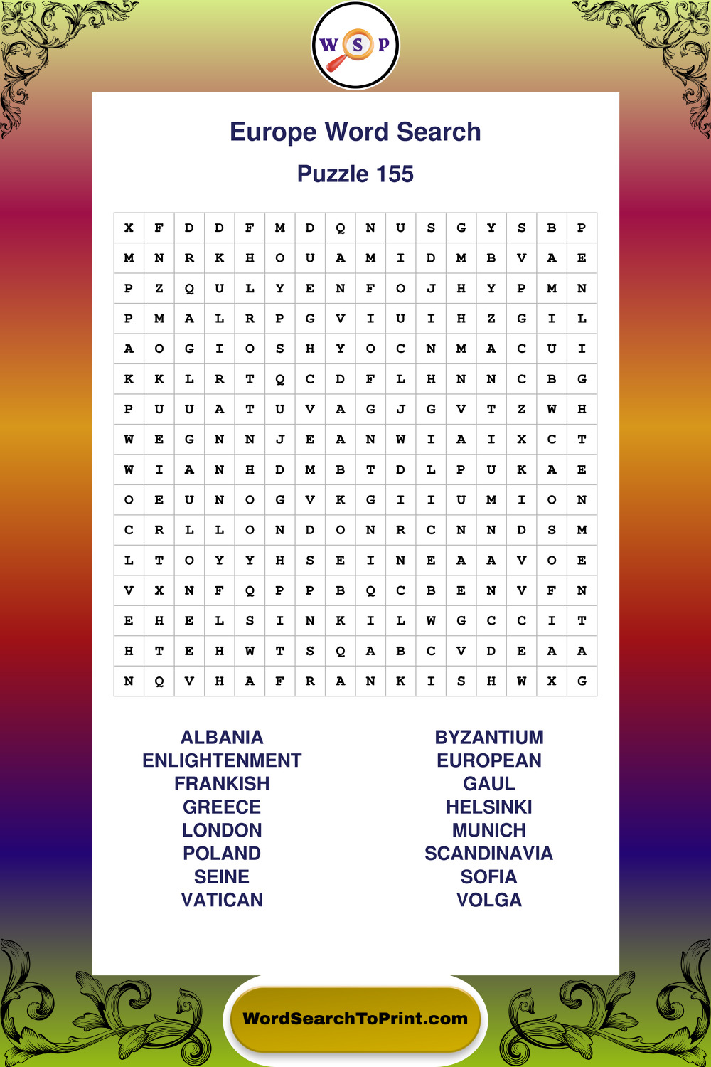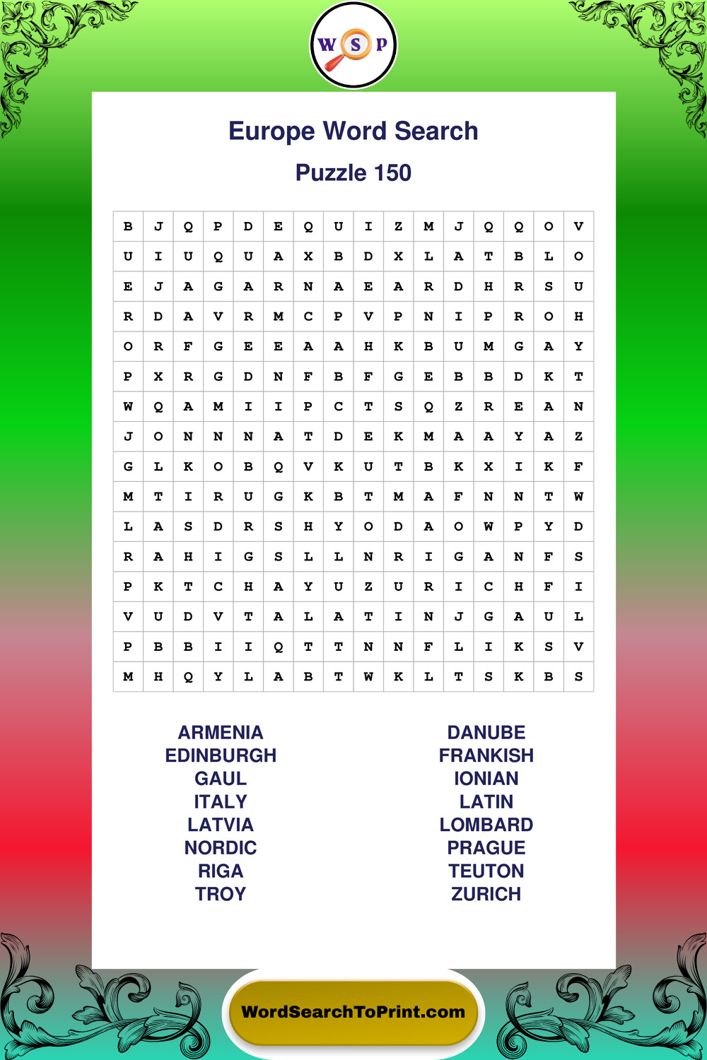 Printable Europe Wordsearch Puzzles