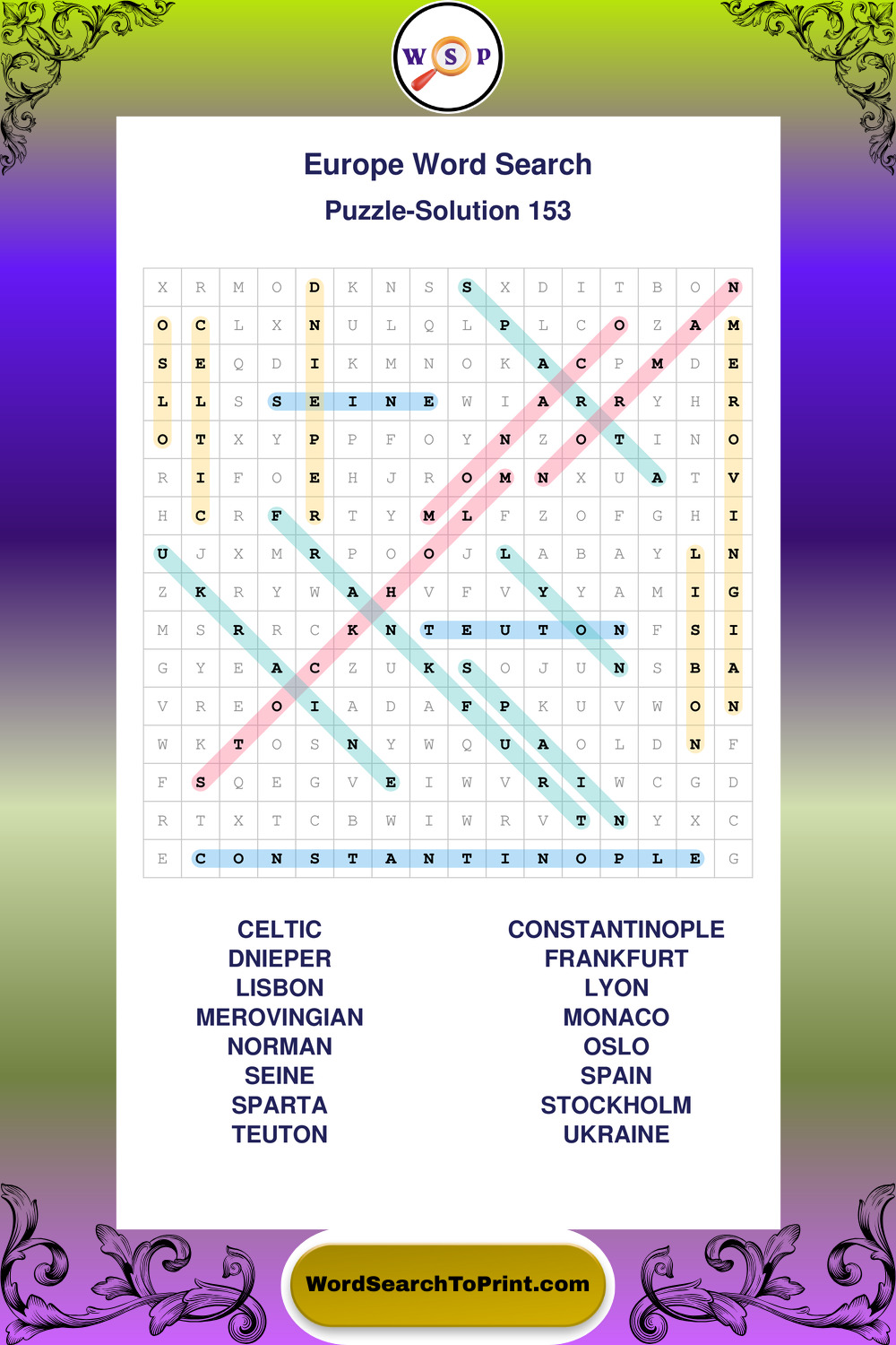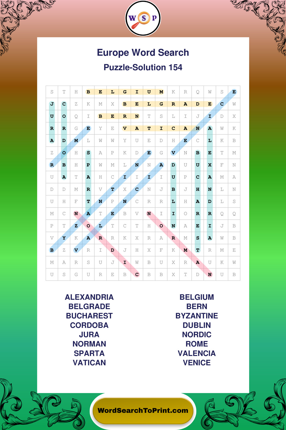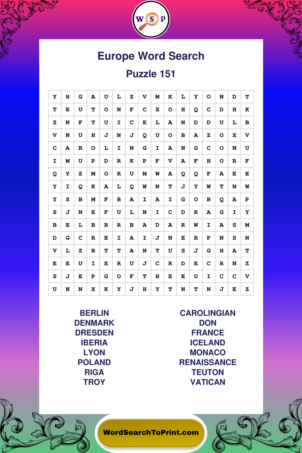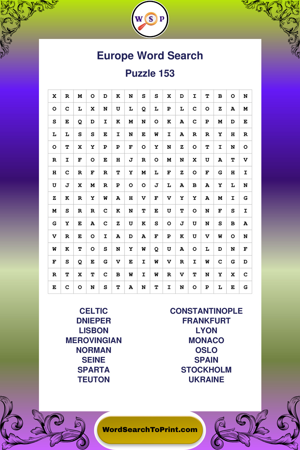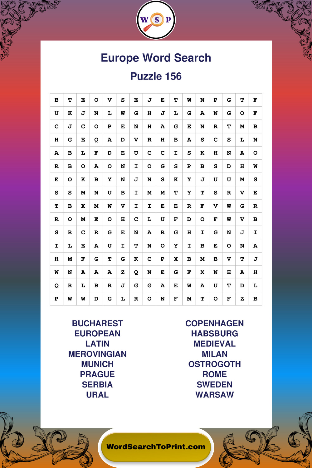 Printable Europe Wordsearch Puzzles