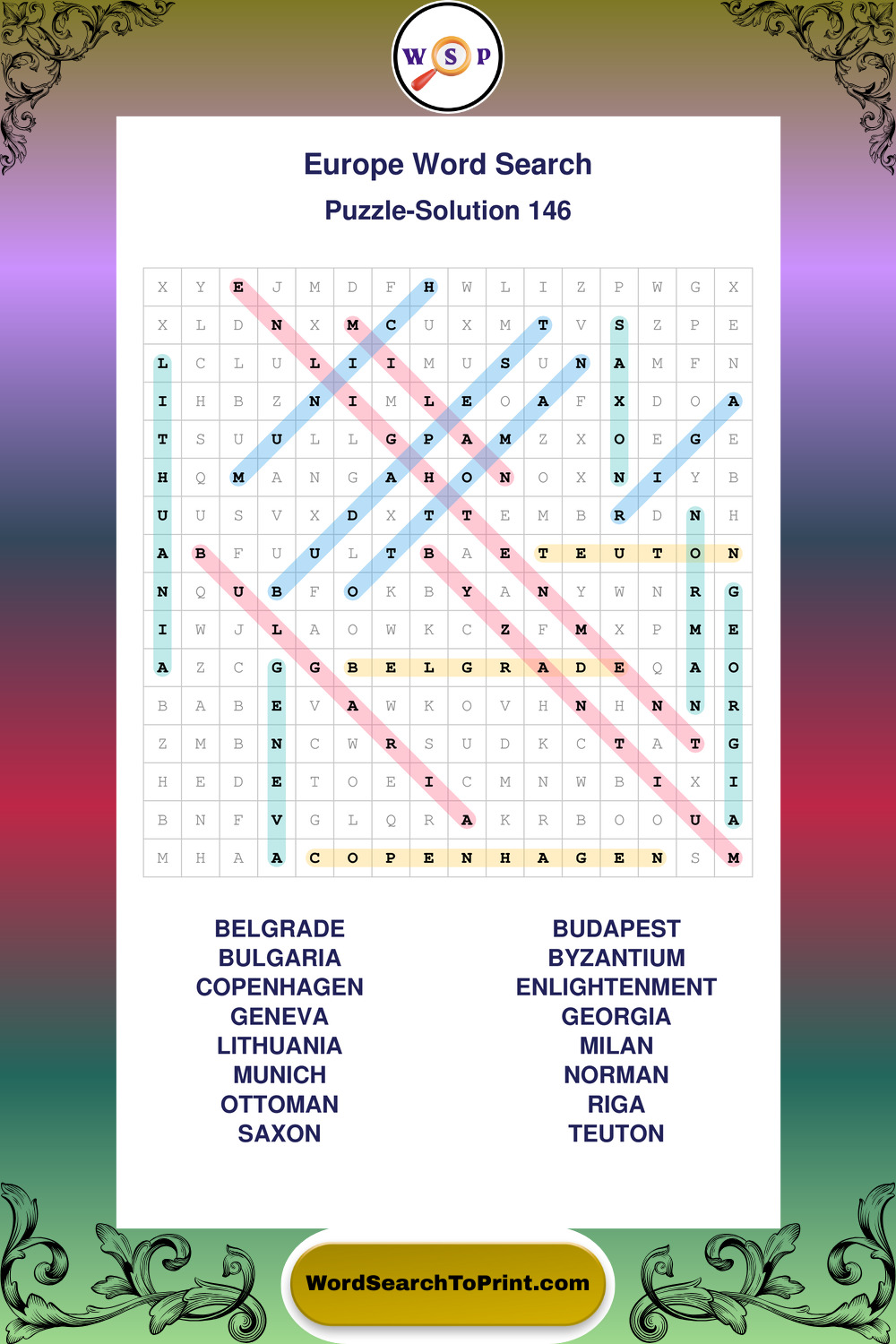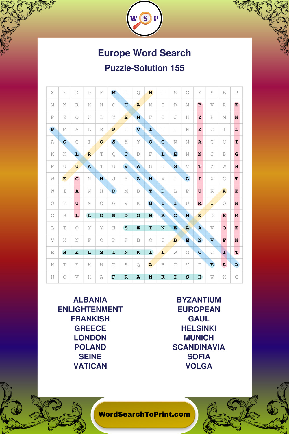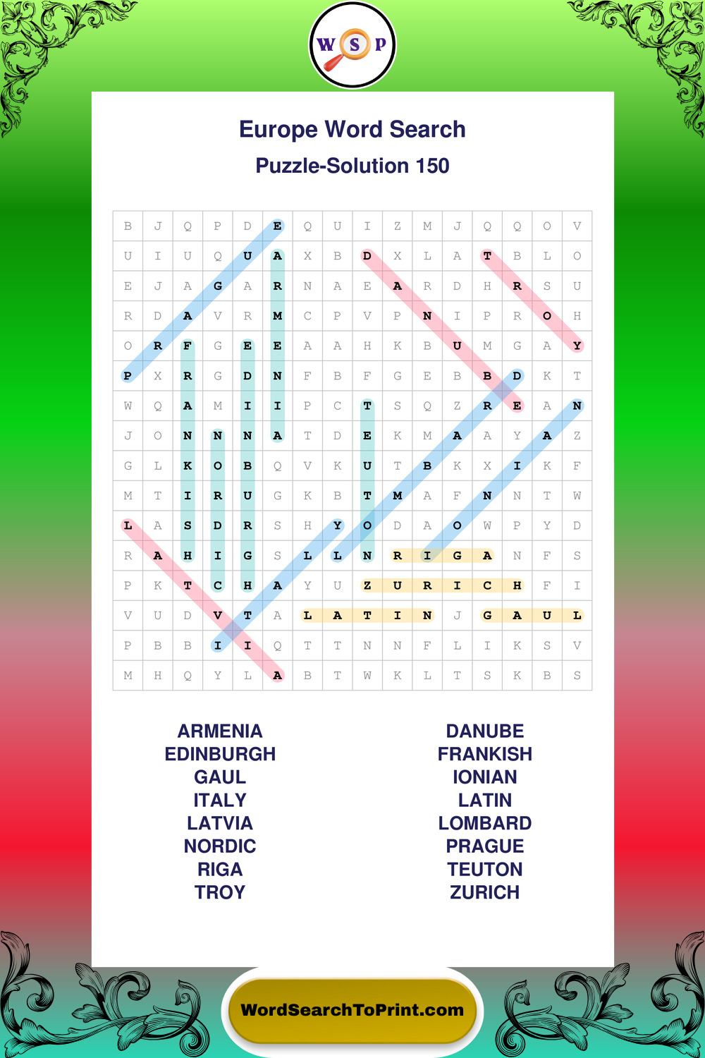 Europe Wordsearches