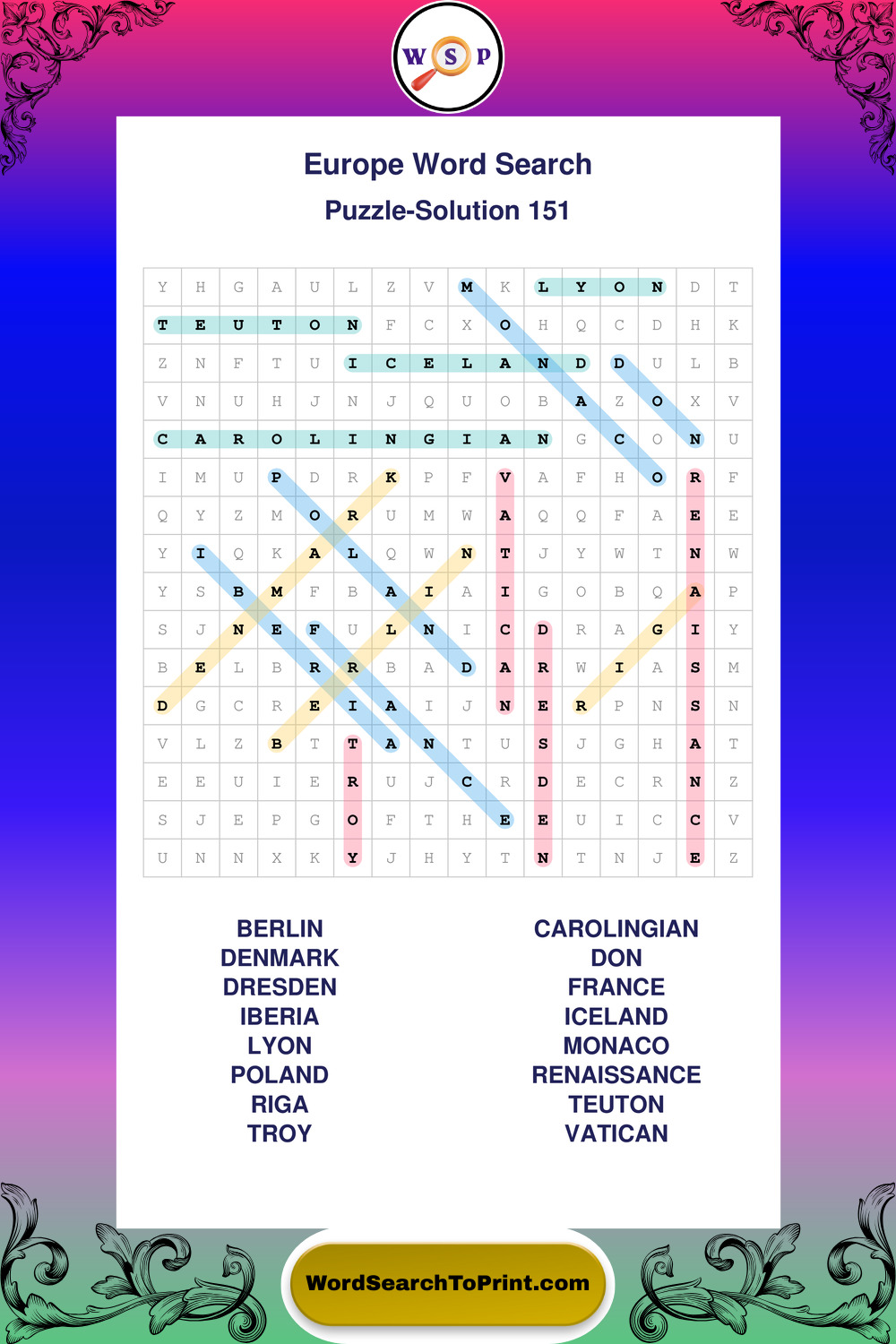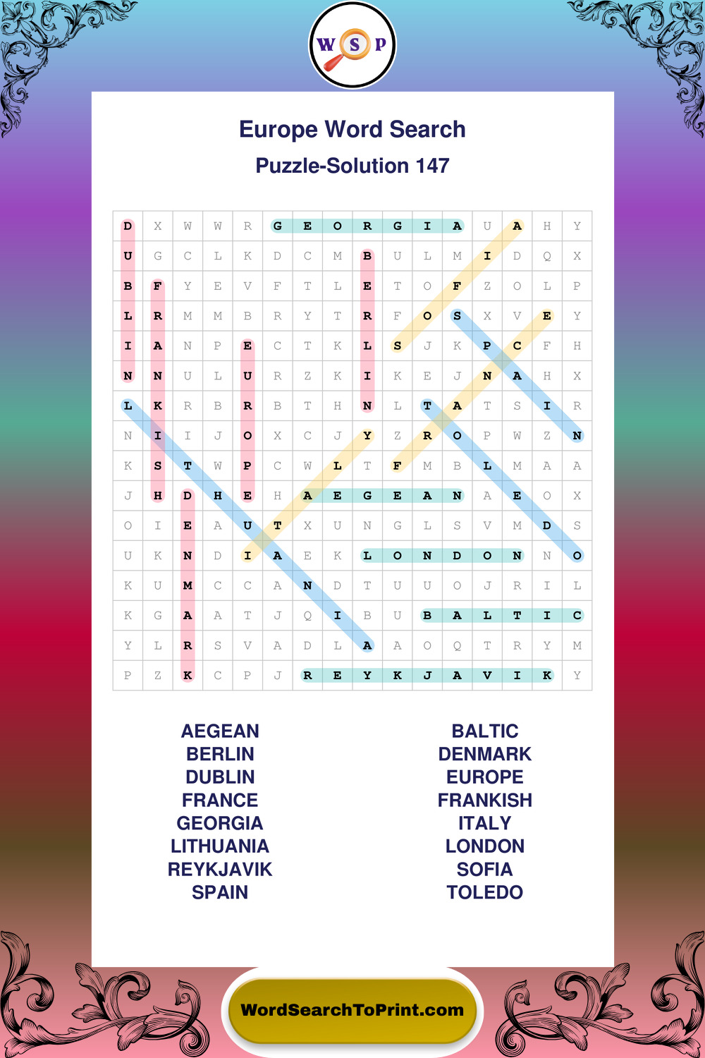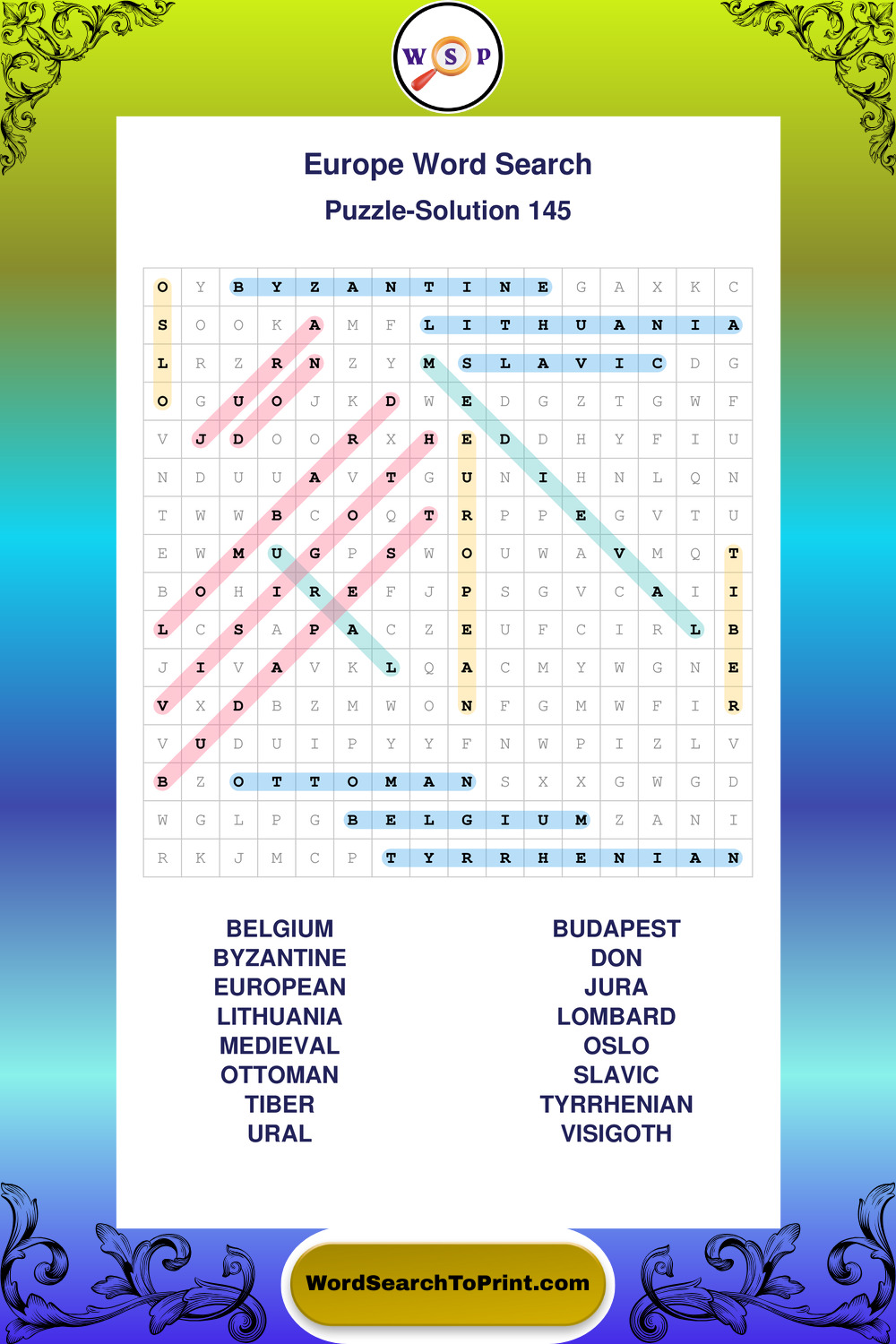 Europe Wordsearches