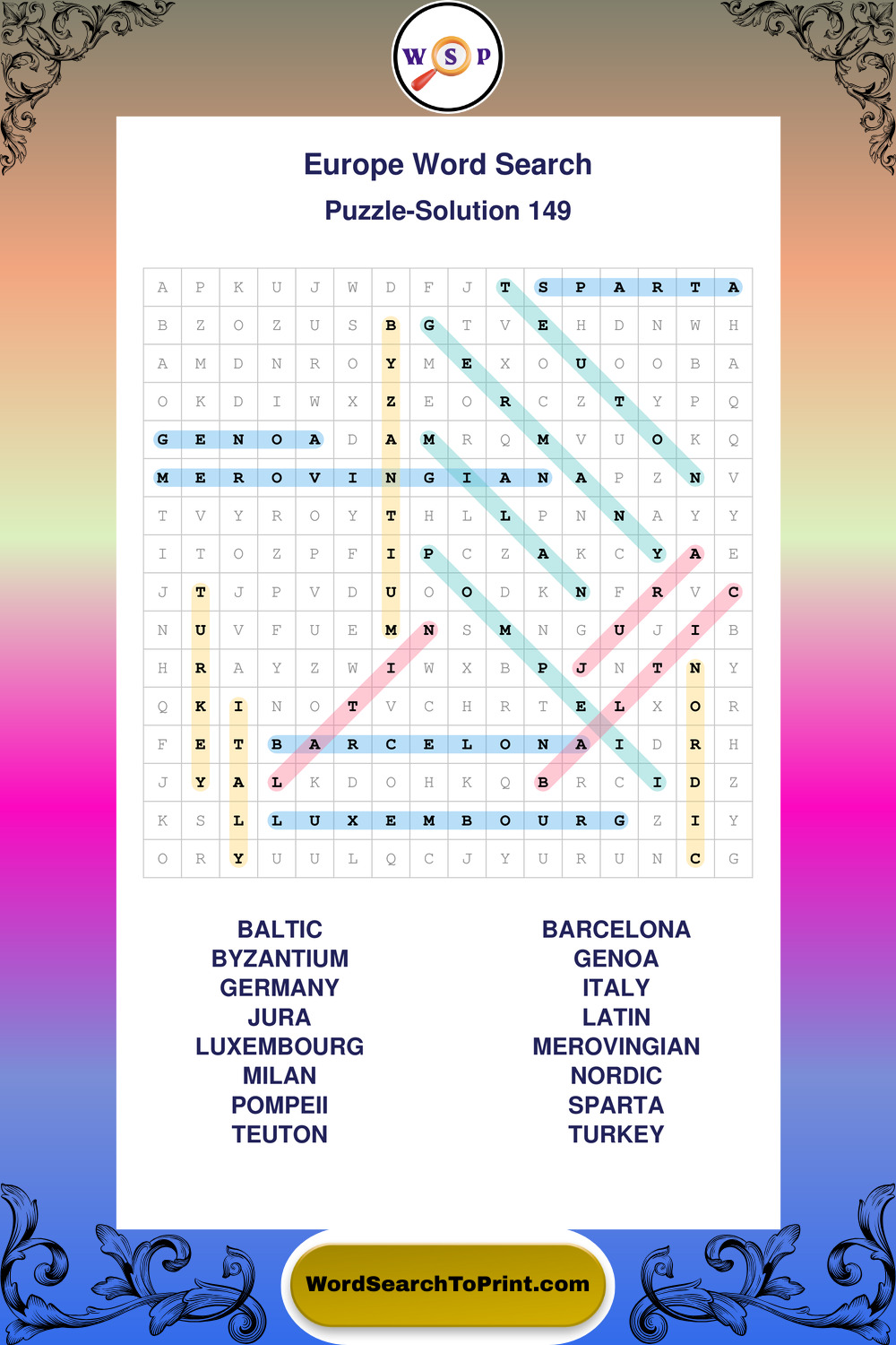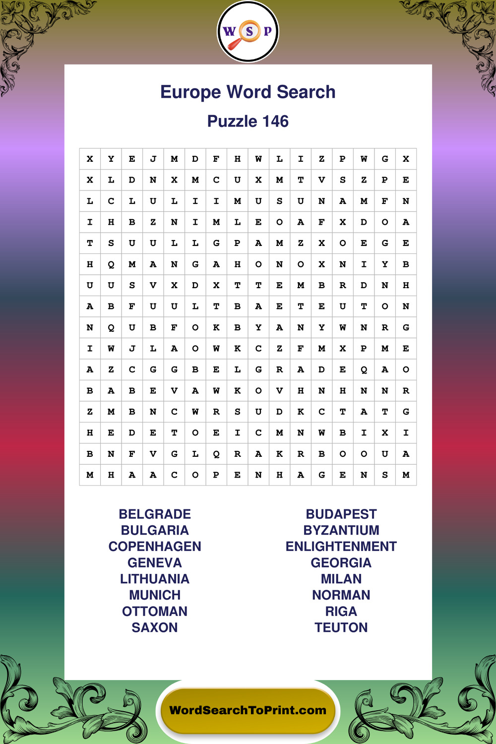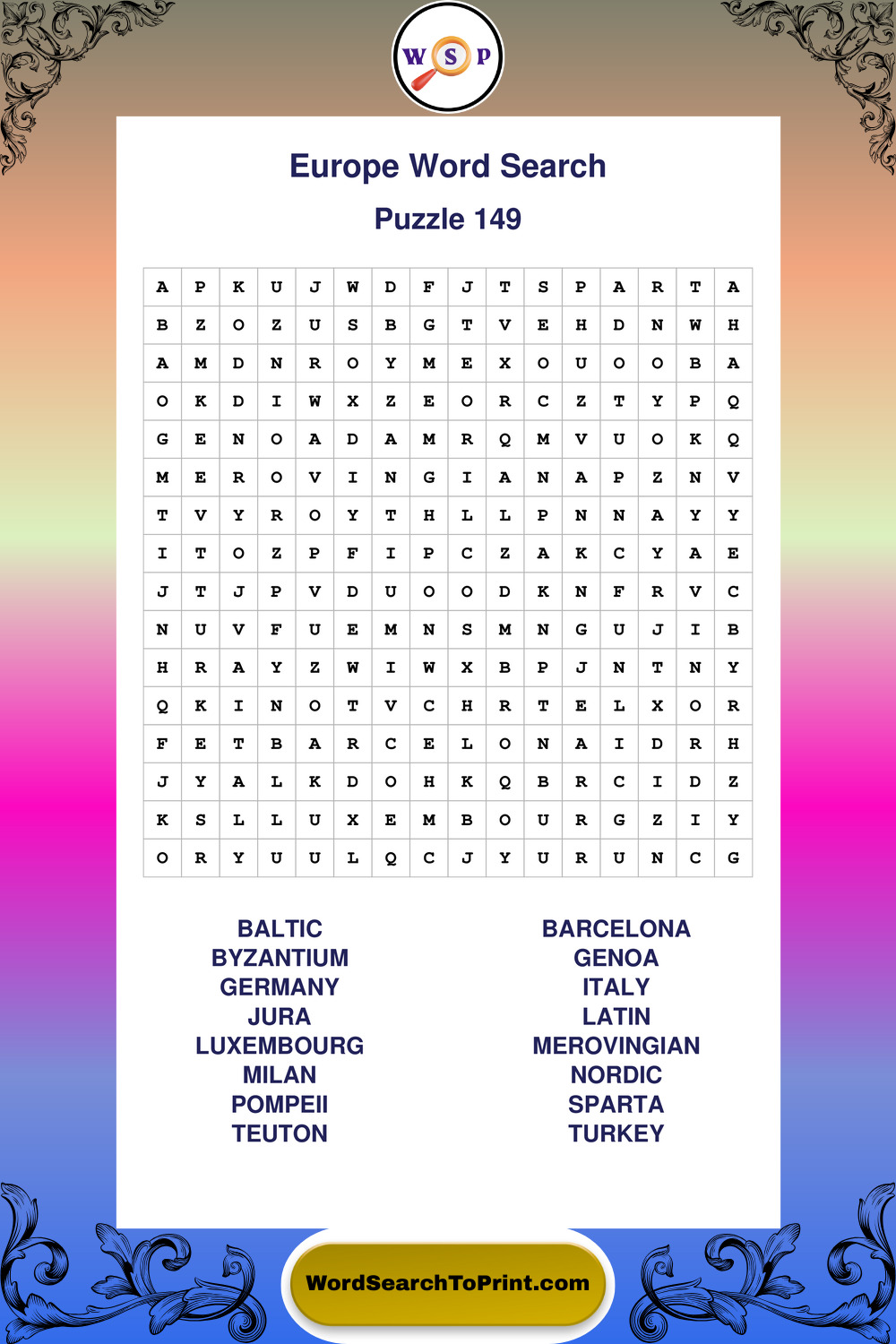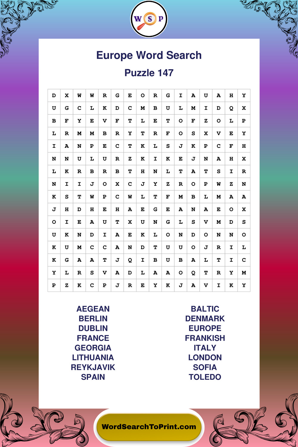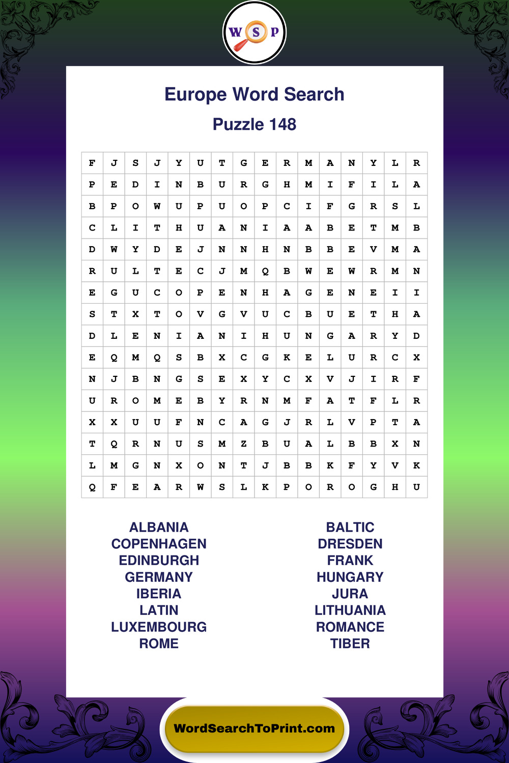 Browse easy-to-read large print Europe wordsearches created for peaceful moments and clear visual comfort.