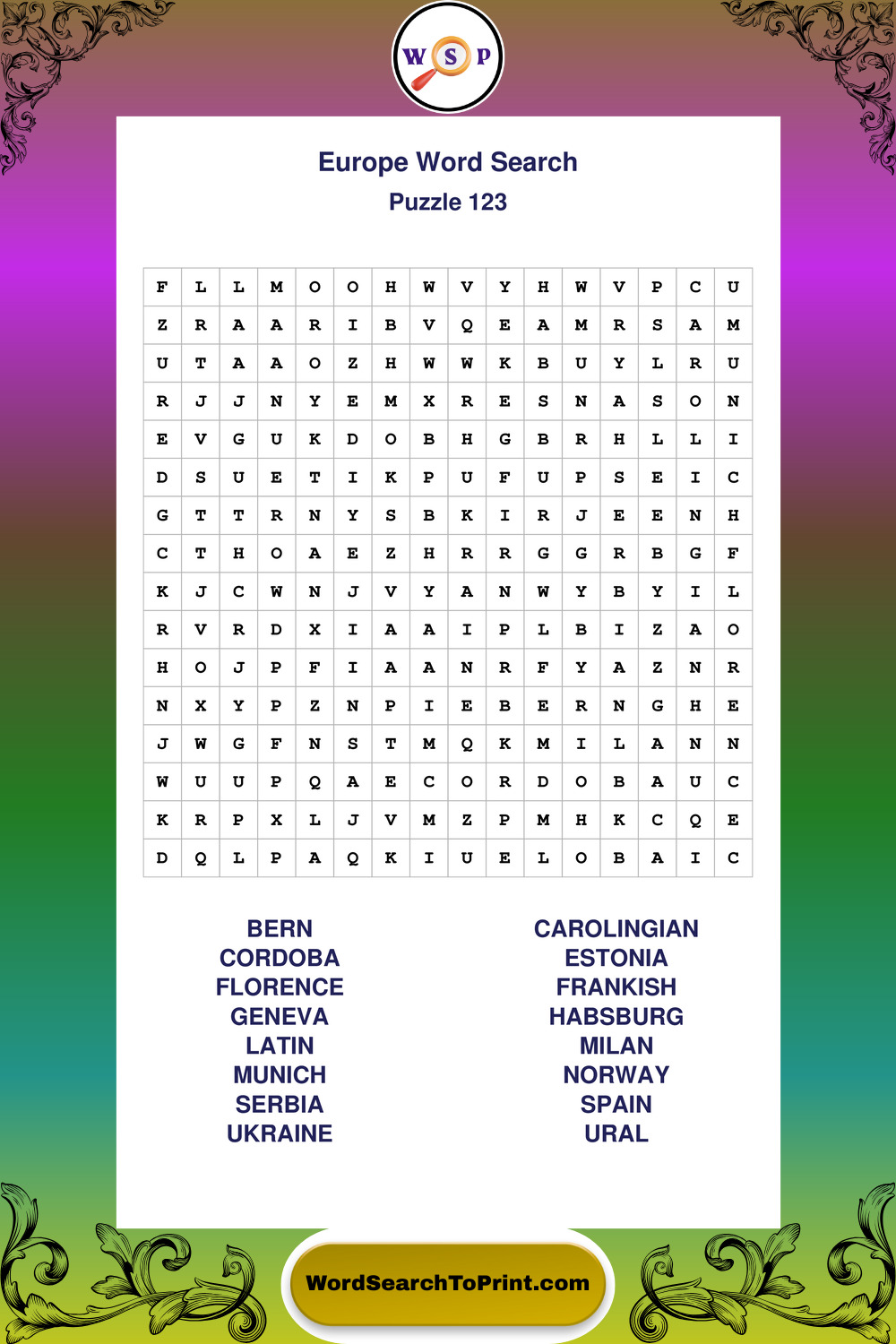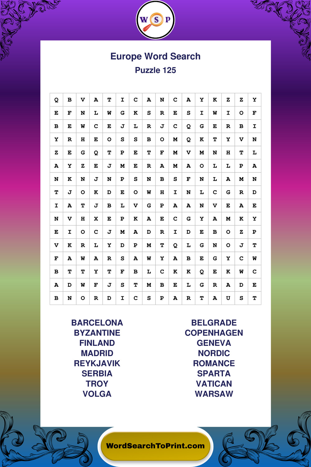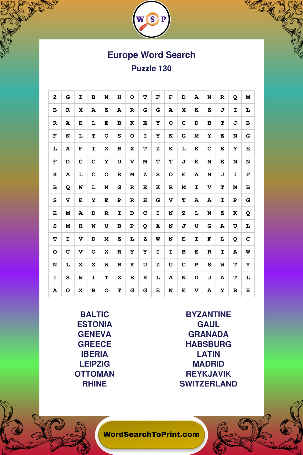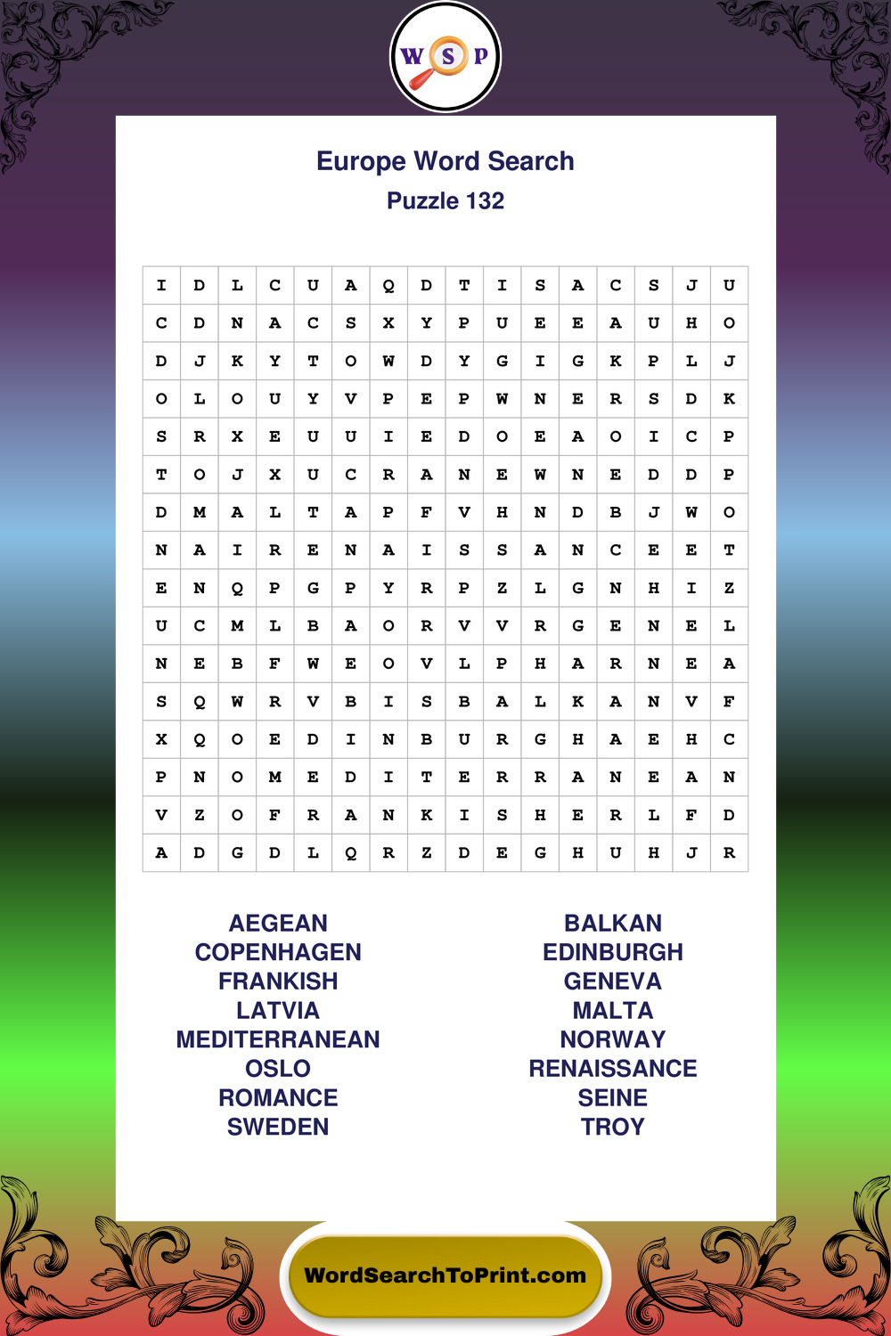 Browse easy-to-read large print Europe wordsearches created for peaceful moments and clear visual comfort.