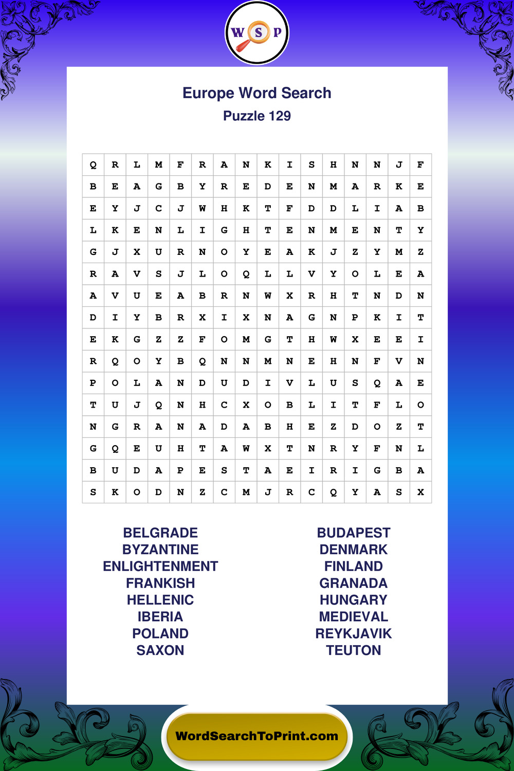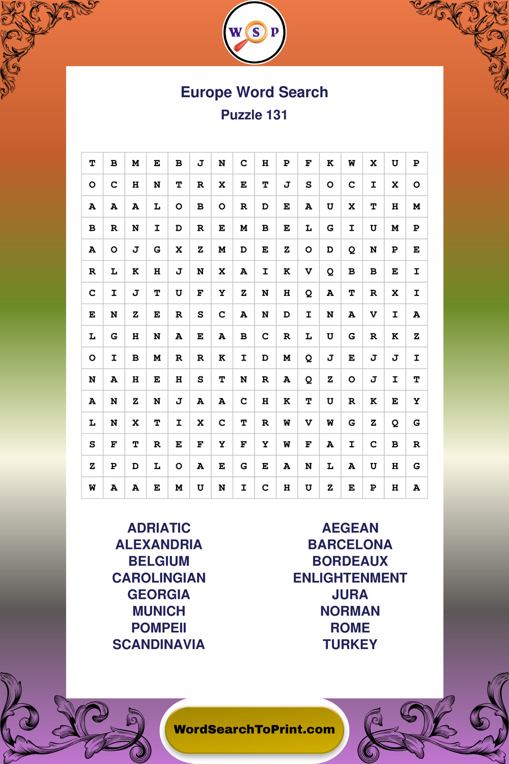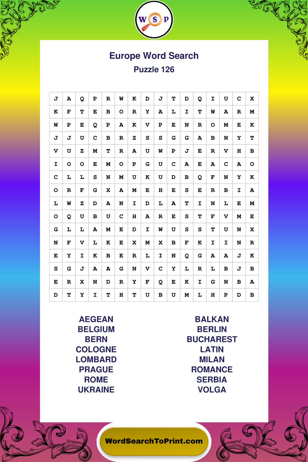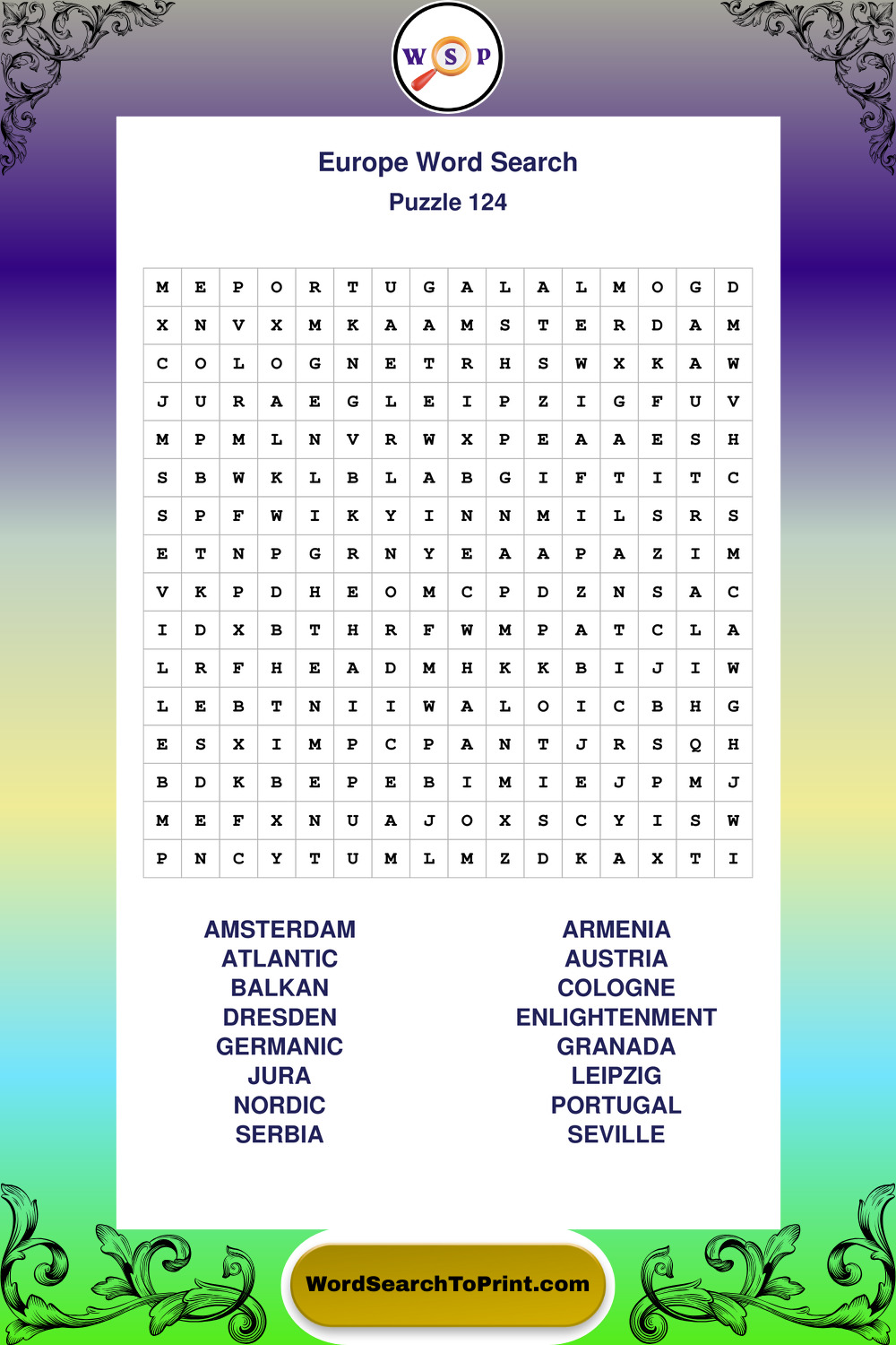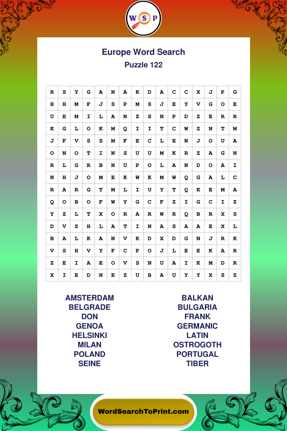 Browse easy-to-read large print Europe wordsearches created for peaceful moments and clear visual comfort.