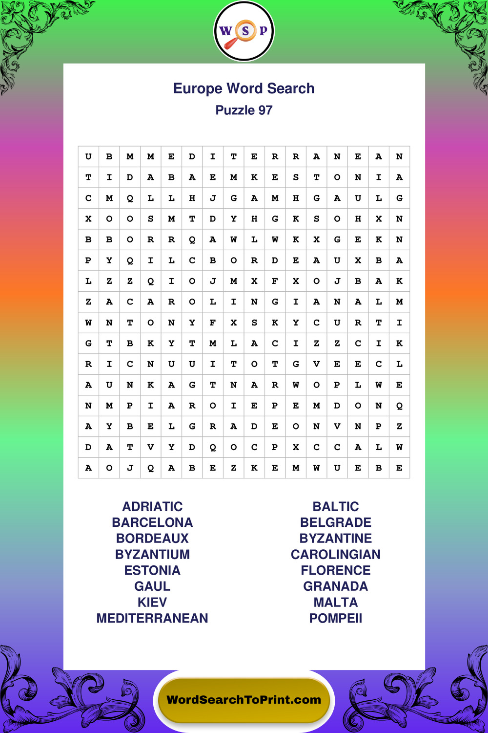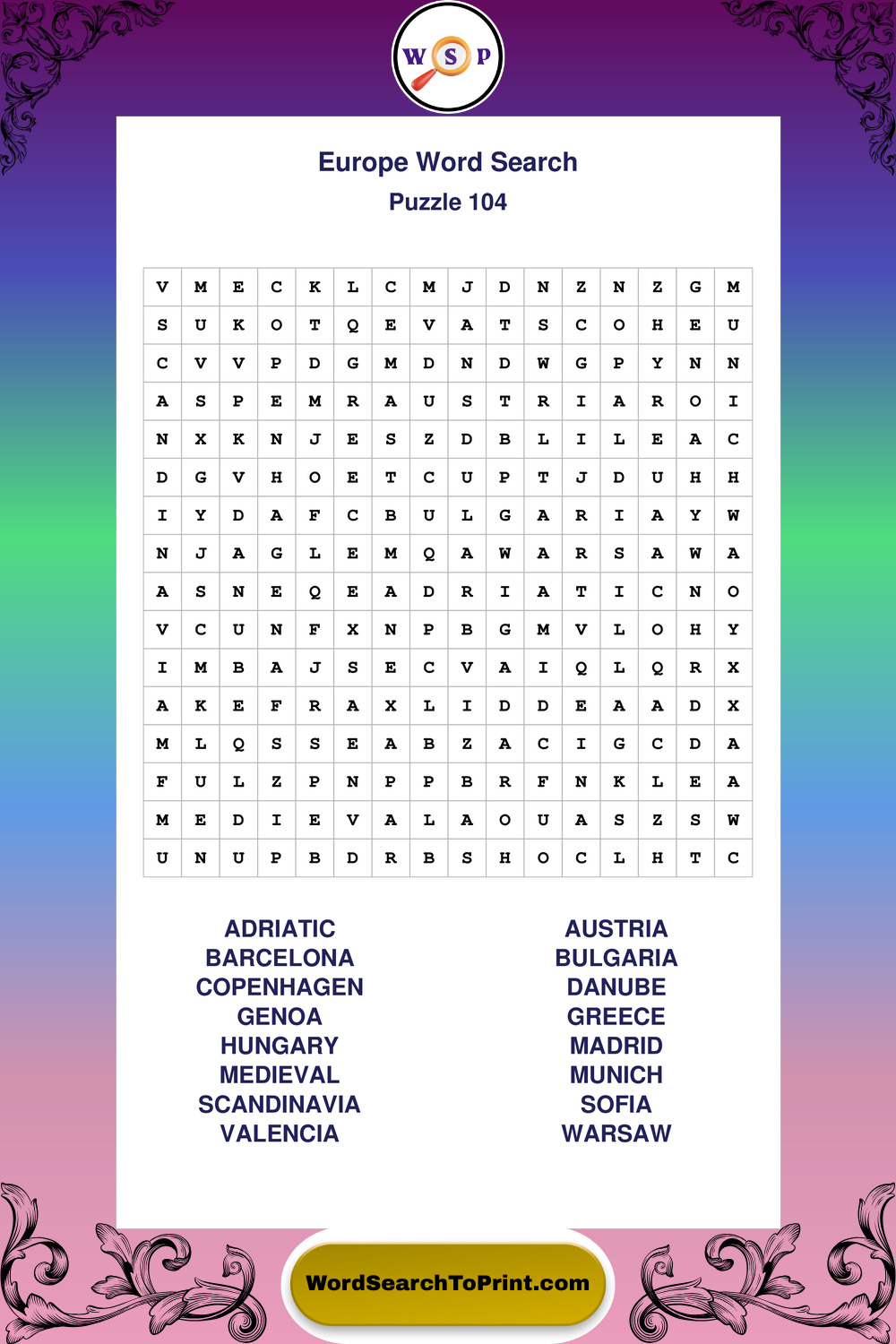 Browse easy-to-read large print Europe wordsearches created for peaceful moments and clear visual comfort.