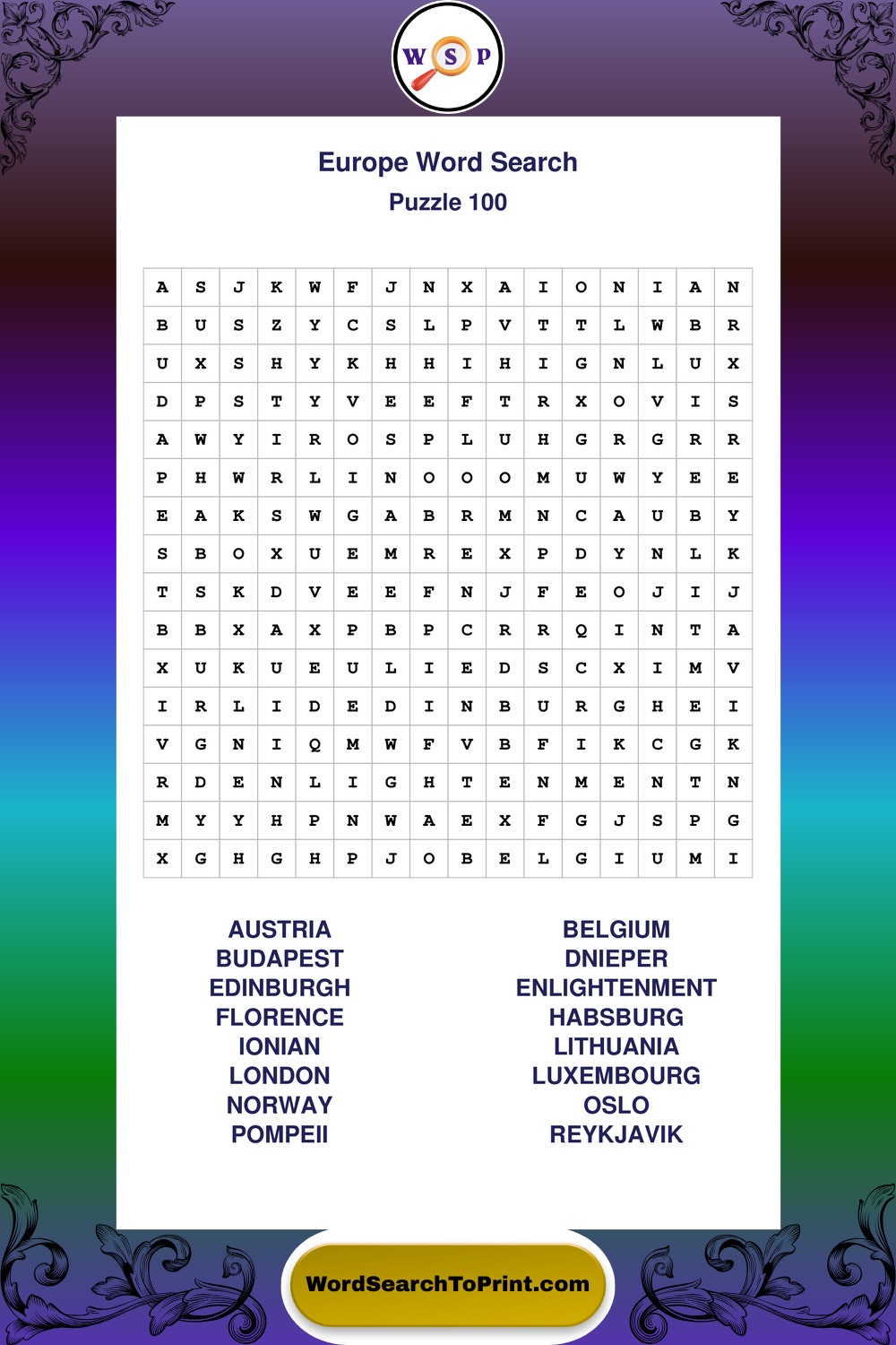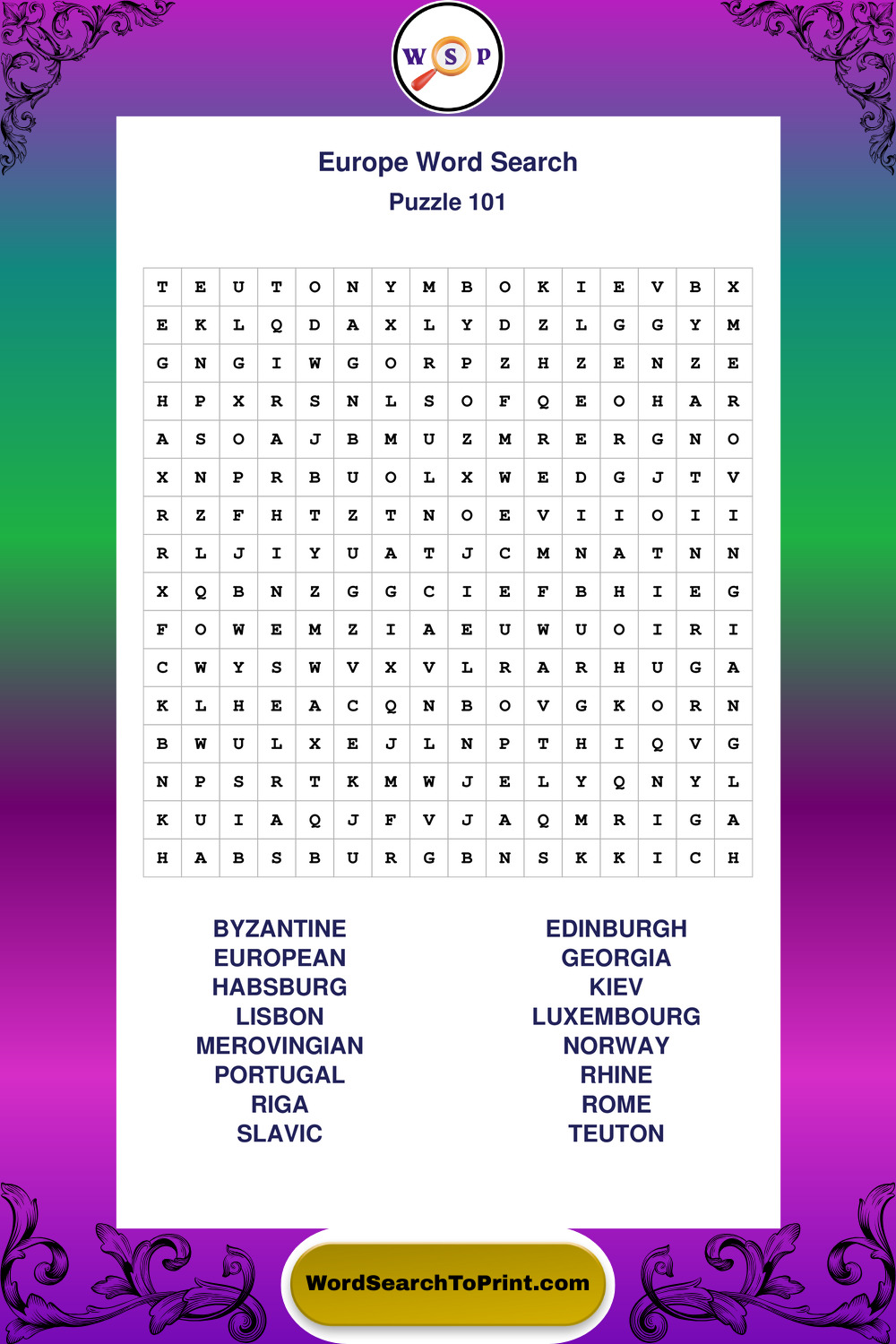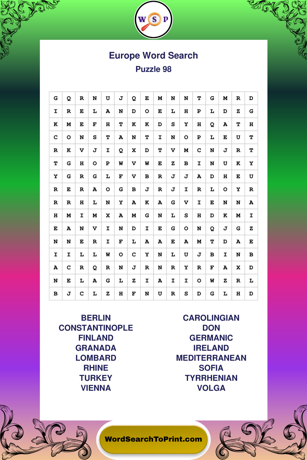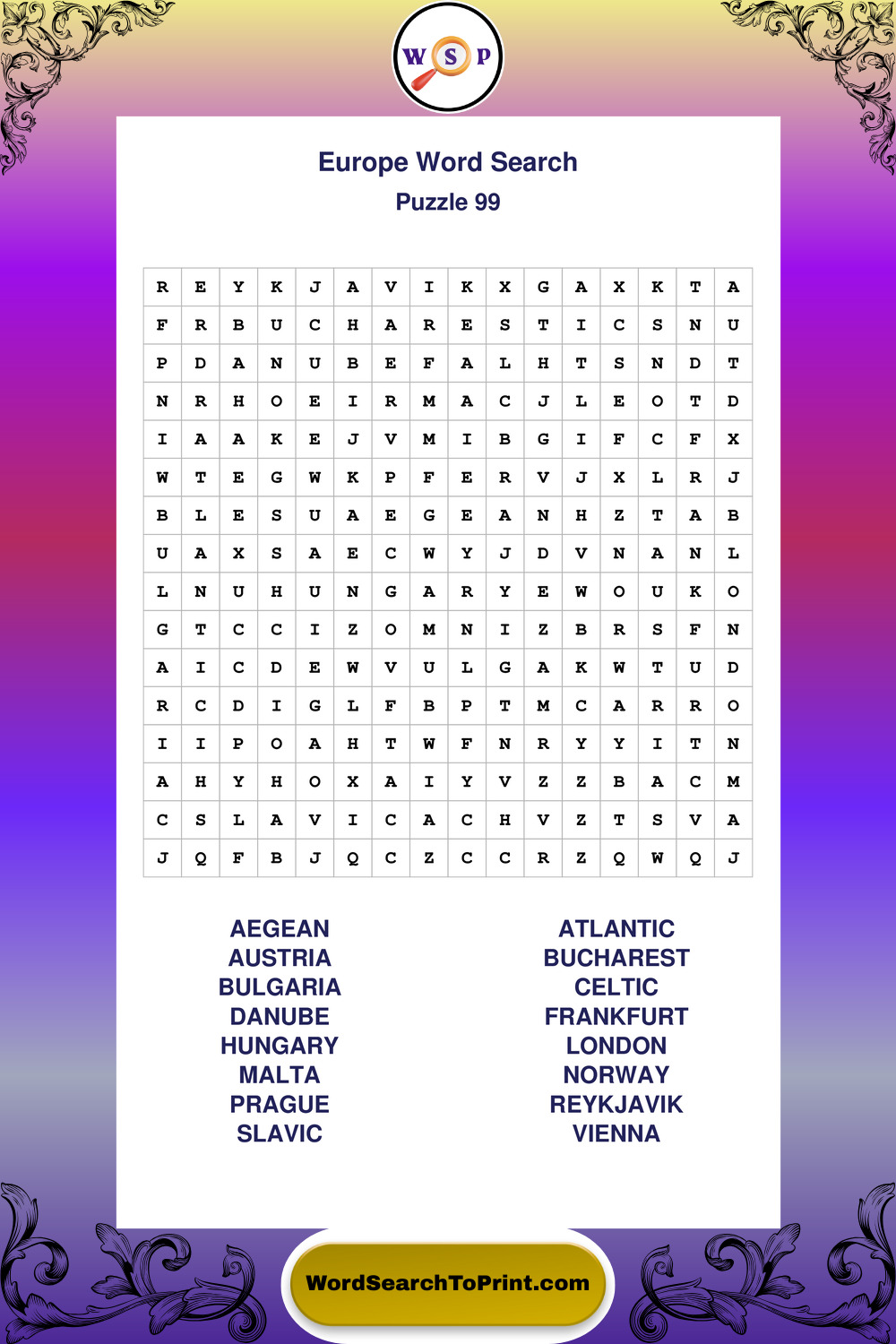 Printable Europe Wordsearch Puzzles