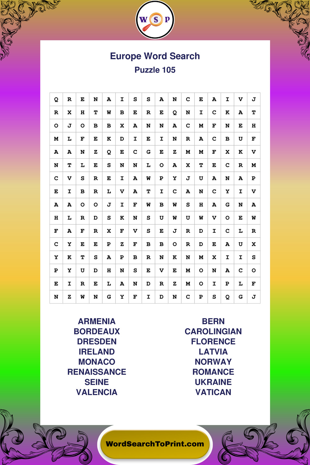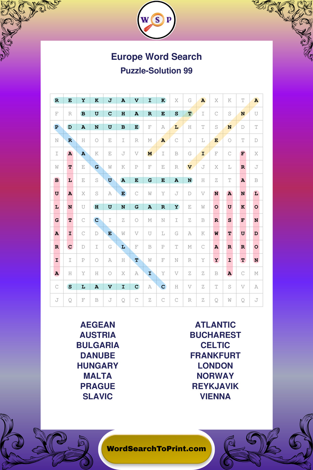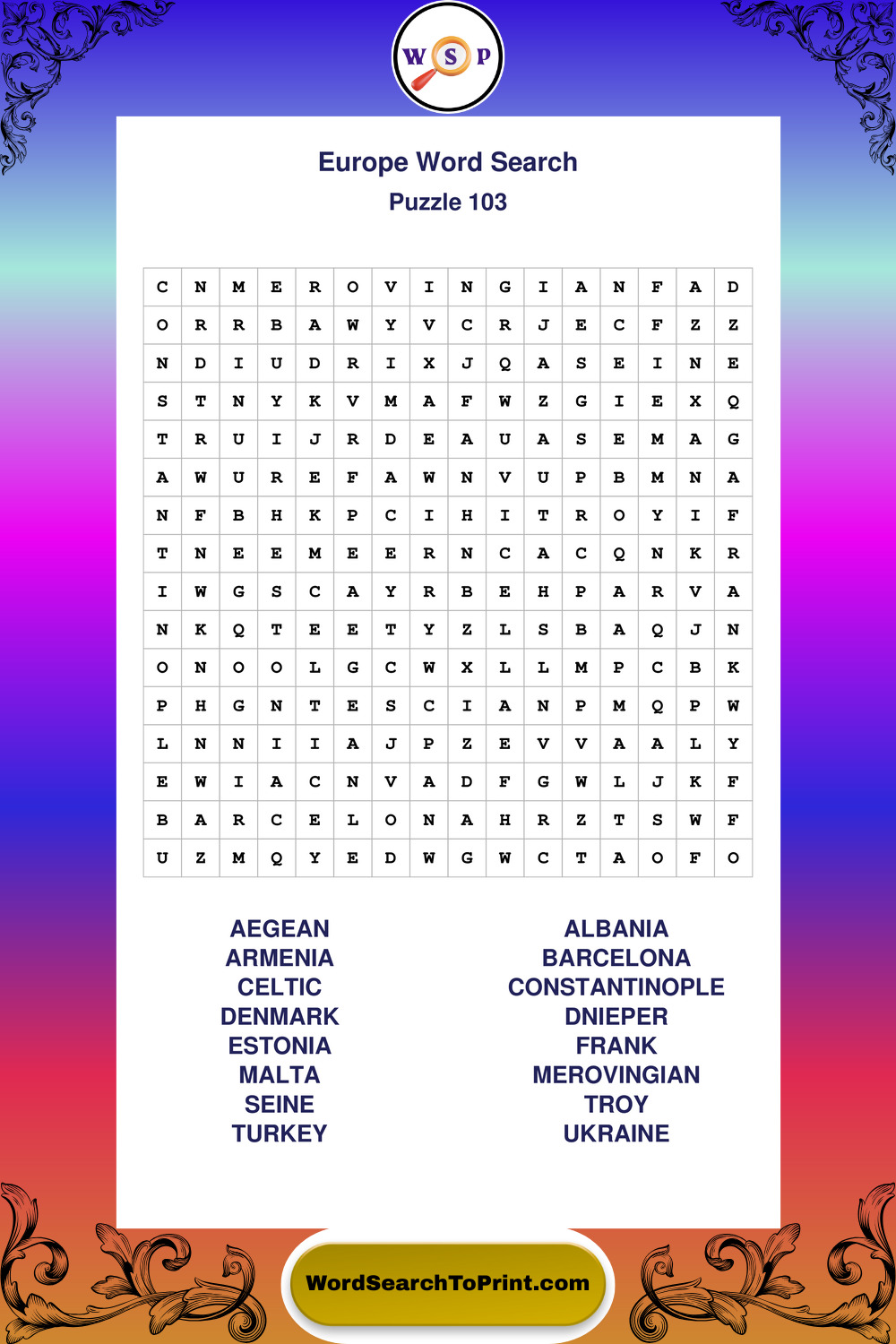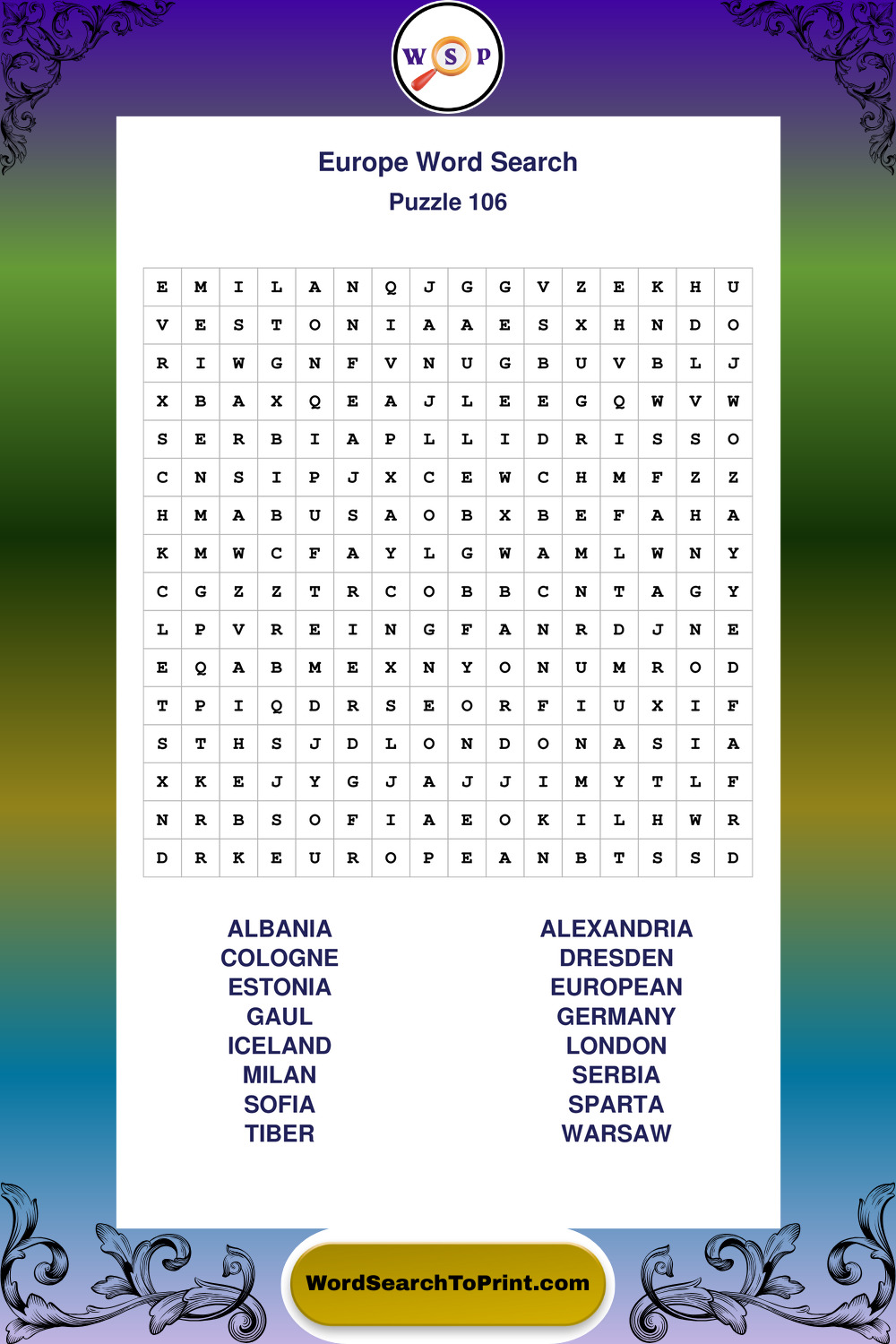 Printable Europe Wordsearch Puzzles