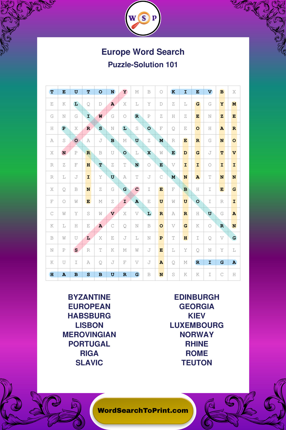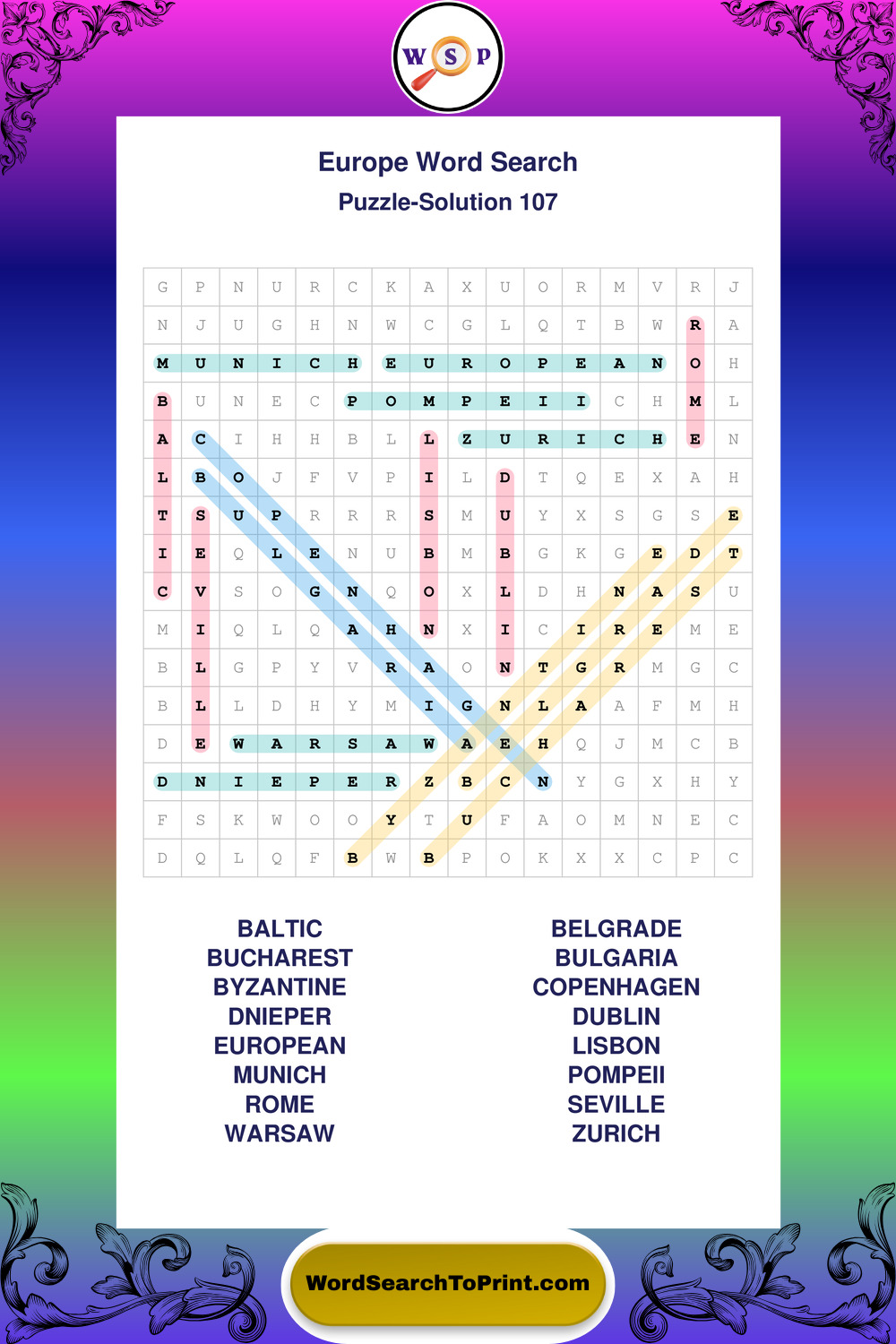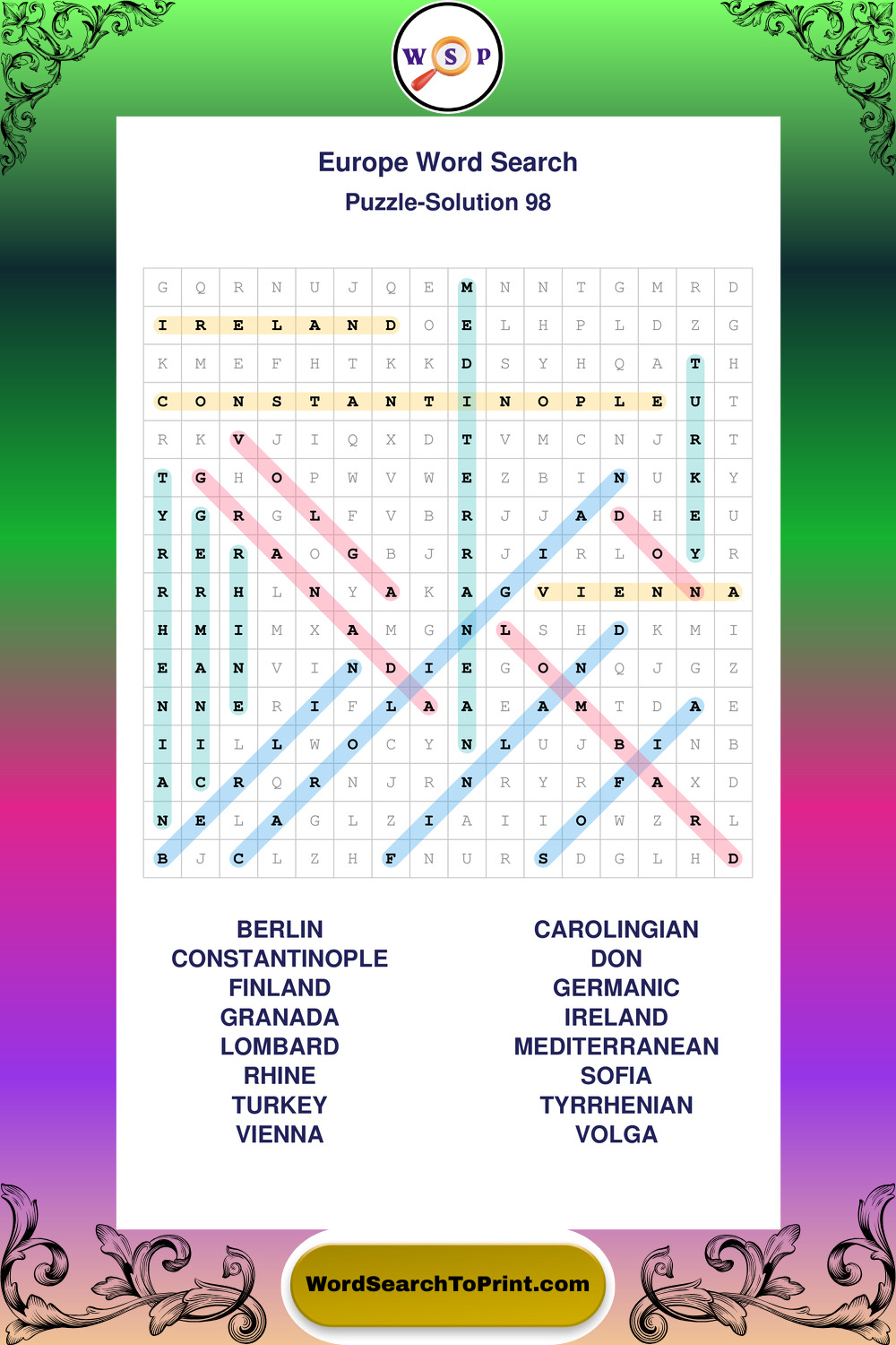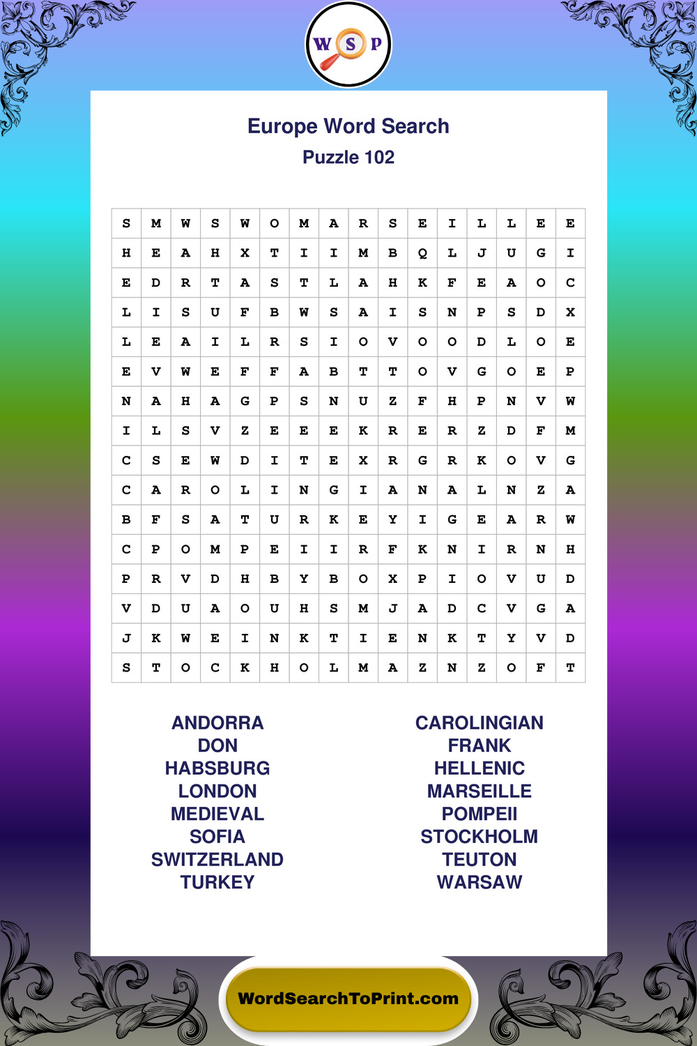 Printable Europe Wordsearch Puzzles