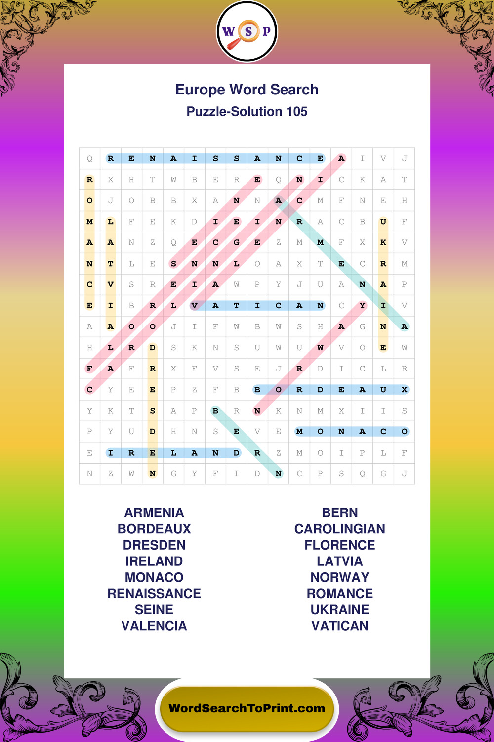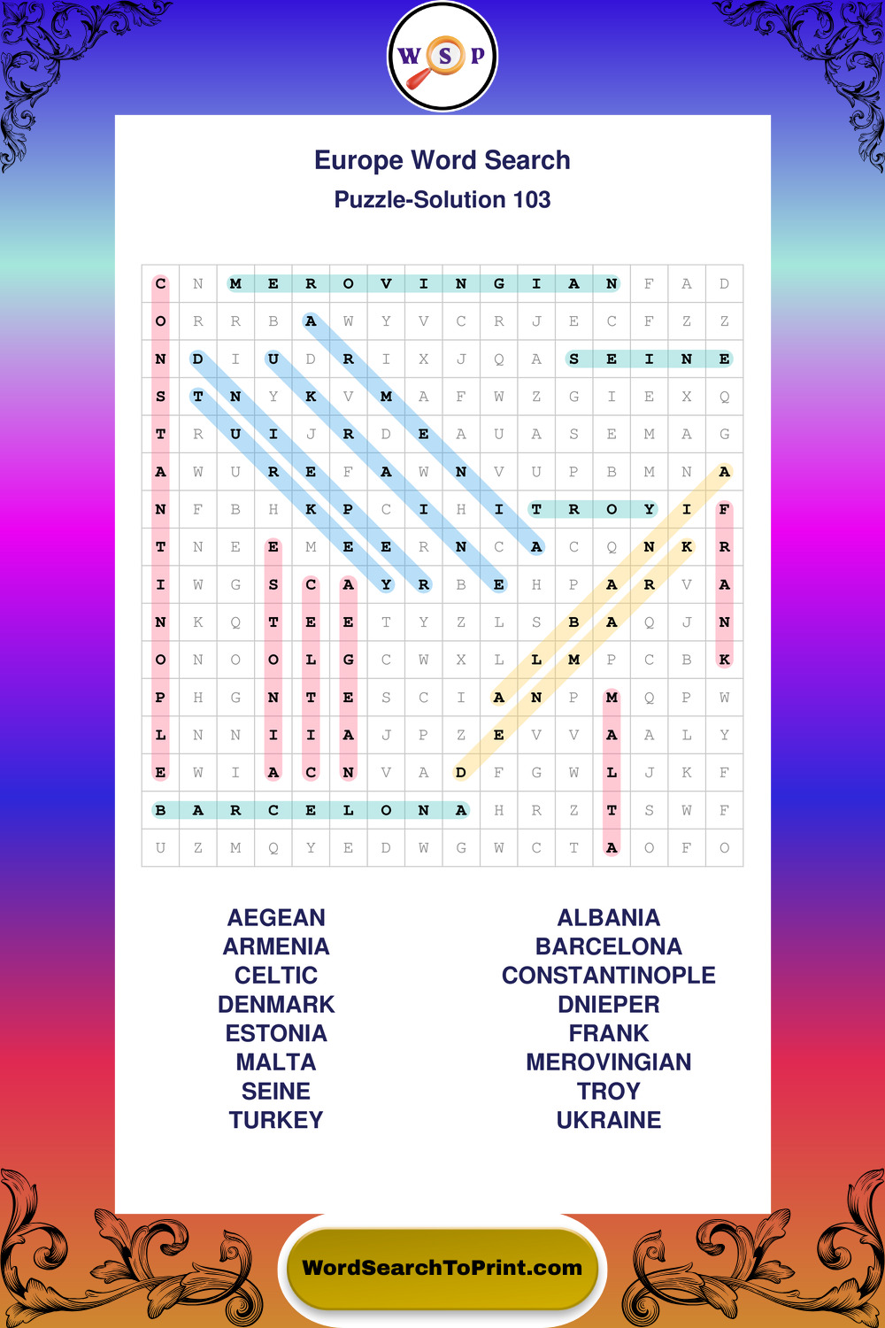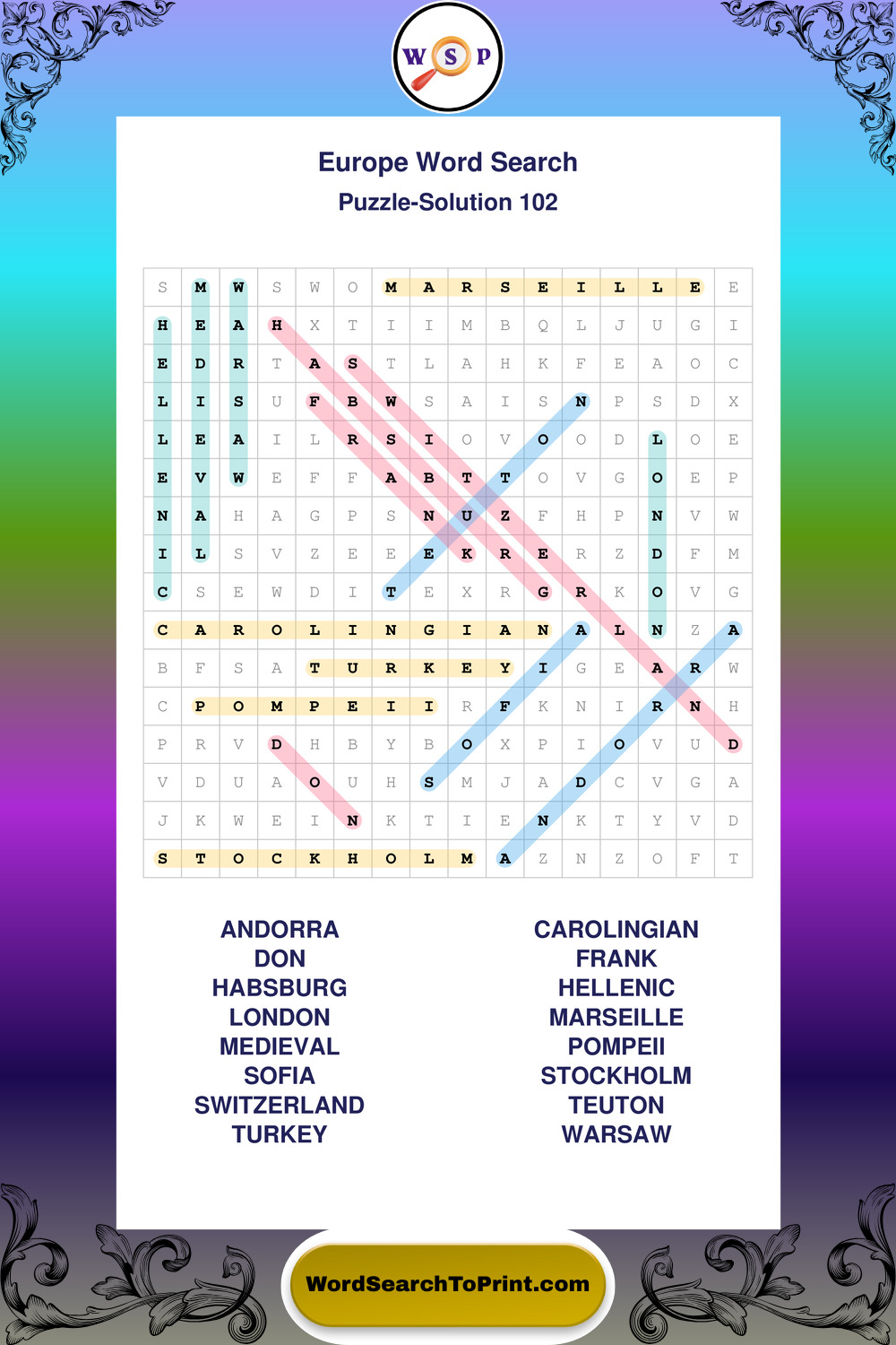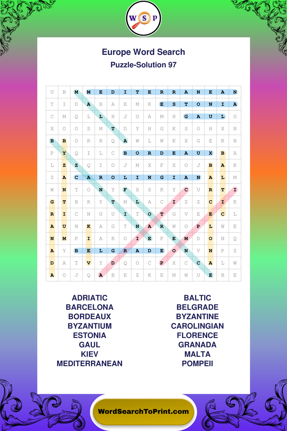 Printable Europe Wordsearch Puzzles