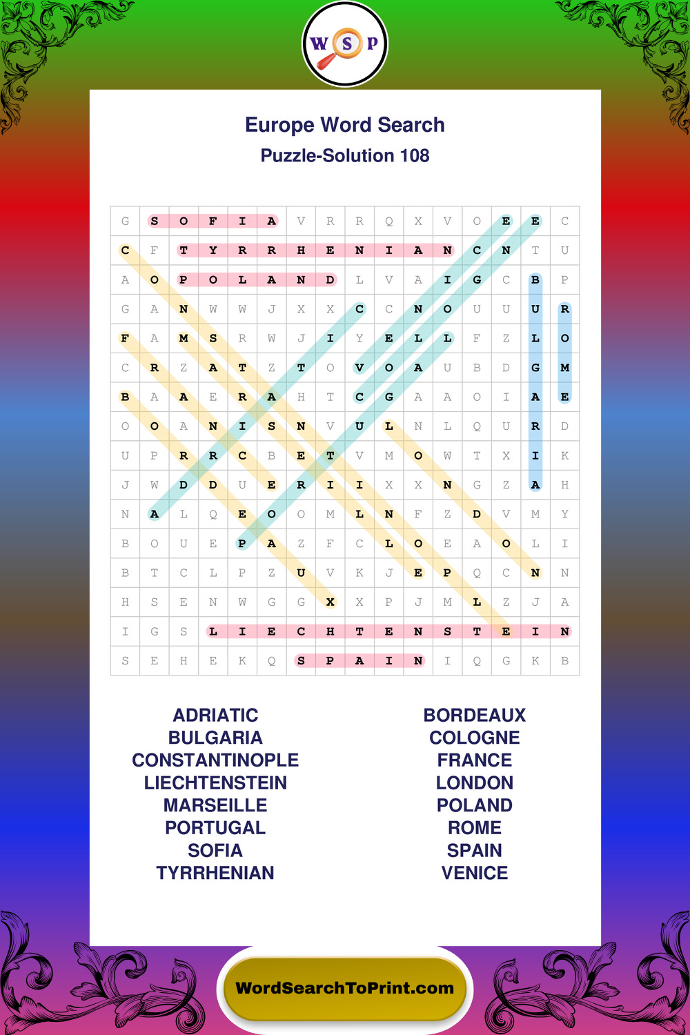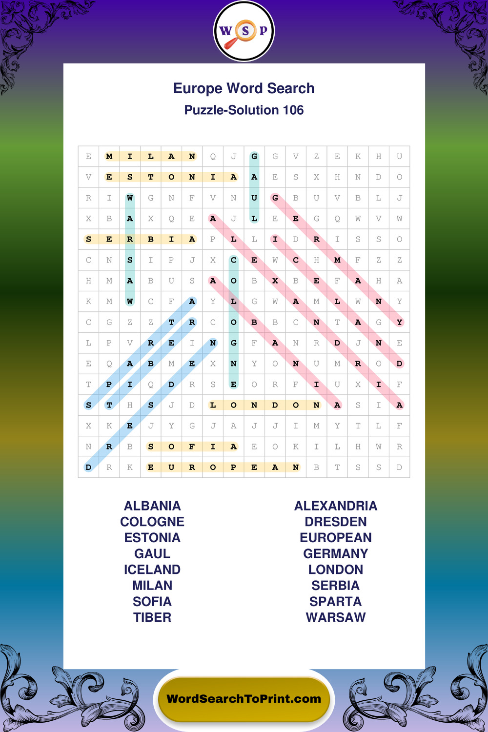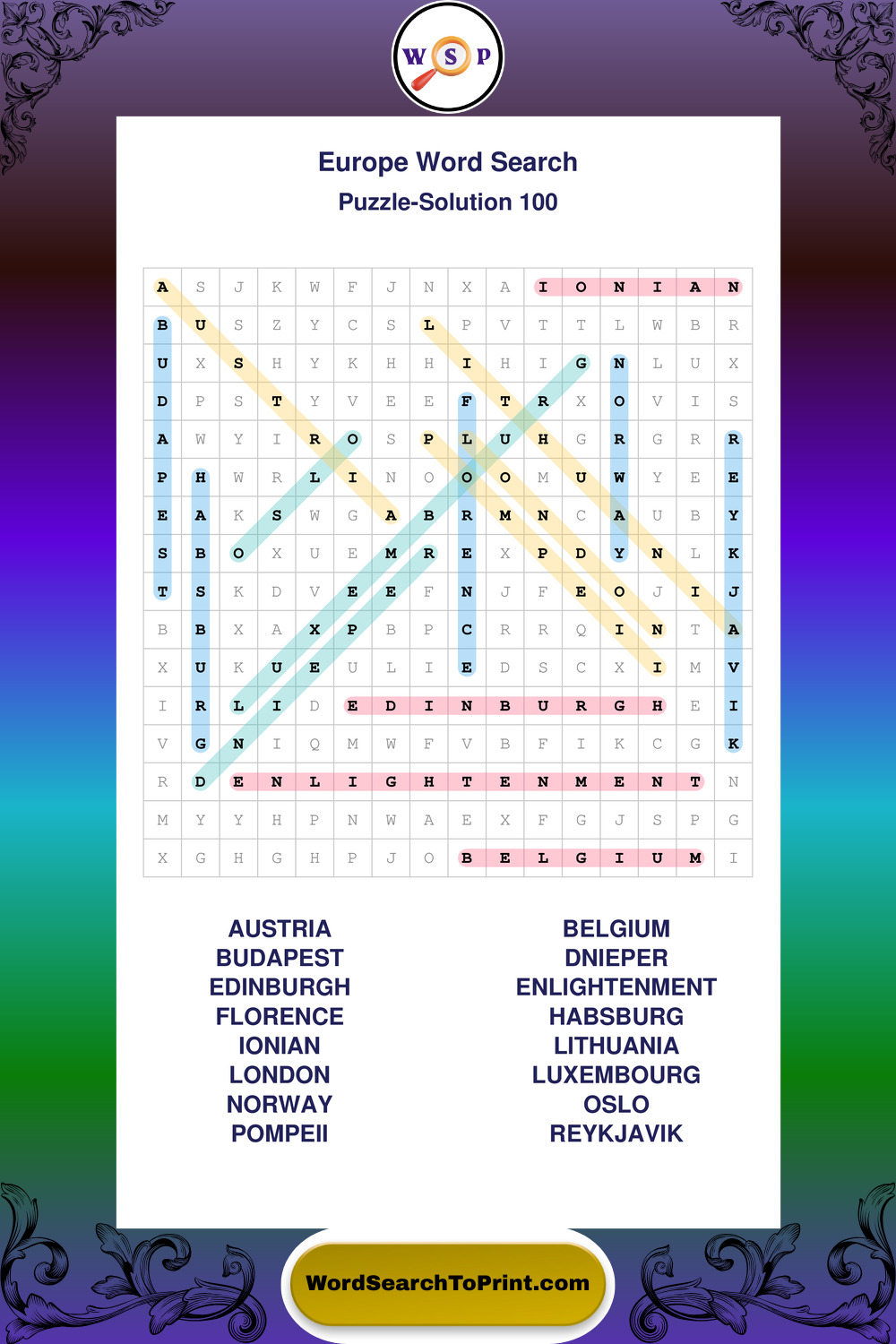 Europe Wordsearches