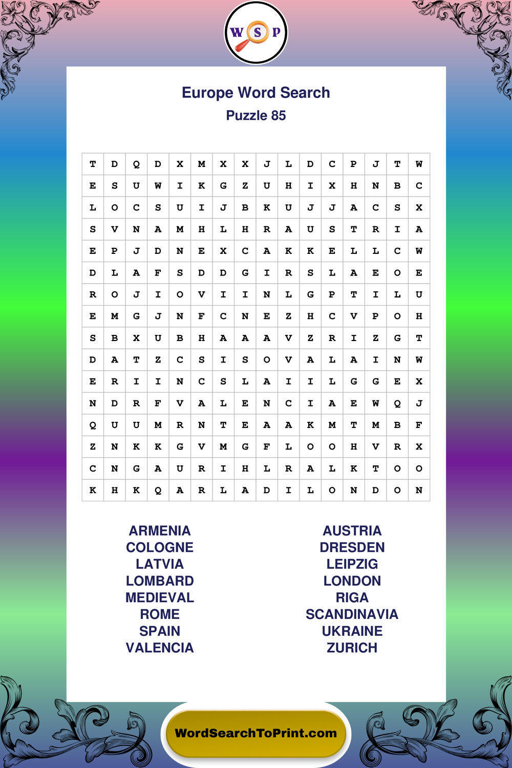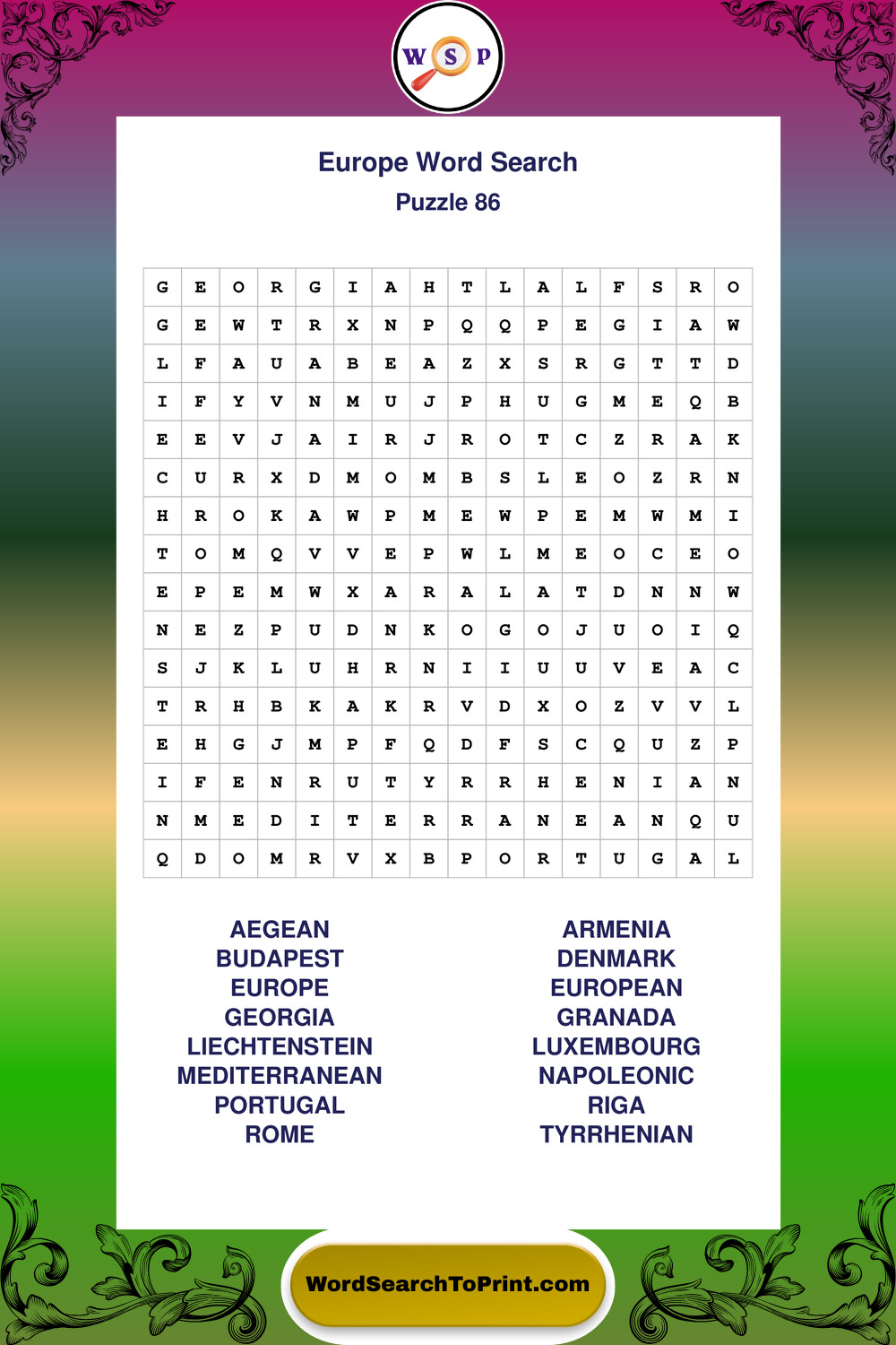 Browse easy-to-read large print Europe wordsearches created for peaceful moments and clear visual comfort.