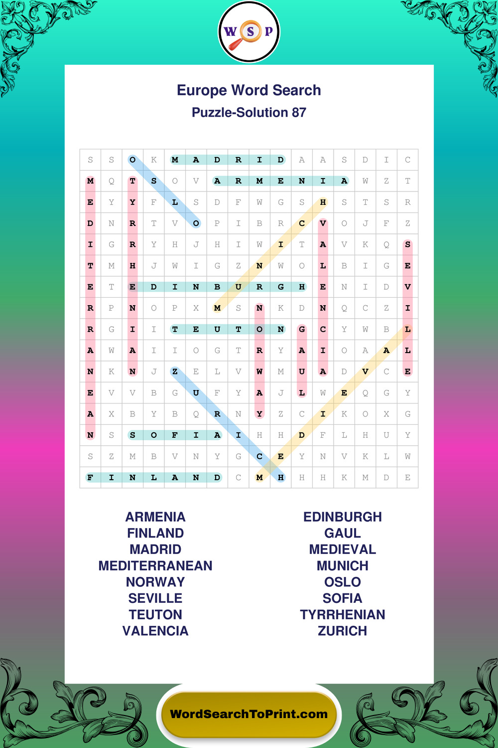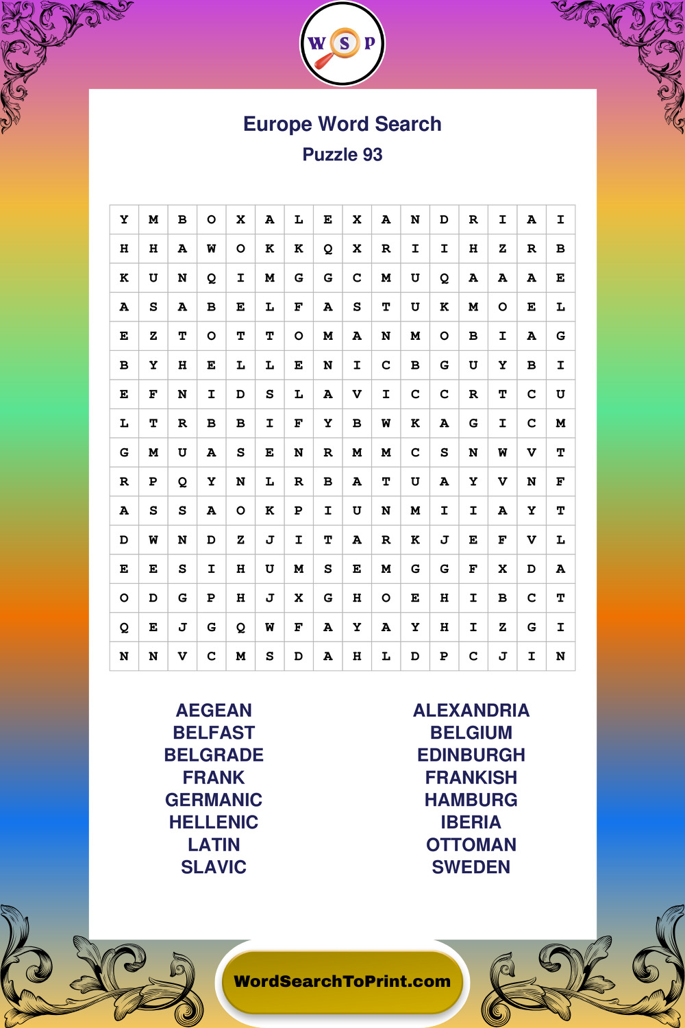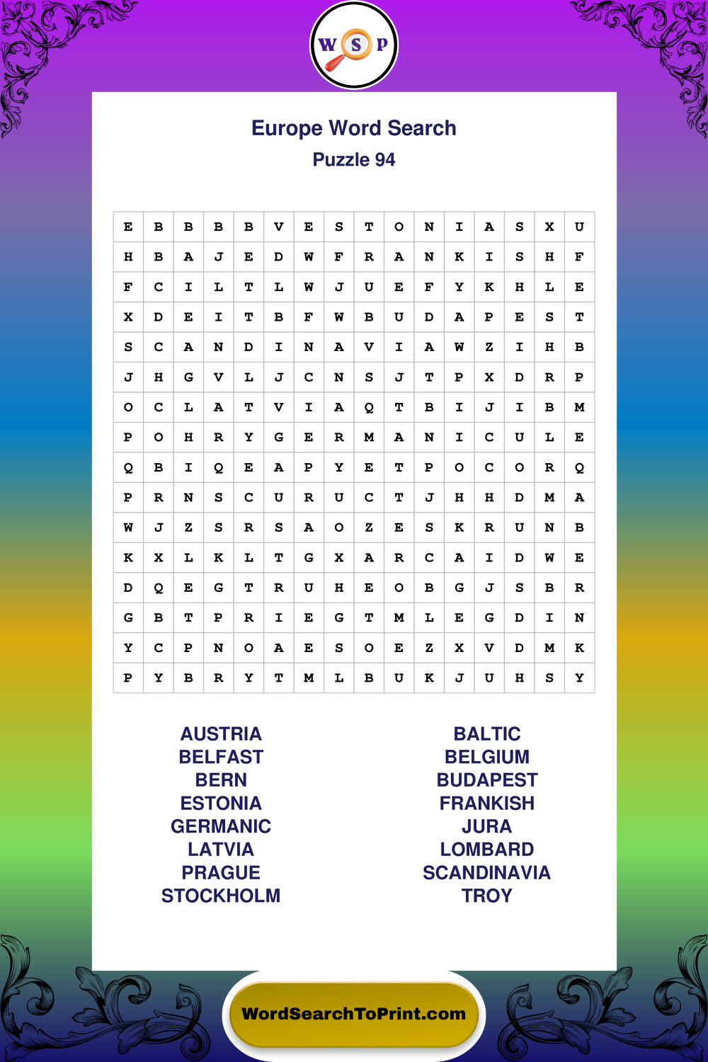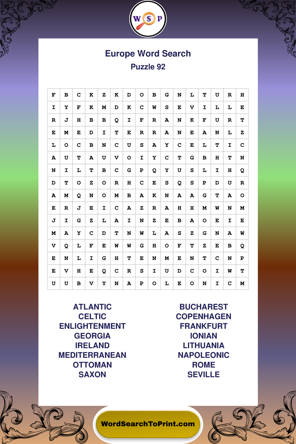 Europe Wordsearches