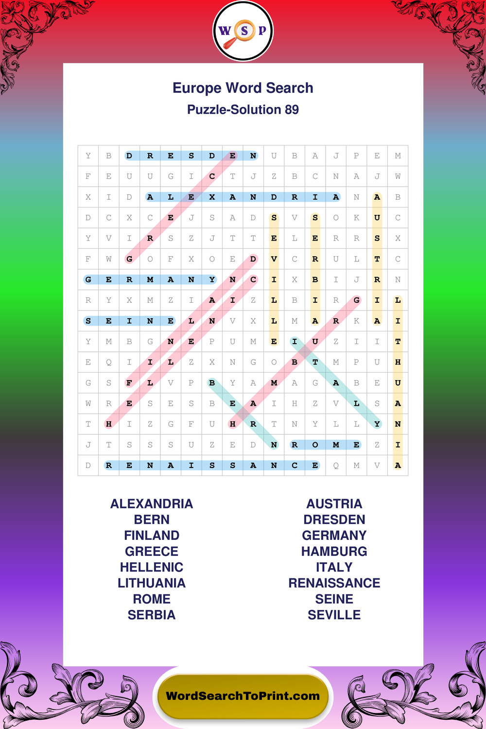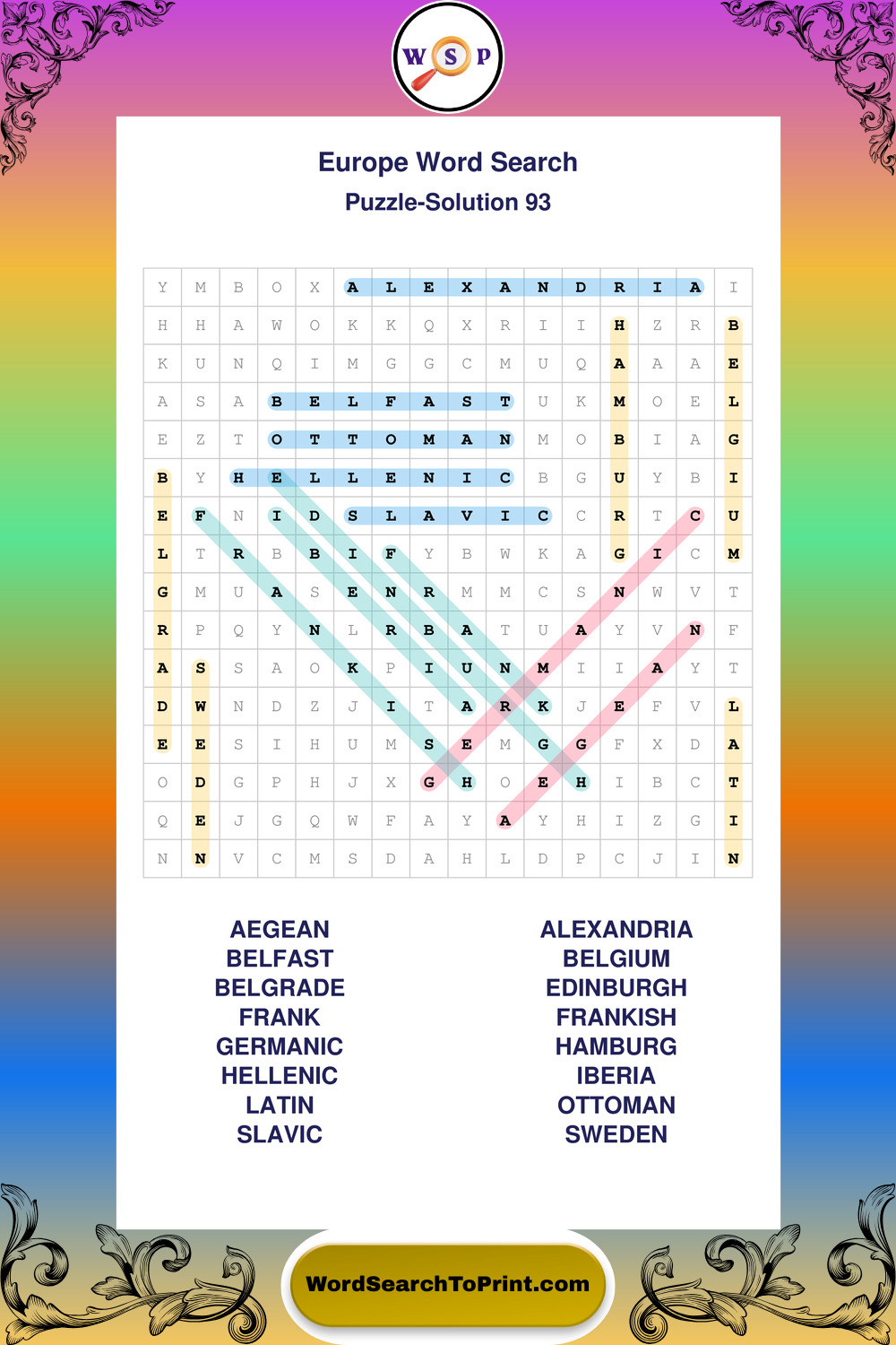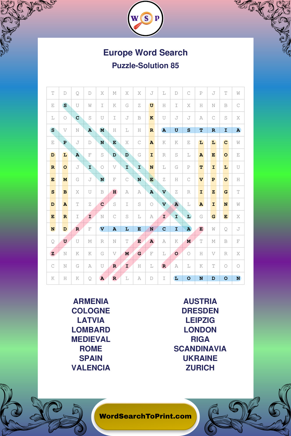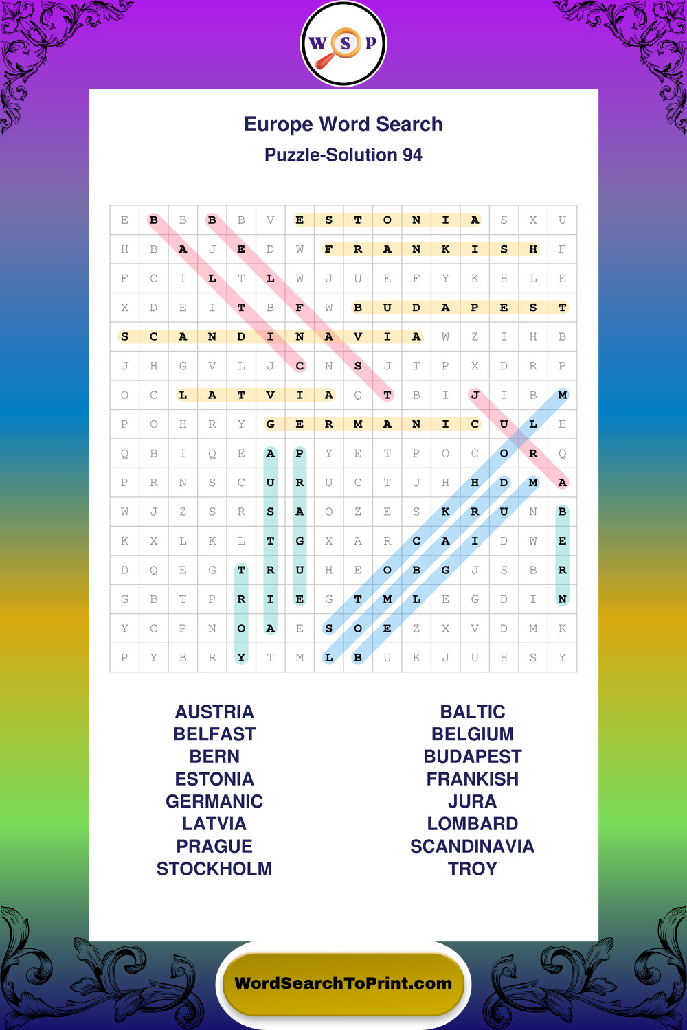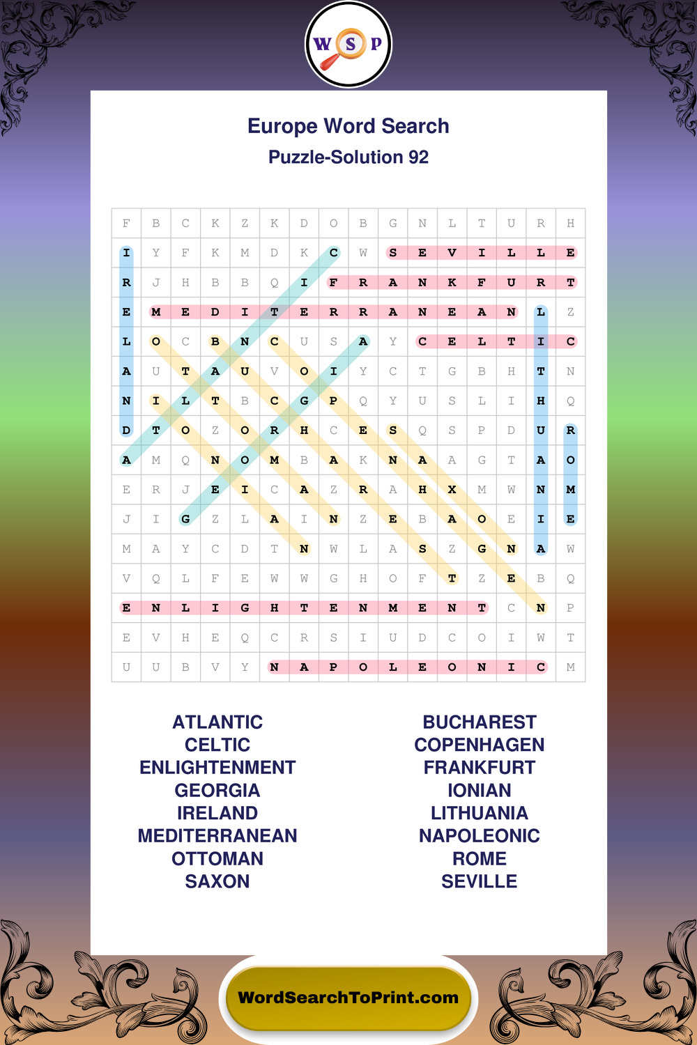 Europe Wordsearches