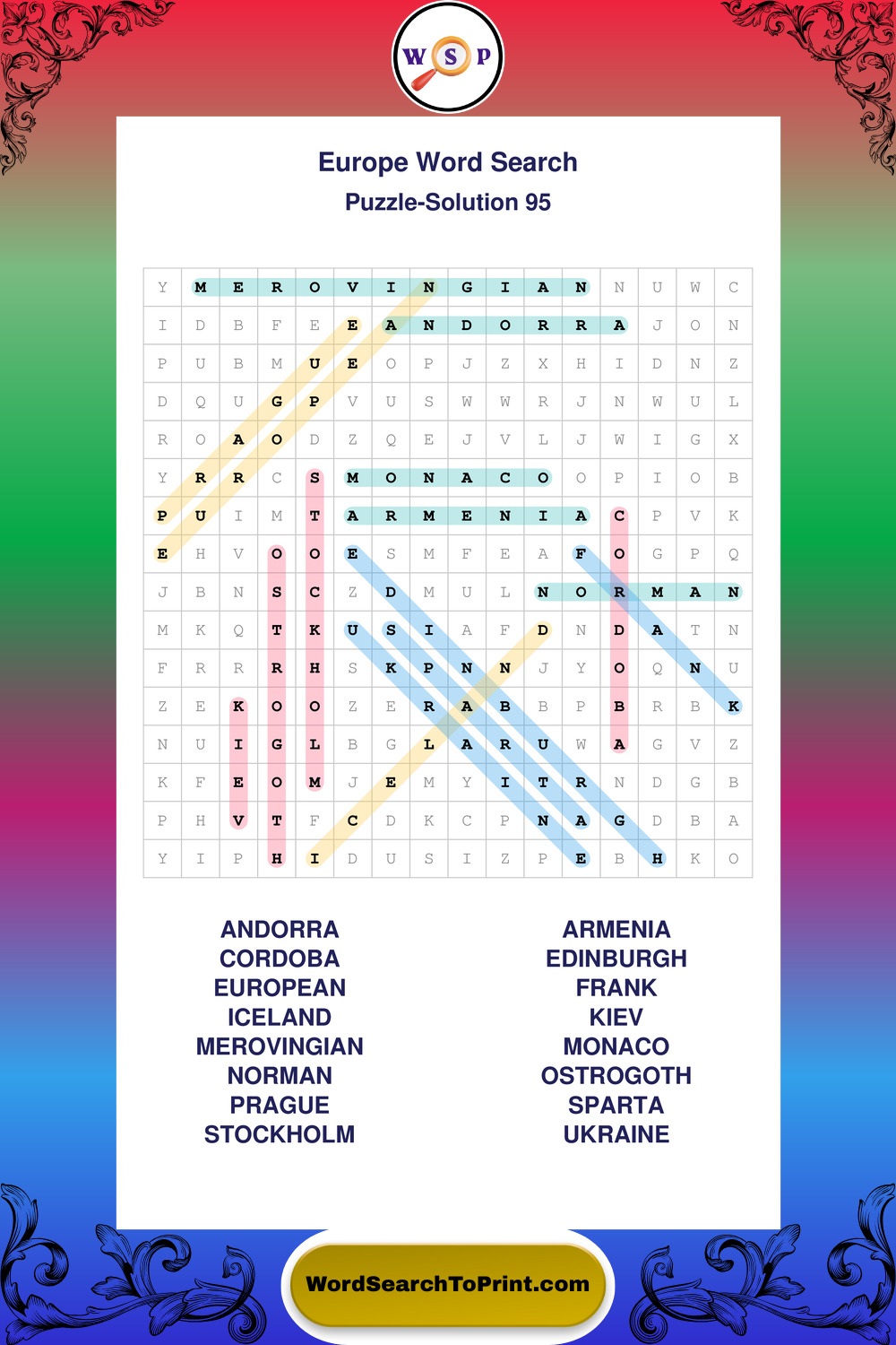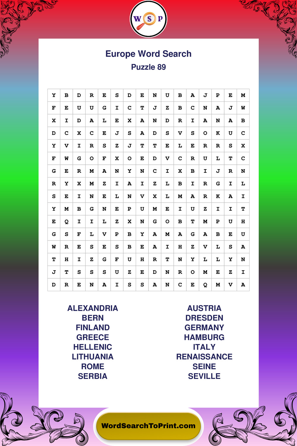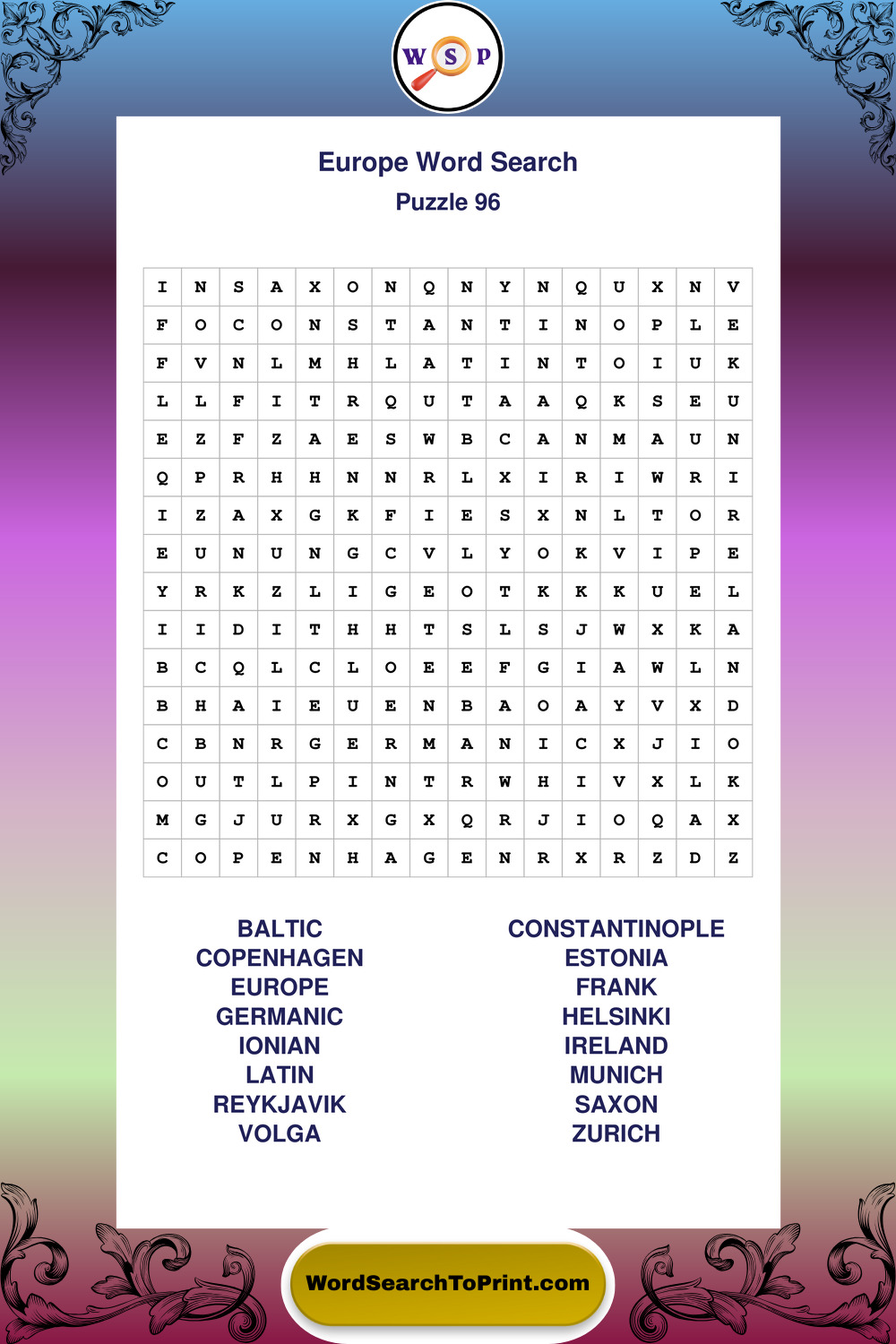 Printable Europe Wordsearch Puzzles