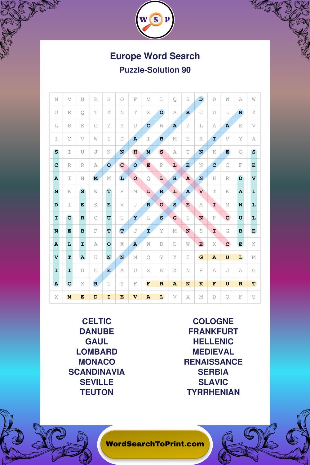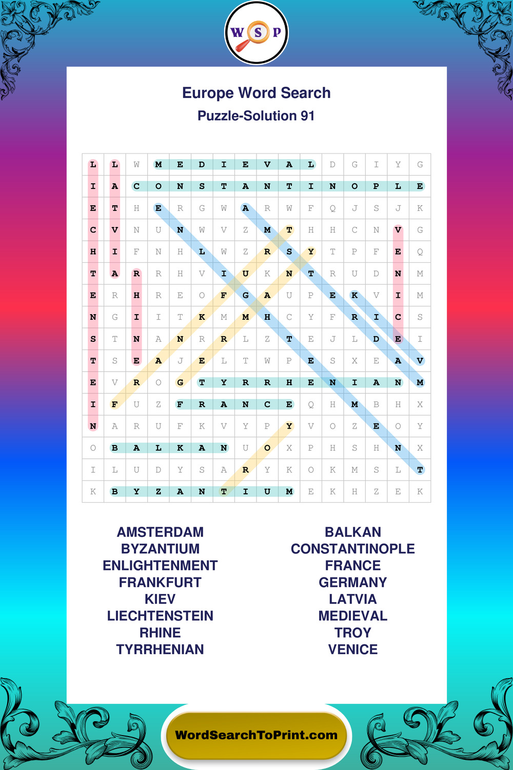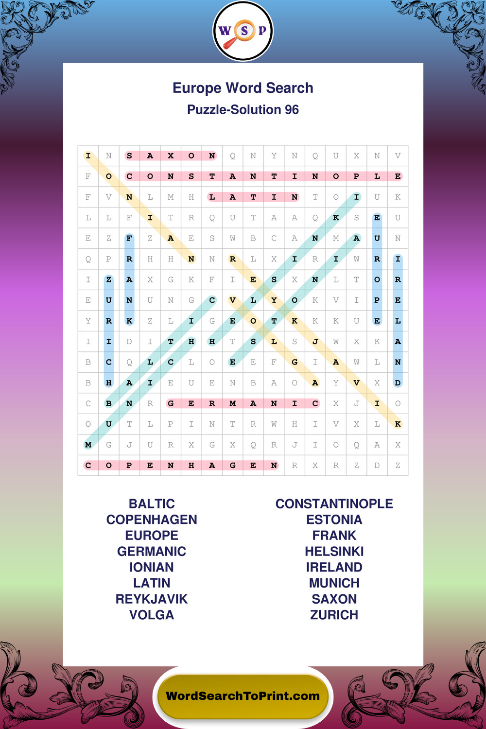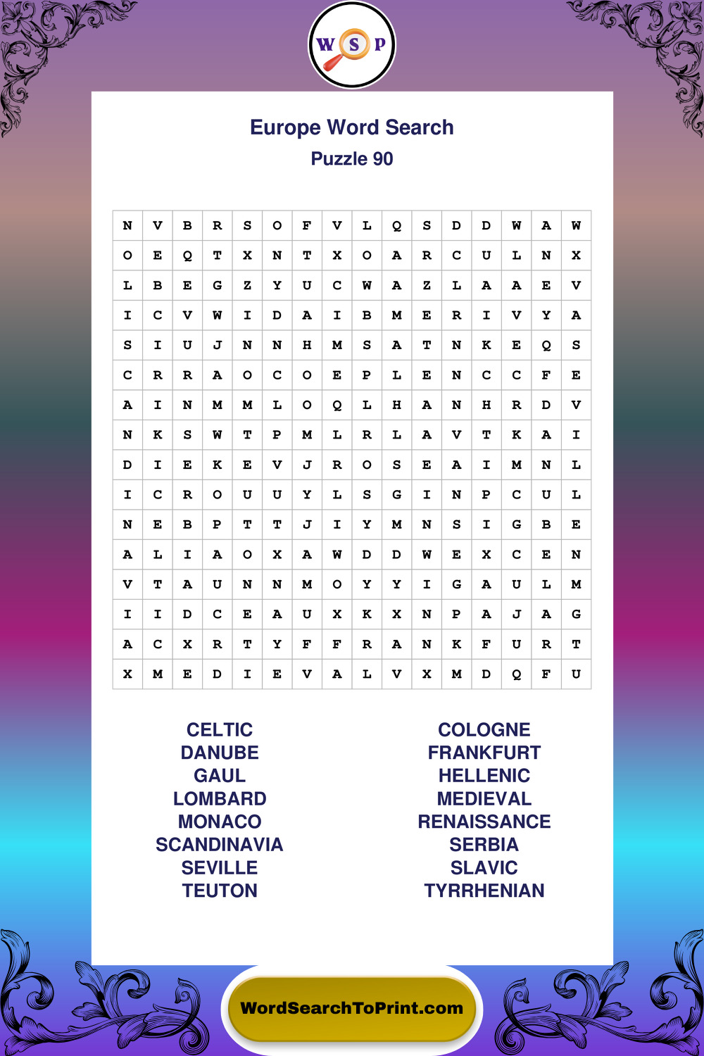 Printable Europe Wordsearch Puzzles