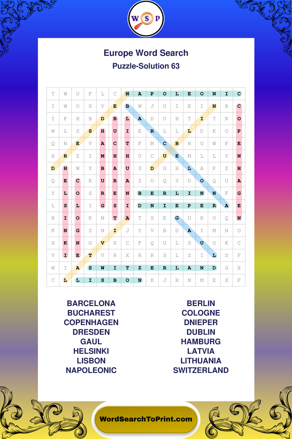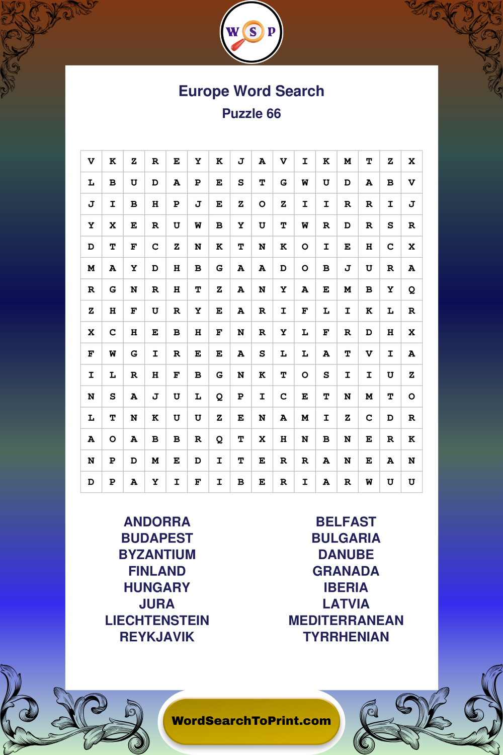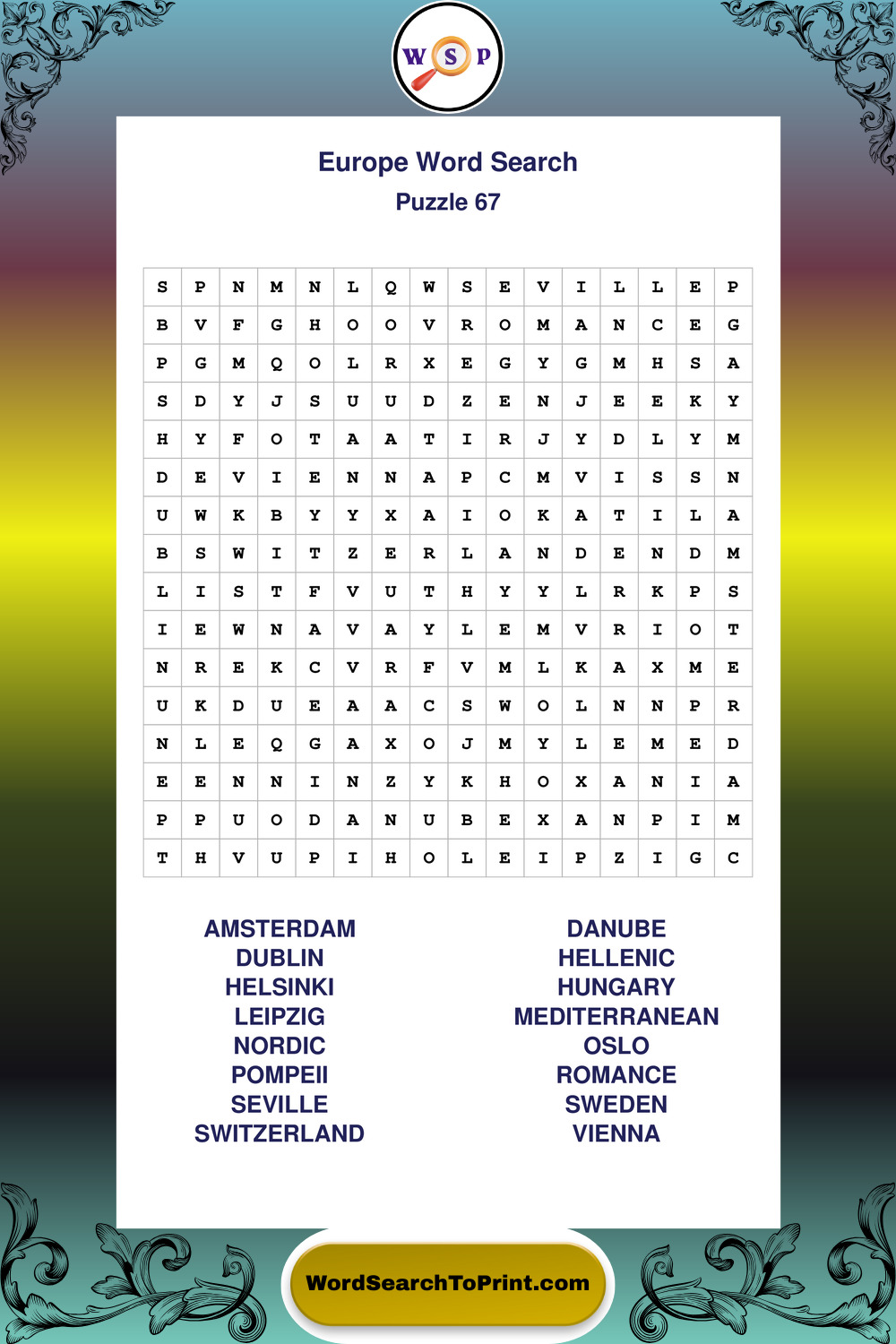 Printable Europe Wordsearch Puzzles