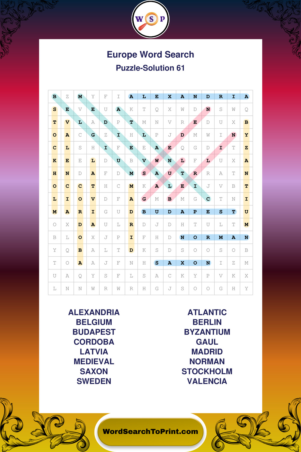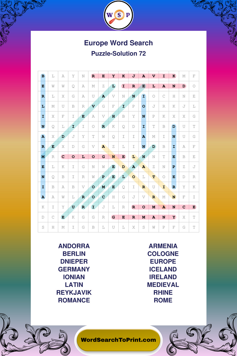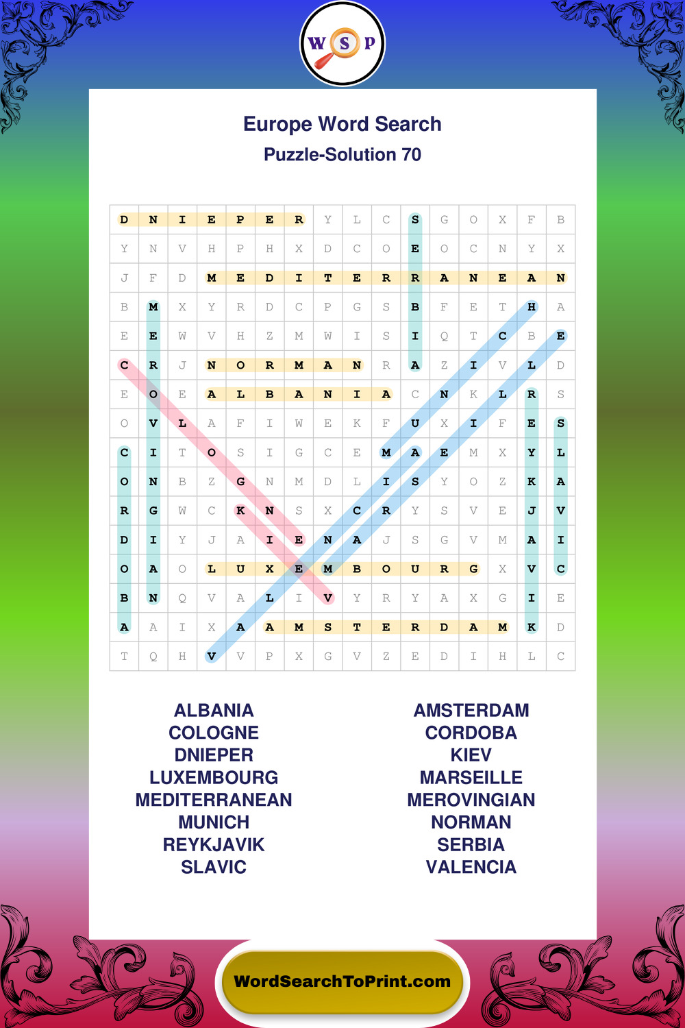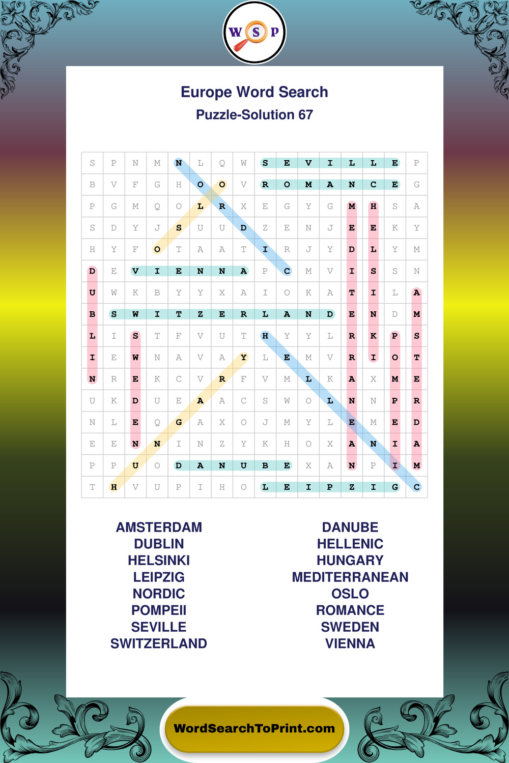 Printable Europe Wordsearch Puzzles