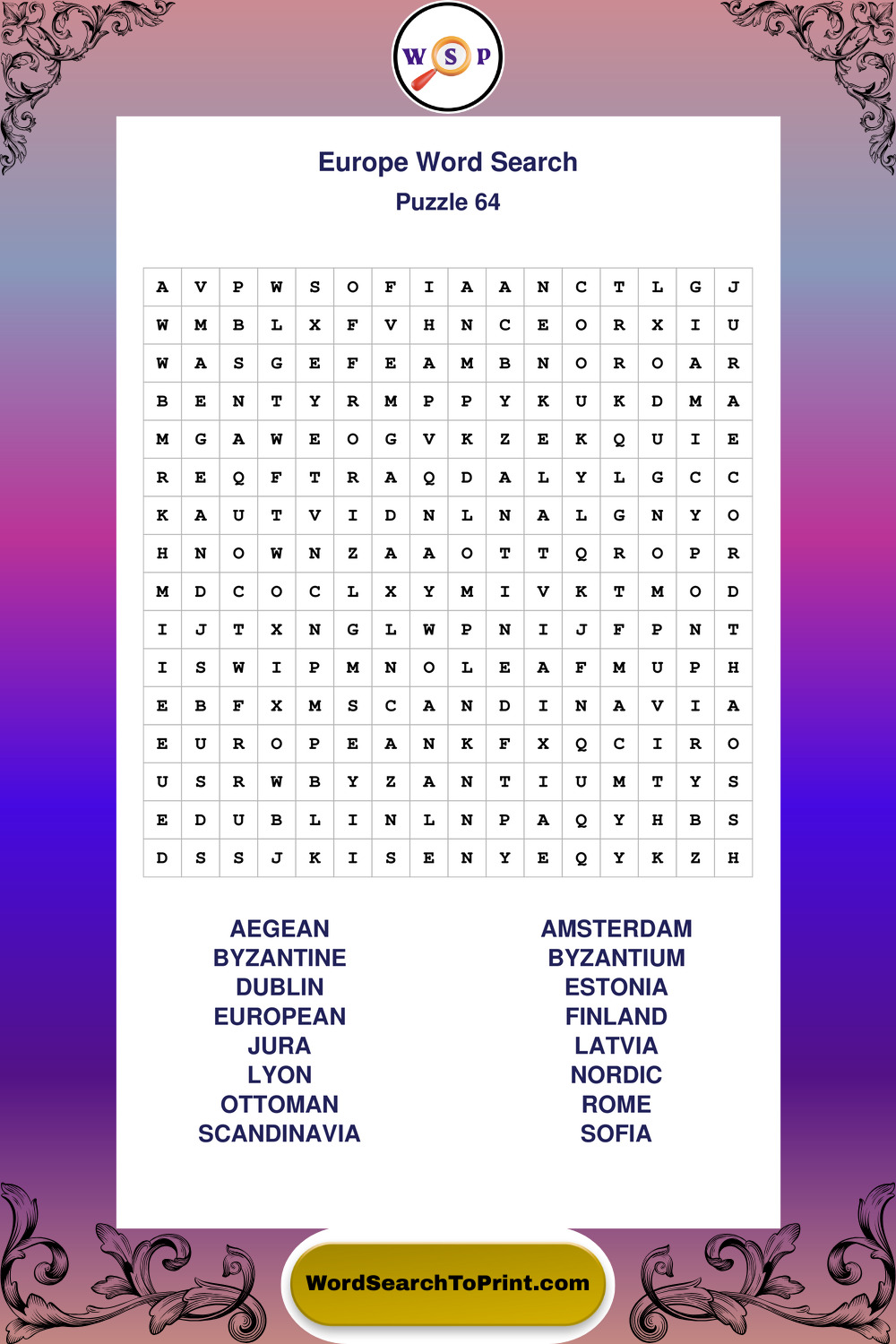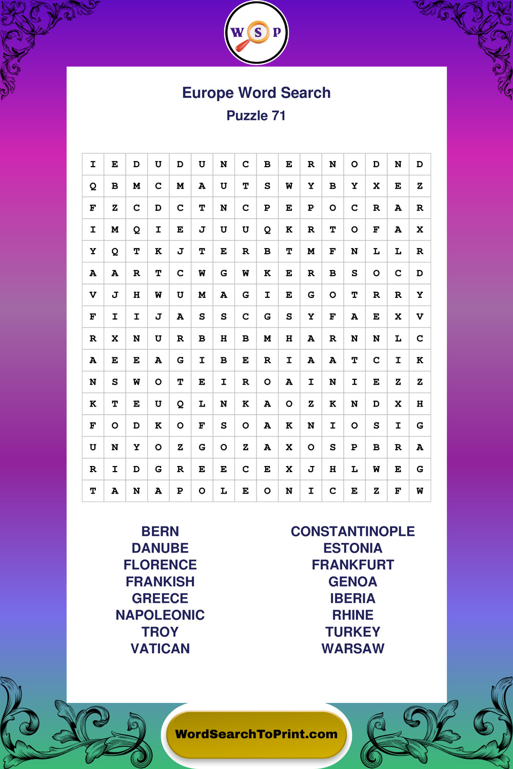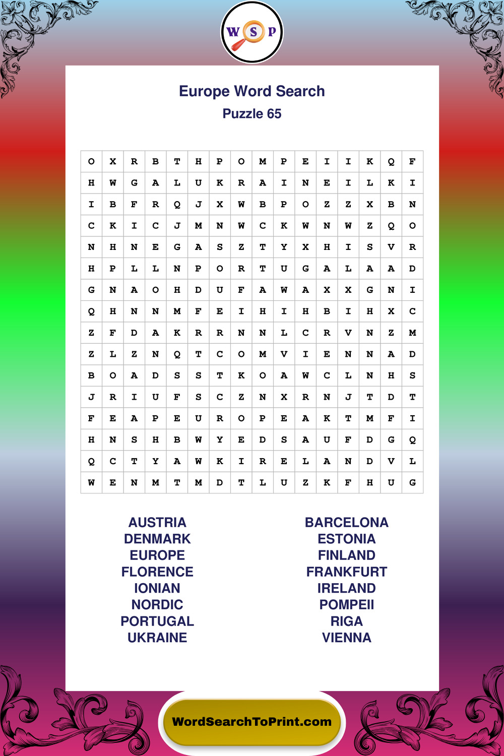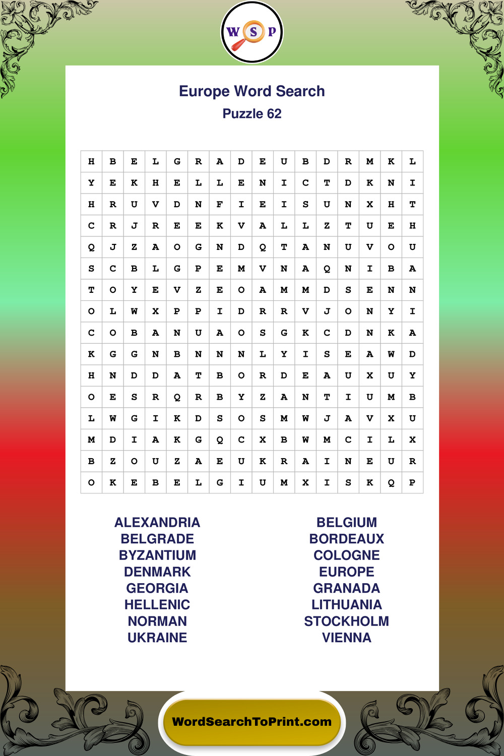 Browse easy-to-read large print Europe wordsearches created for peaceful moments and clear visual comfort.