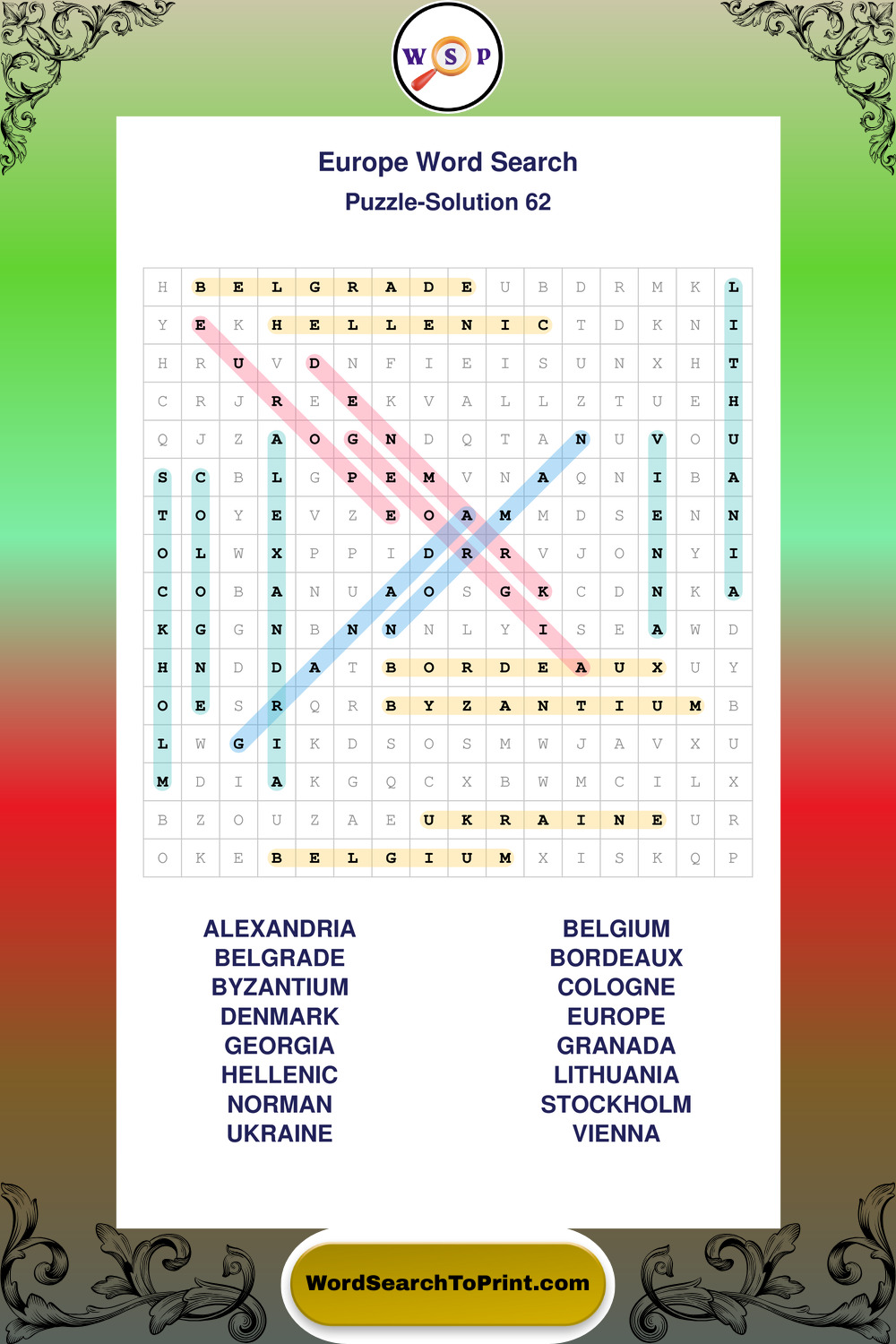 Europe Wordsearches