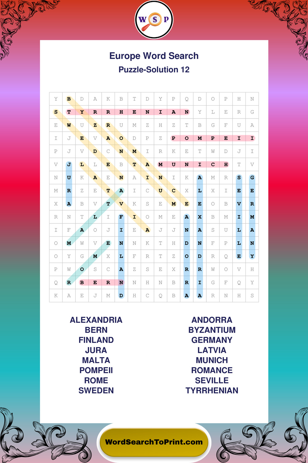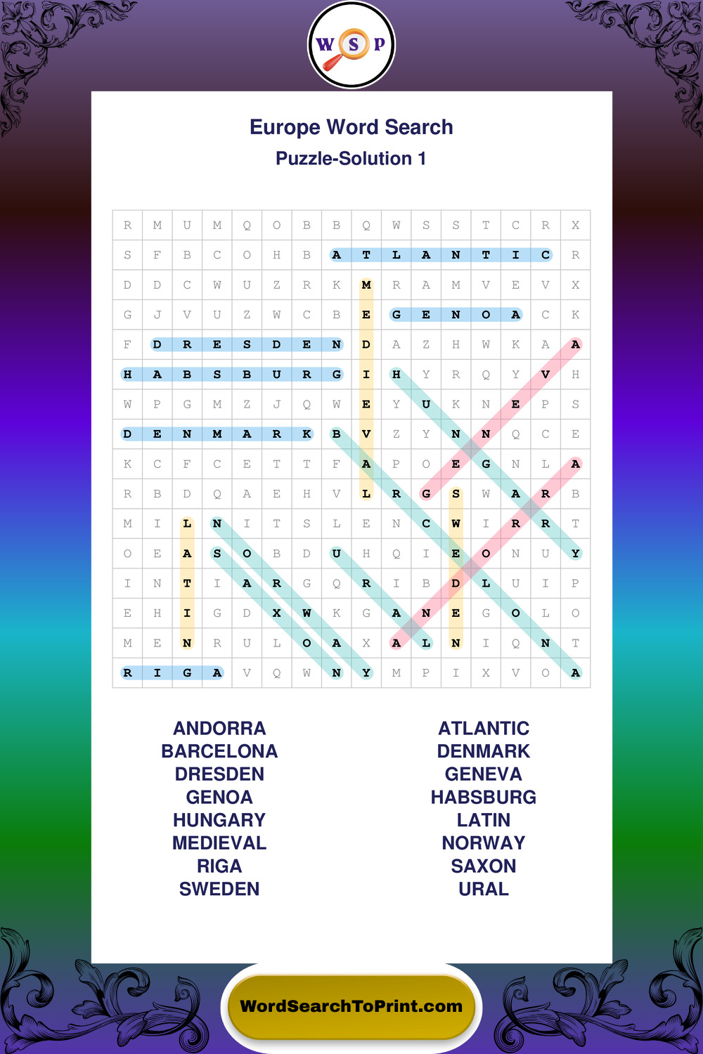 Europe Wordsearches