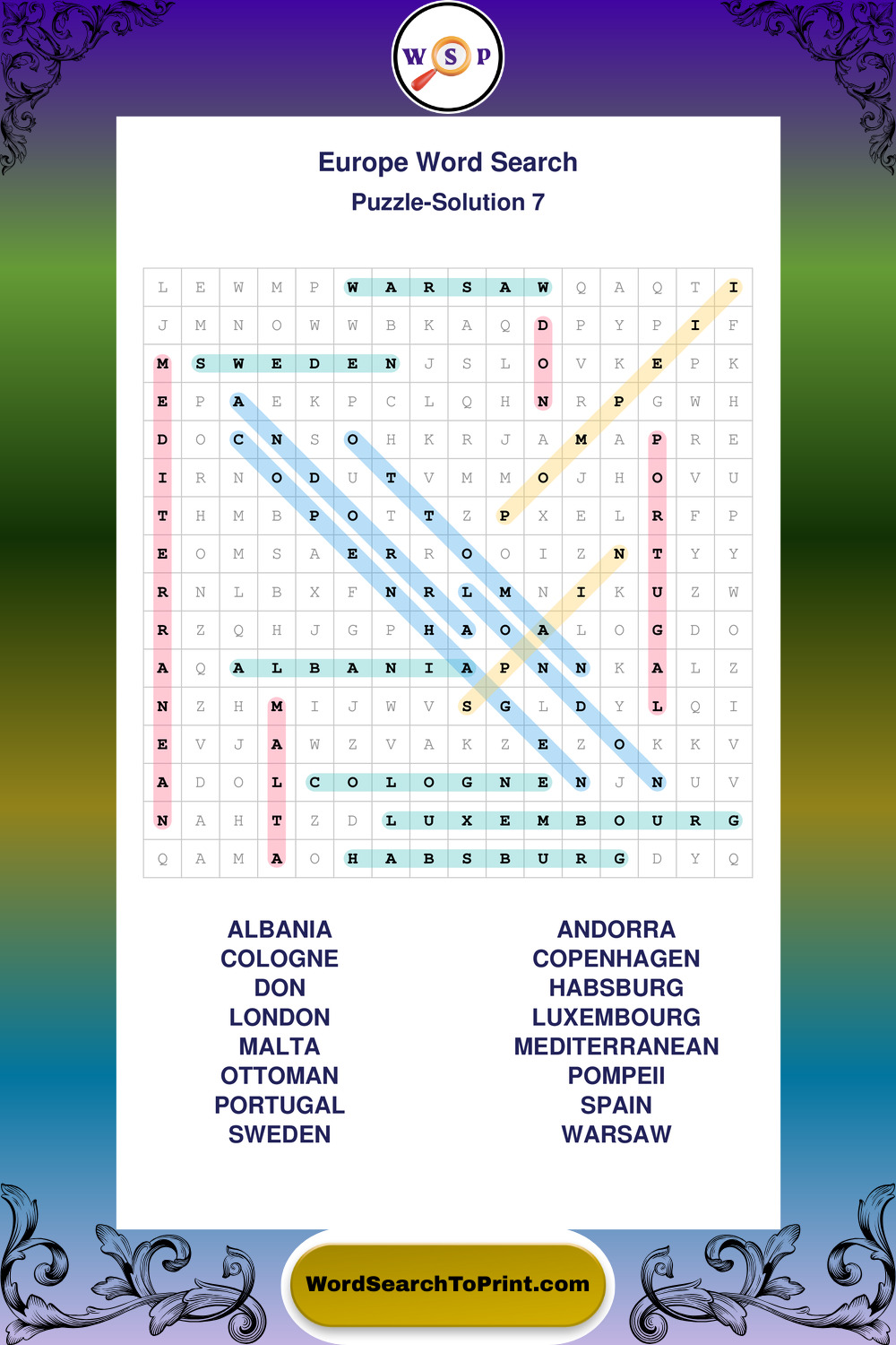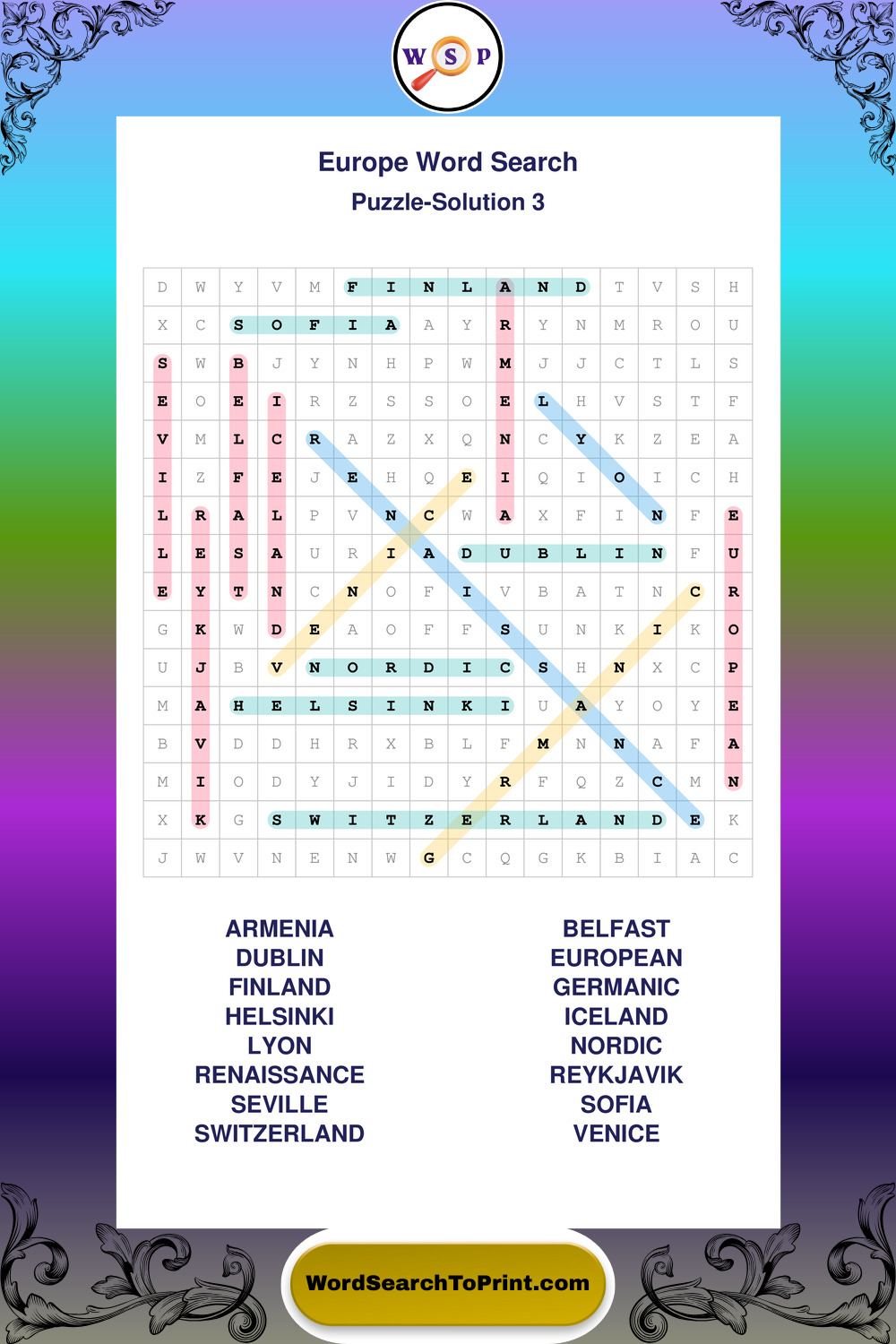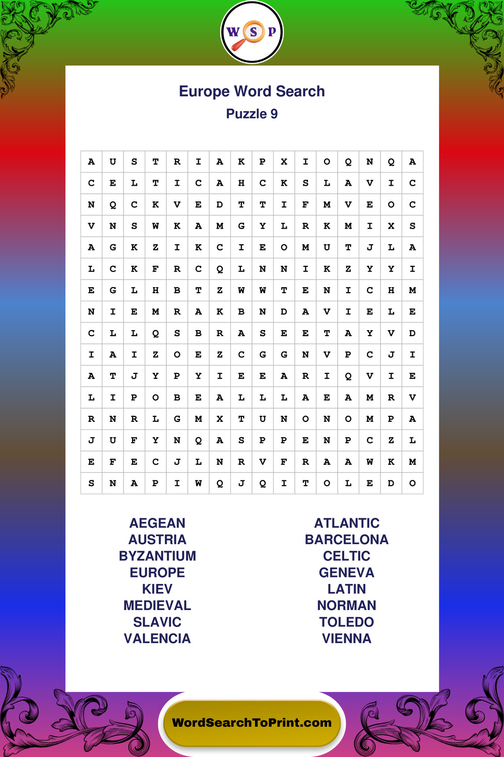 Printable Europe Wordsearch Puzzles