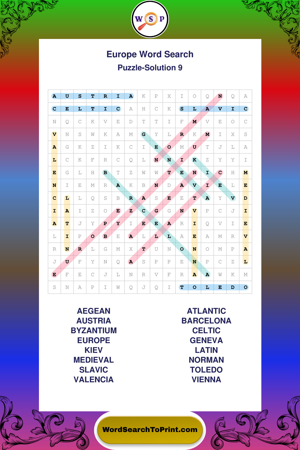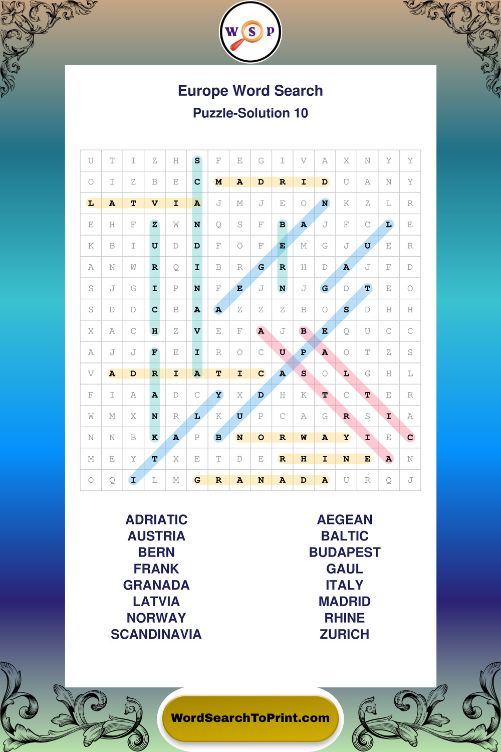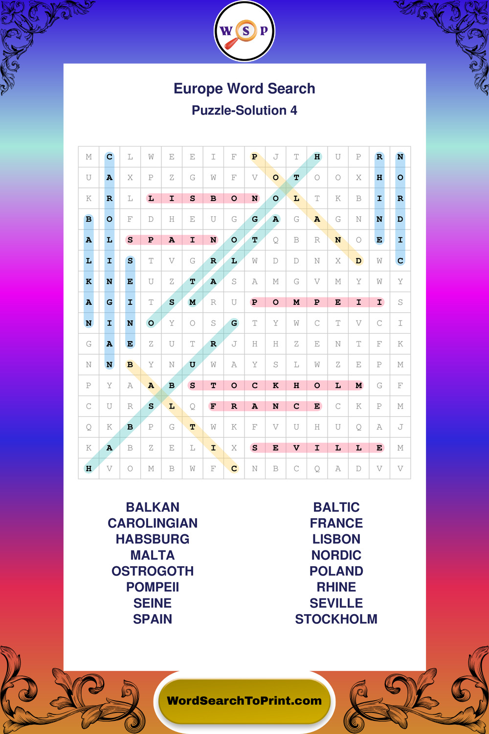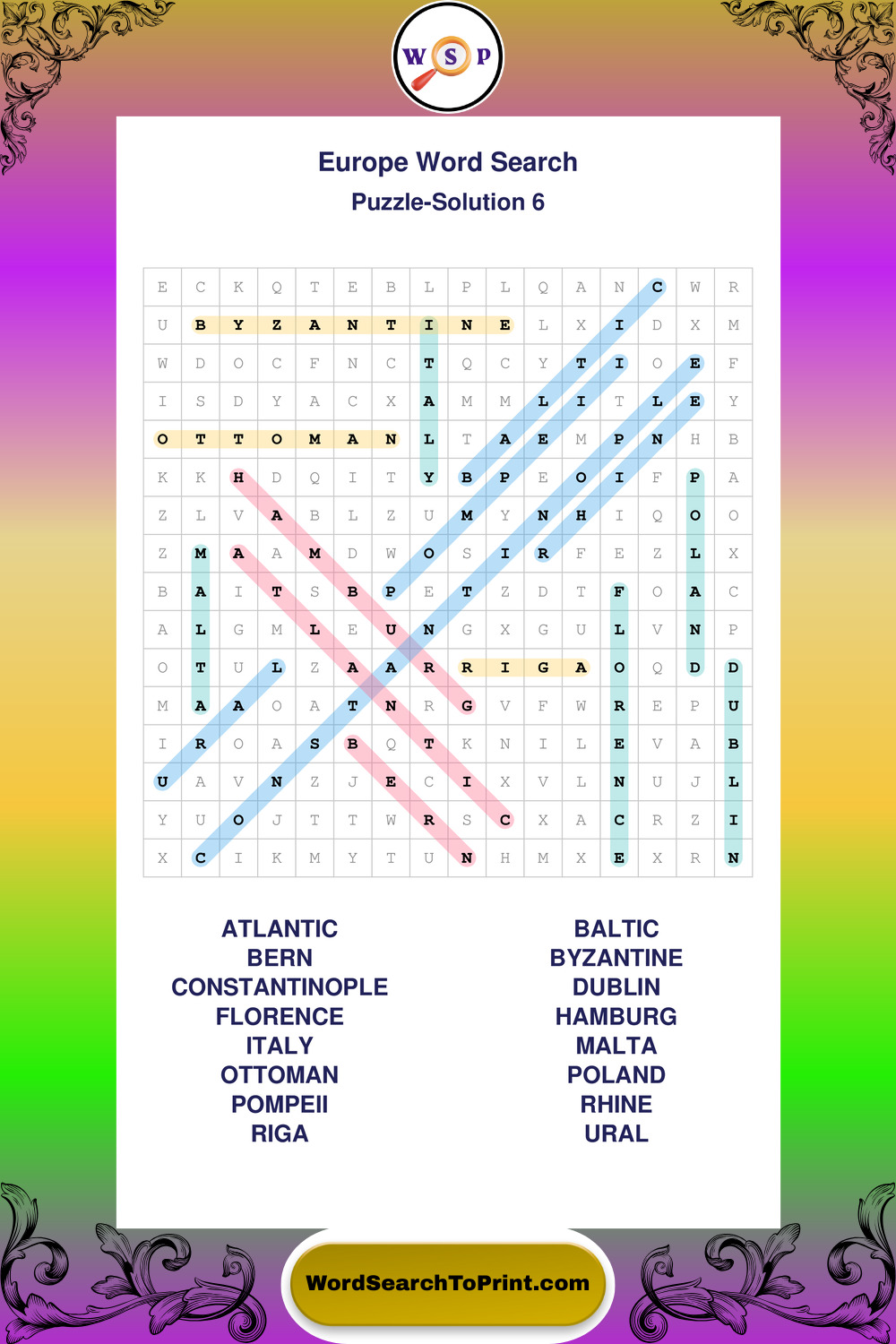 Printable Europe Wordsearch Puzzles