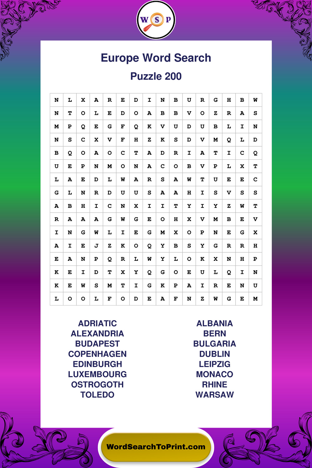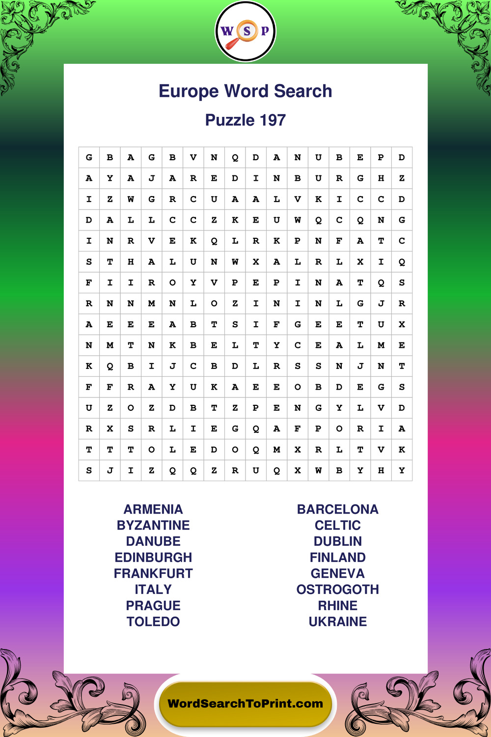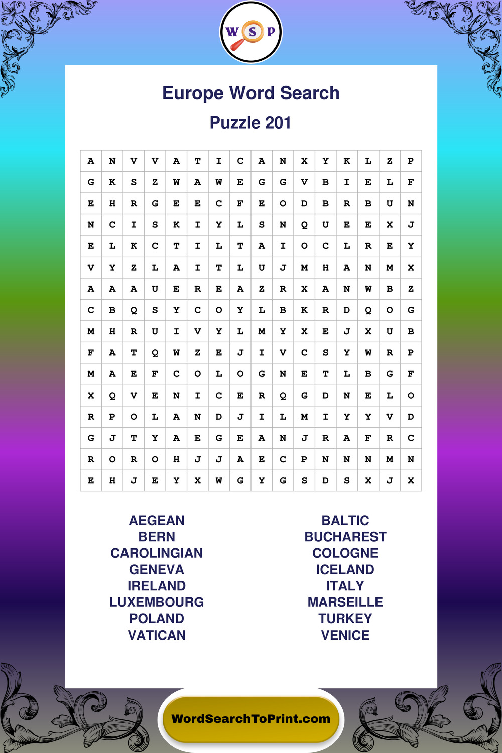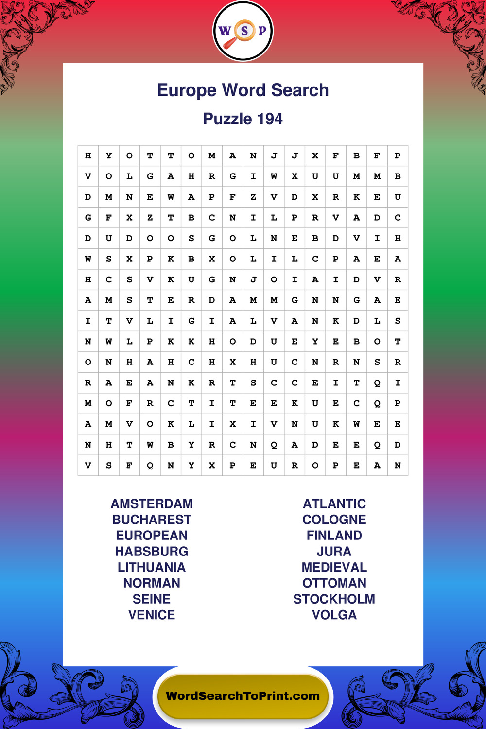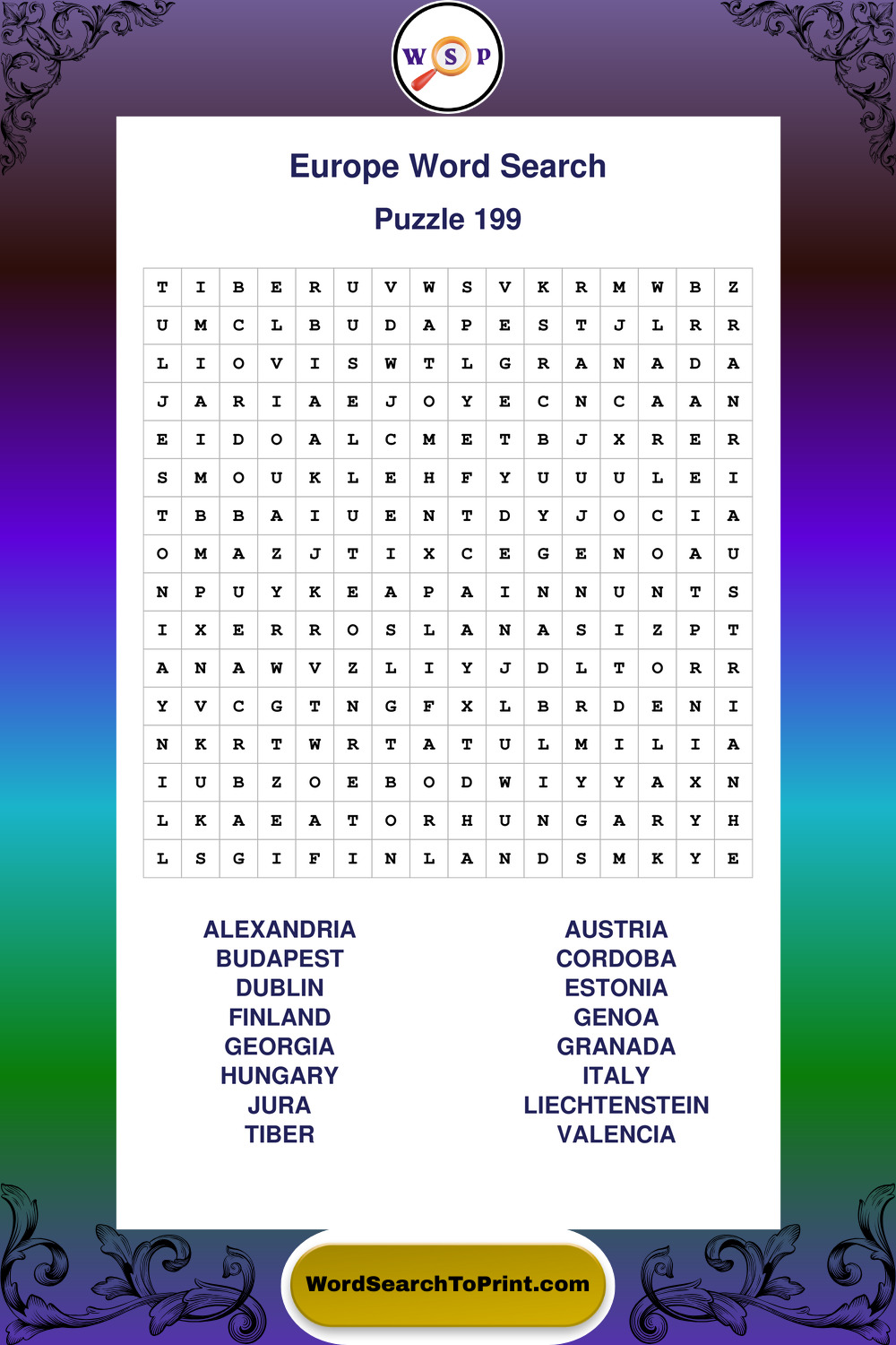 Printable Europe Wordsearch Puzzles