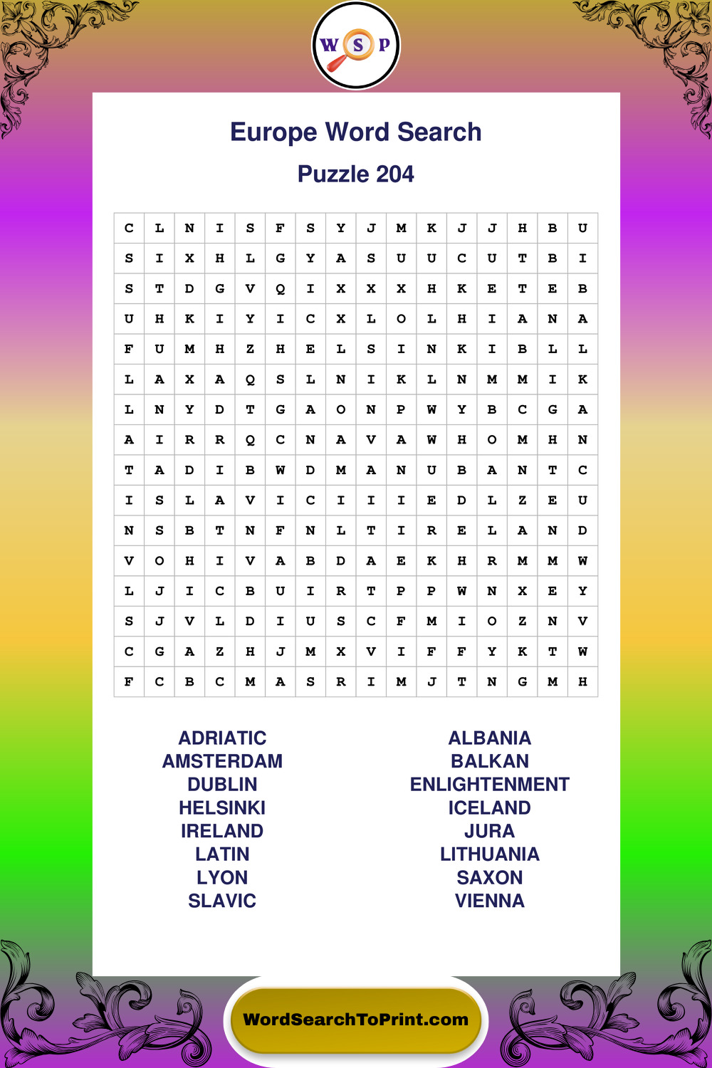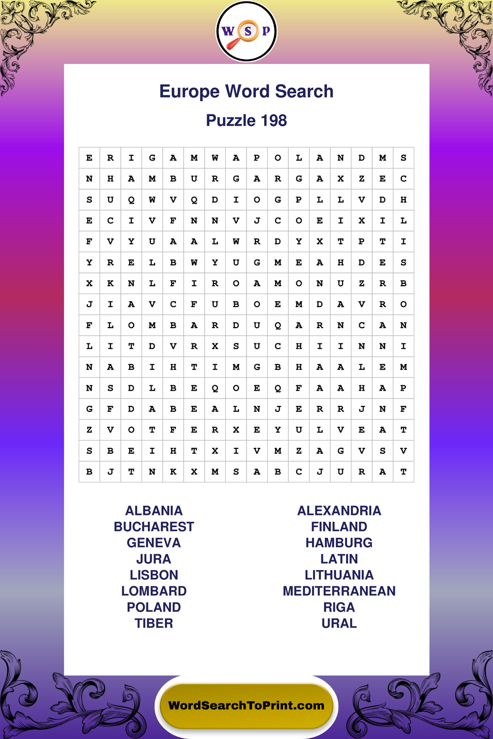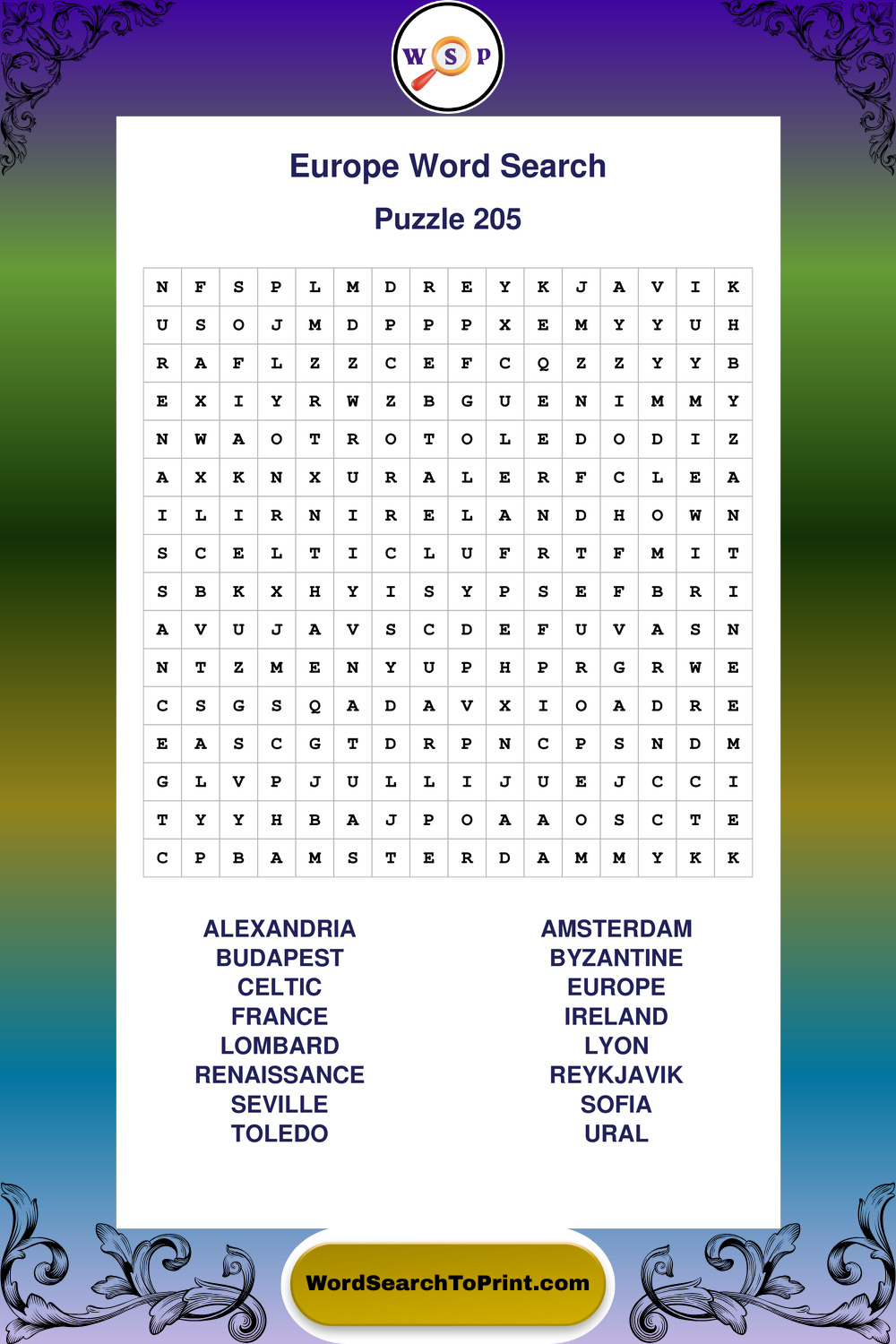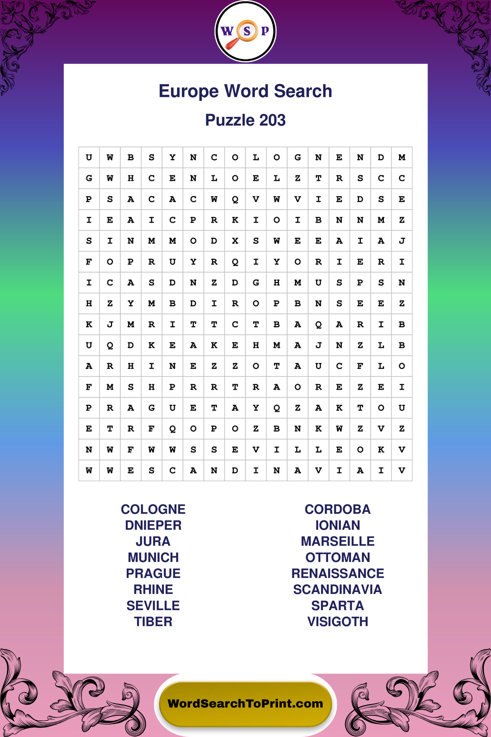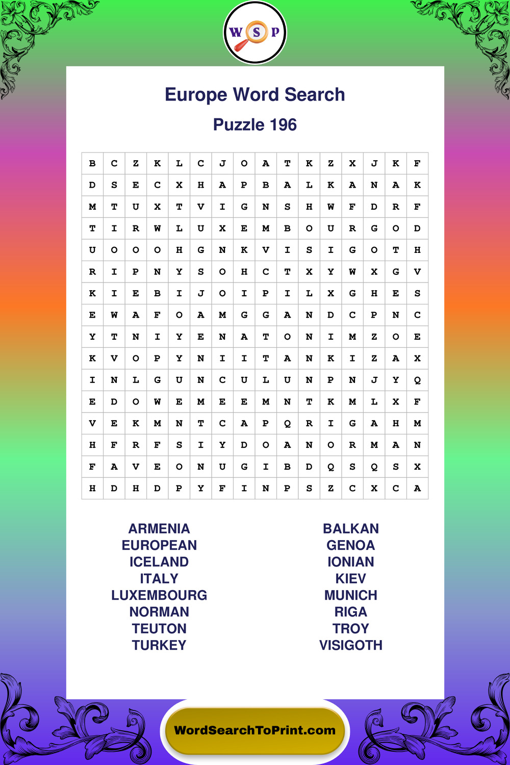 Printable Europe Wordsearch Puzzles