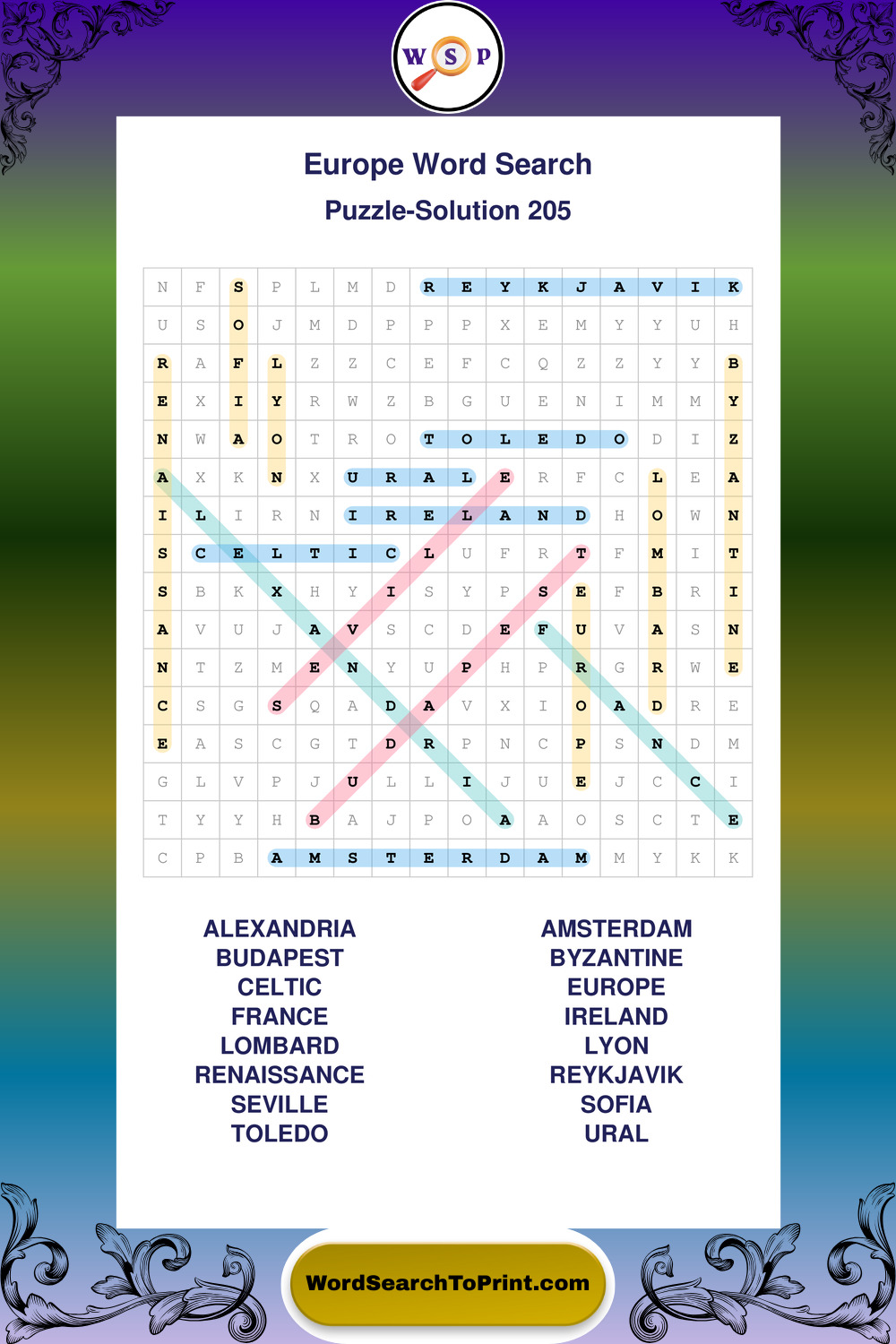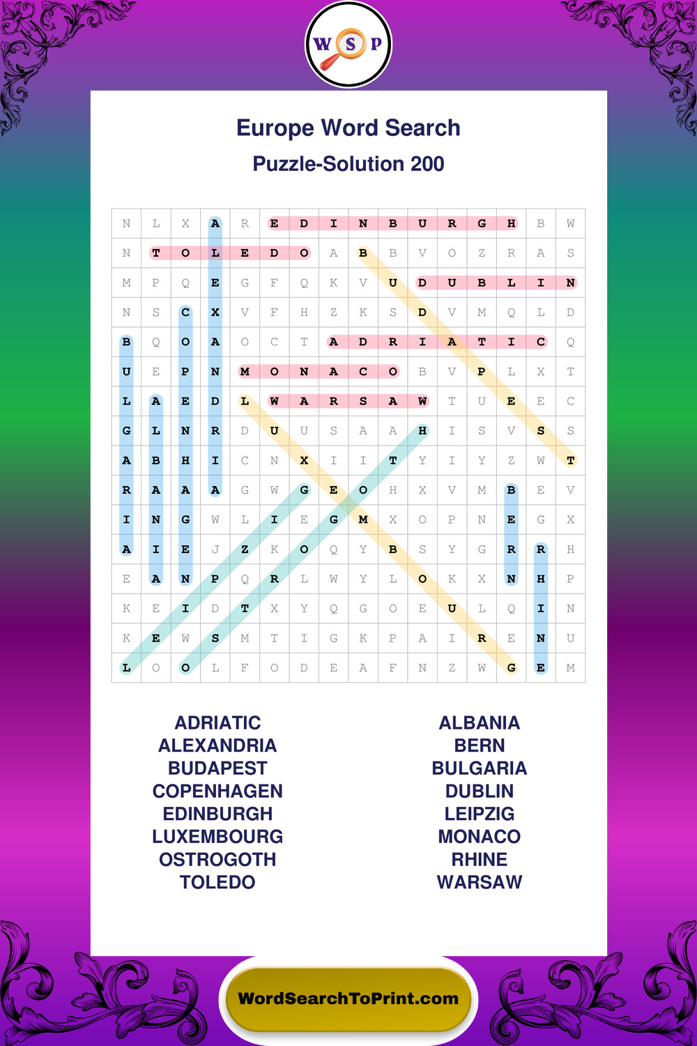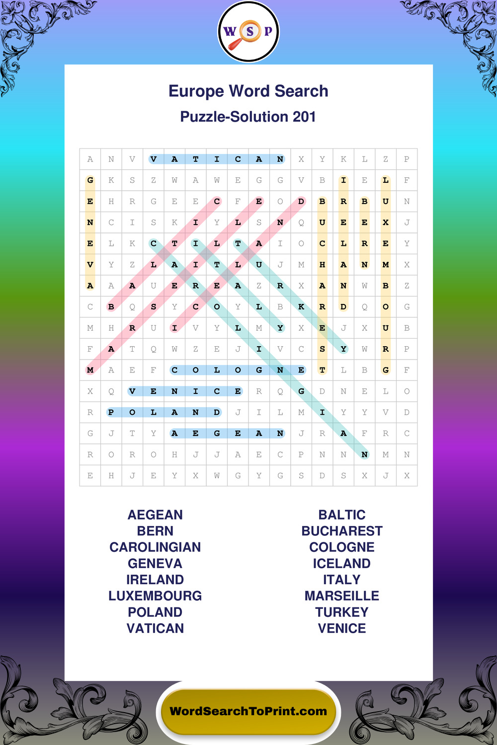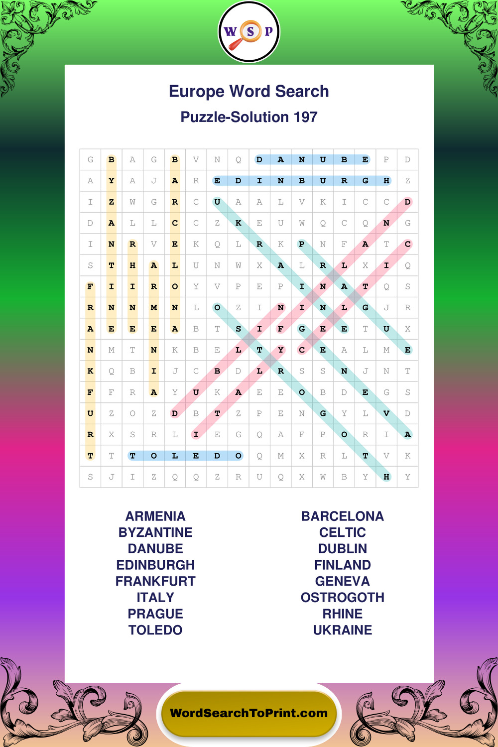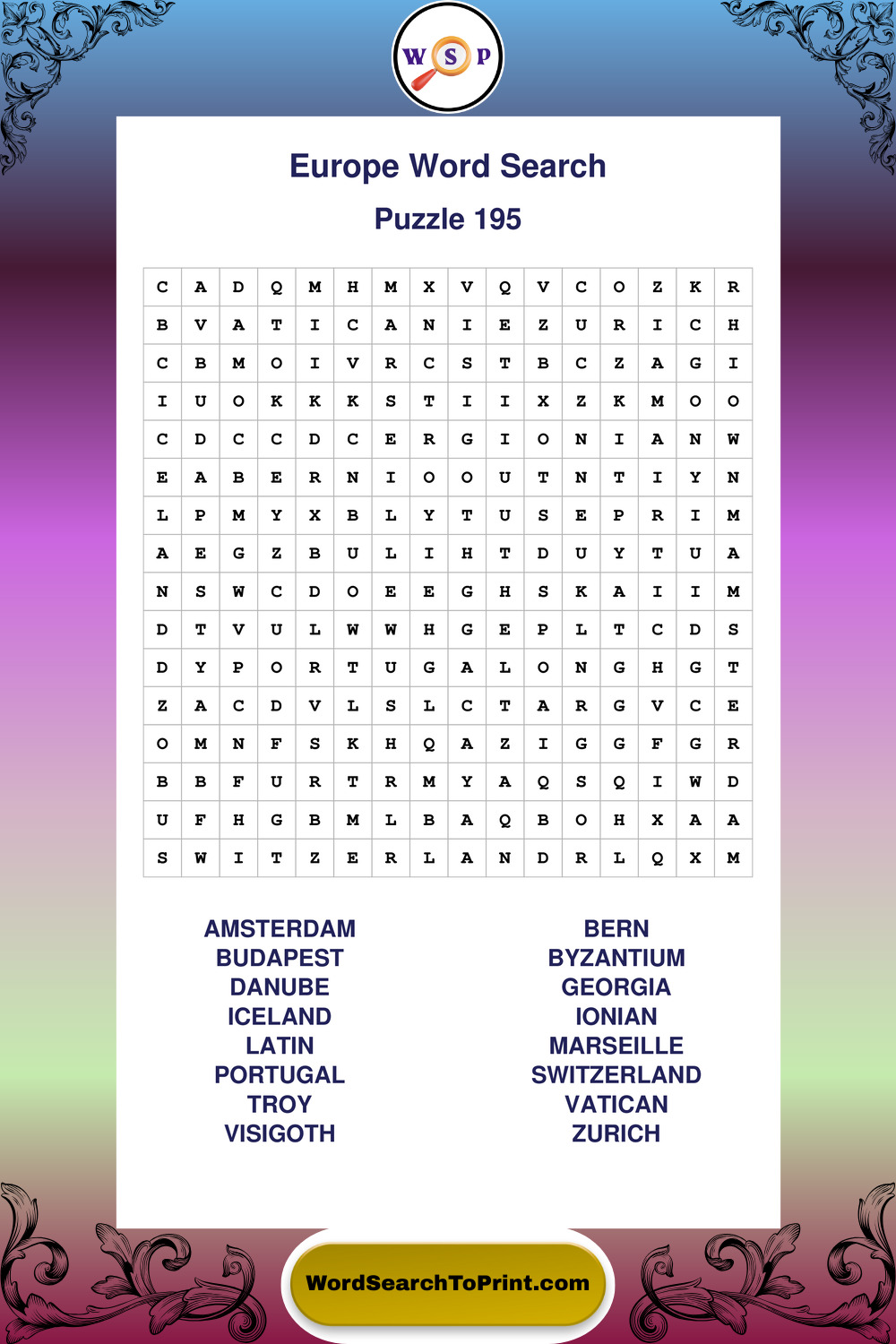 Printable Europe Wordsearch Puzzles