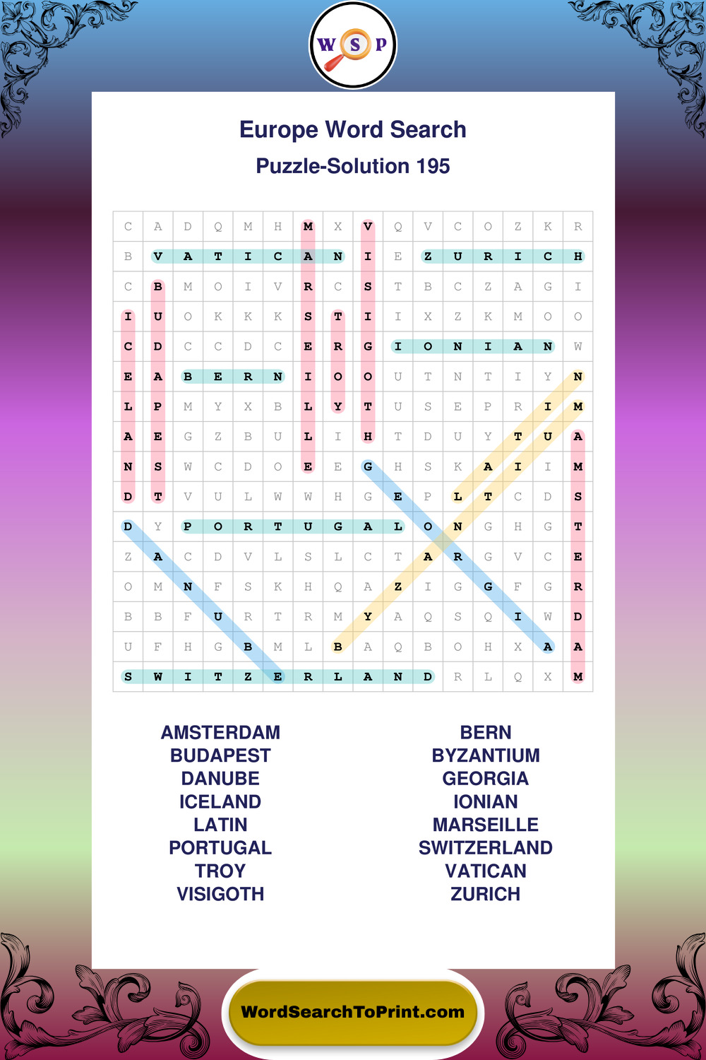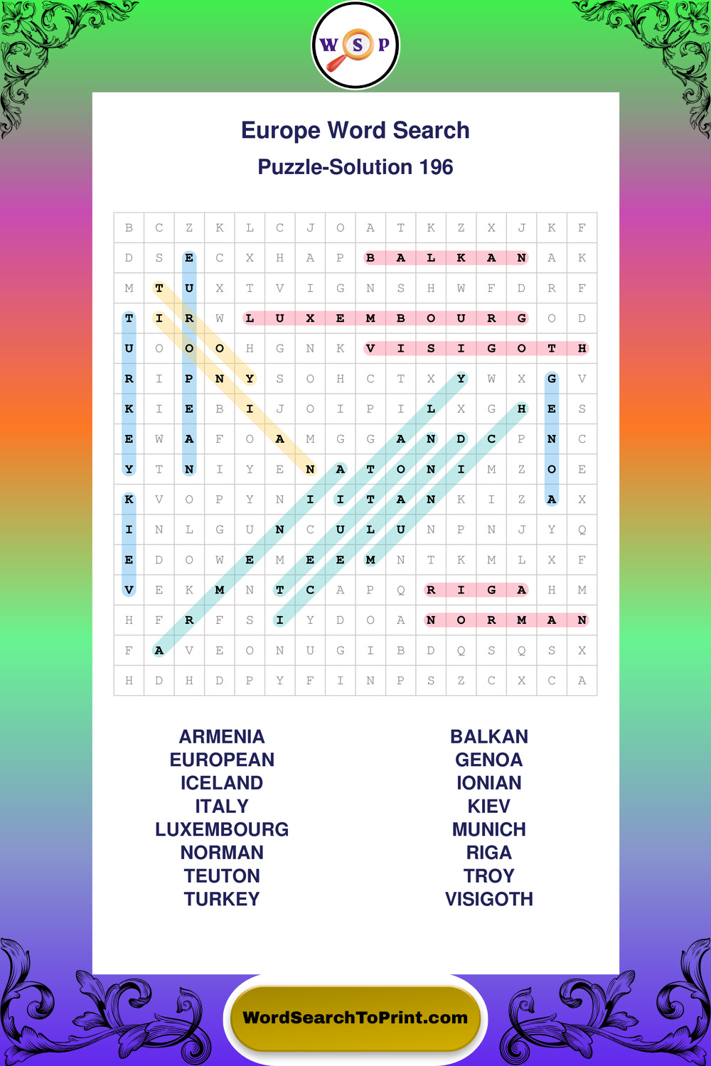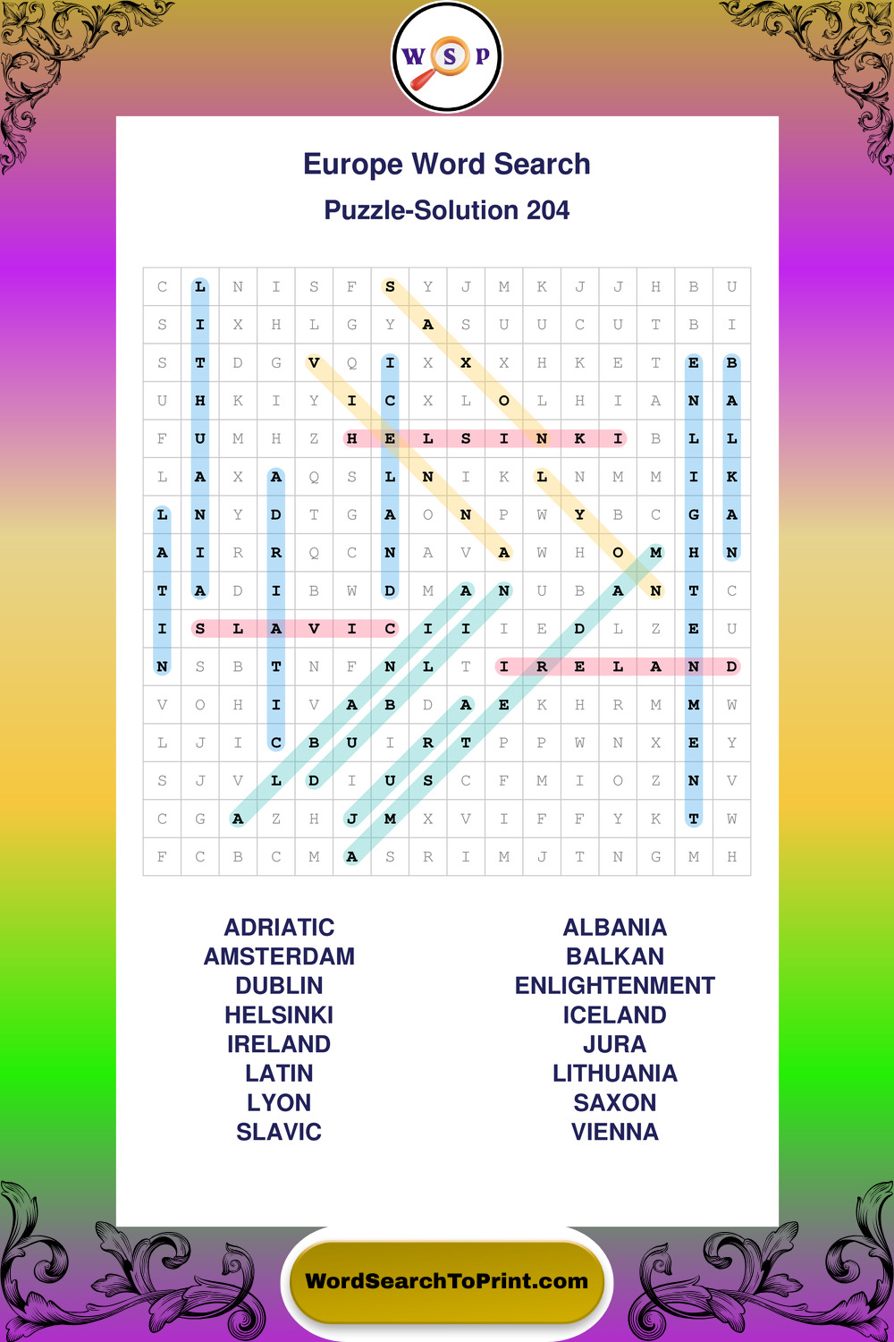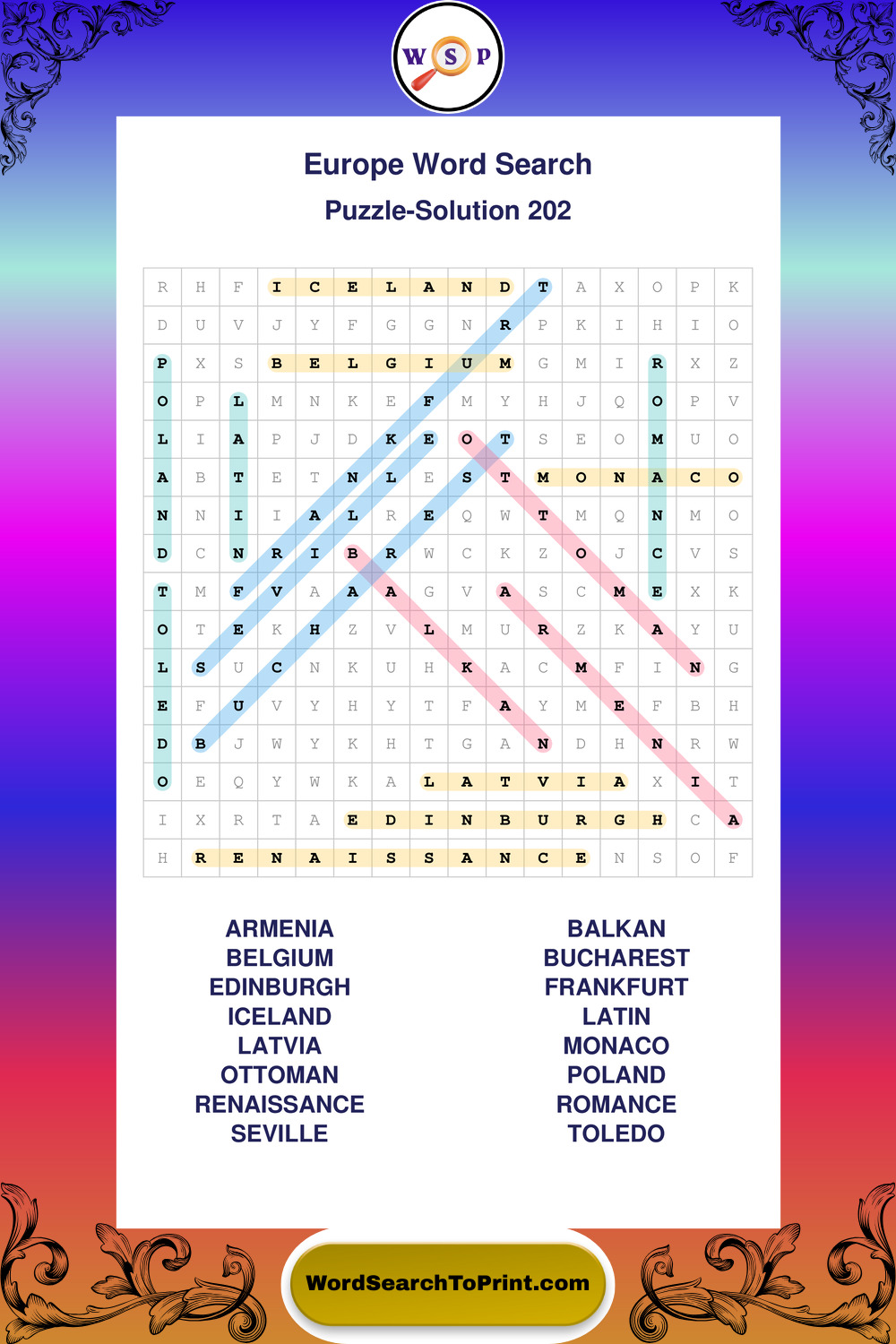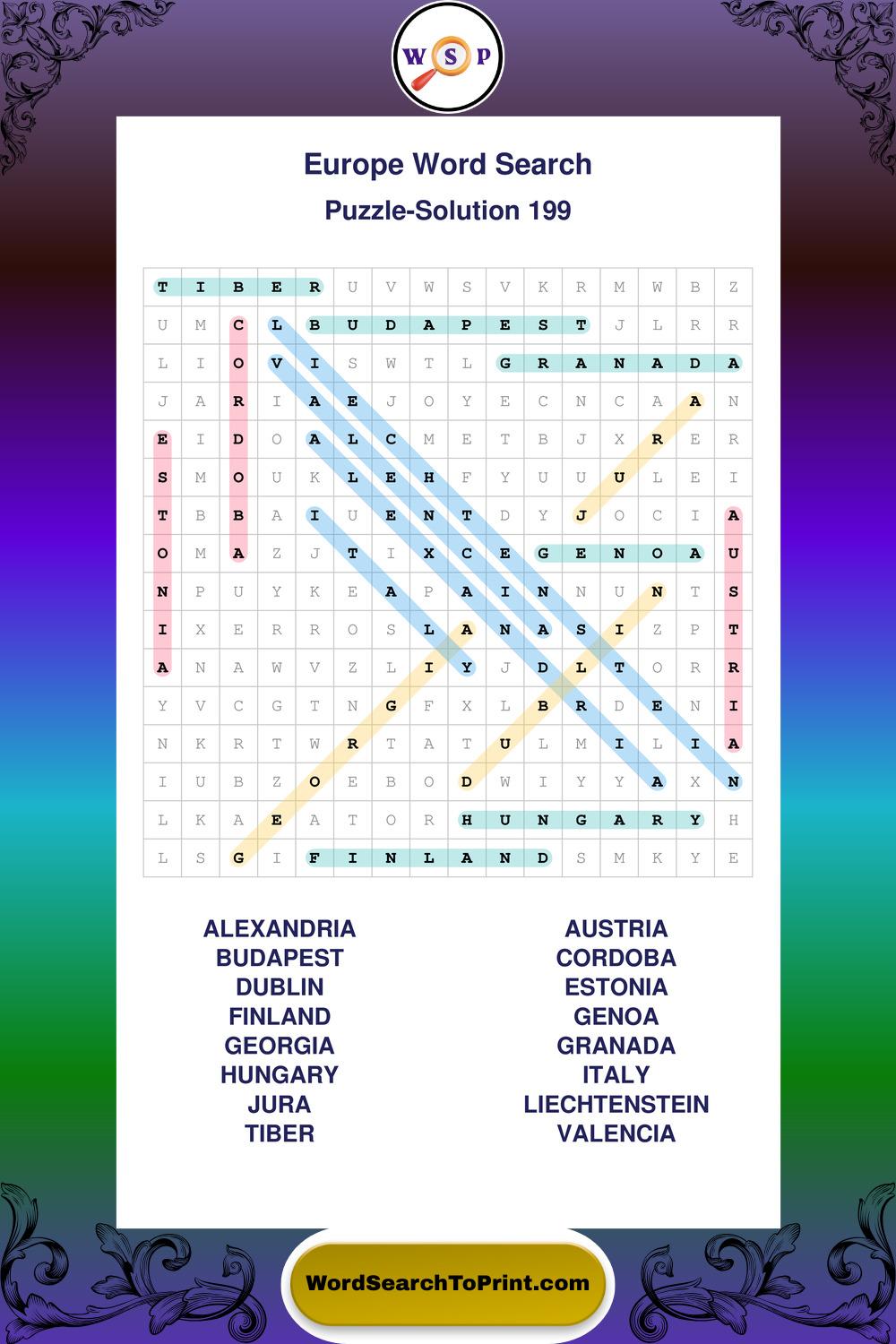 Europe Wordsearches