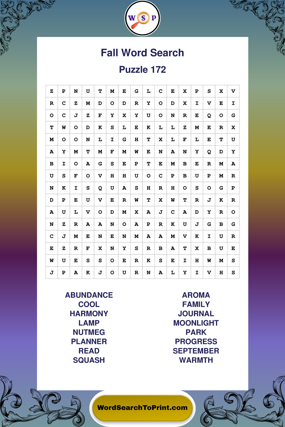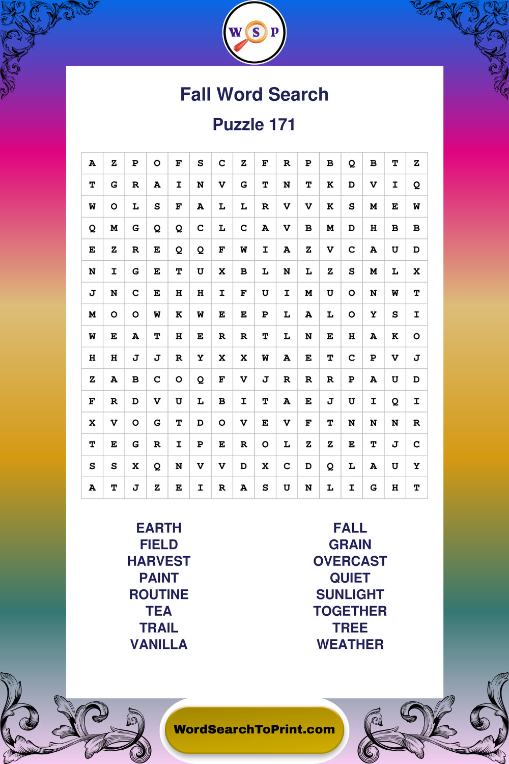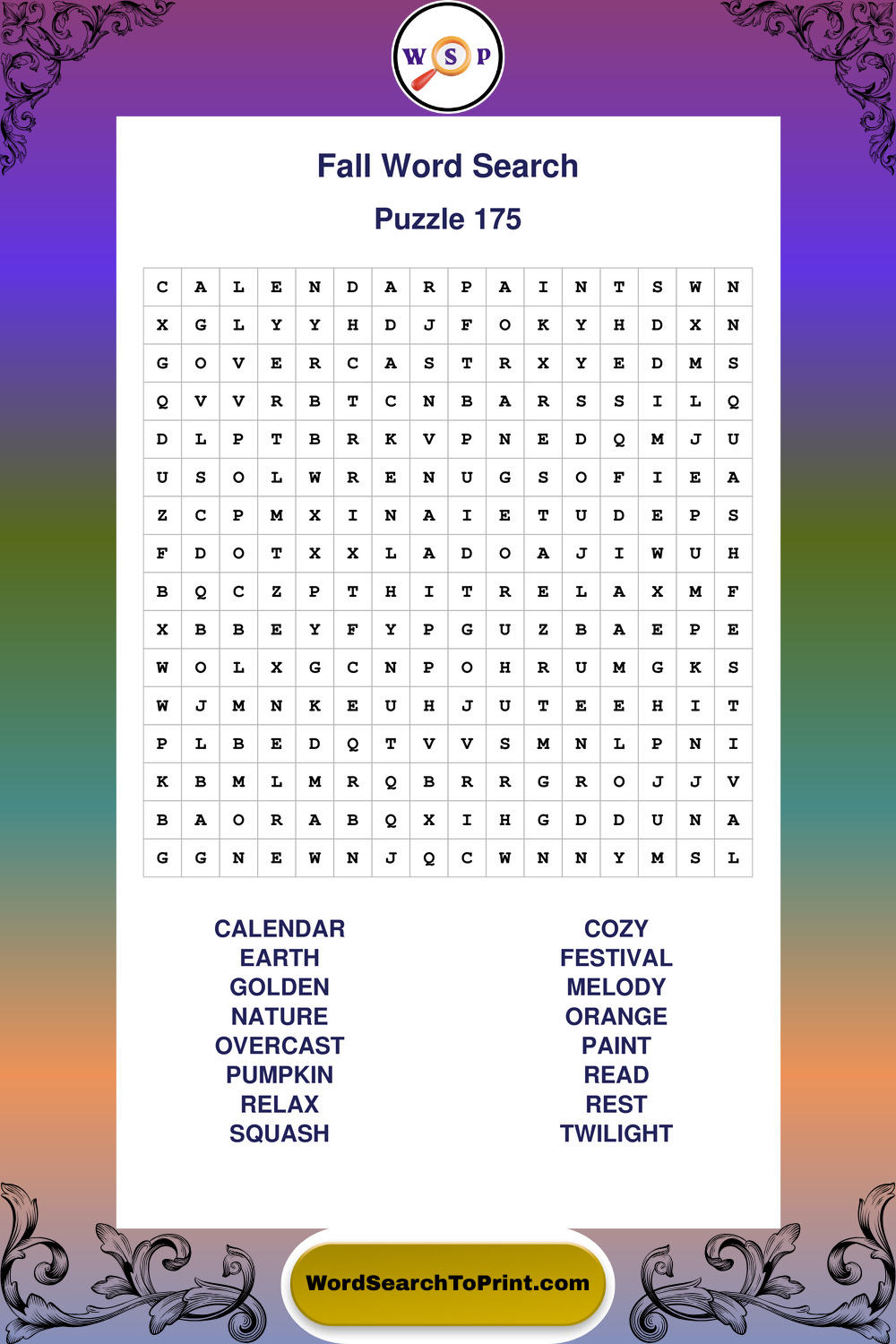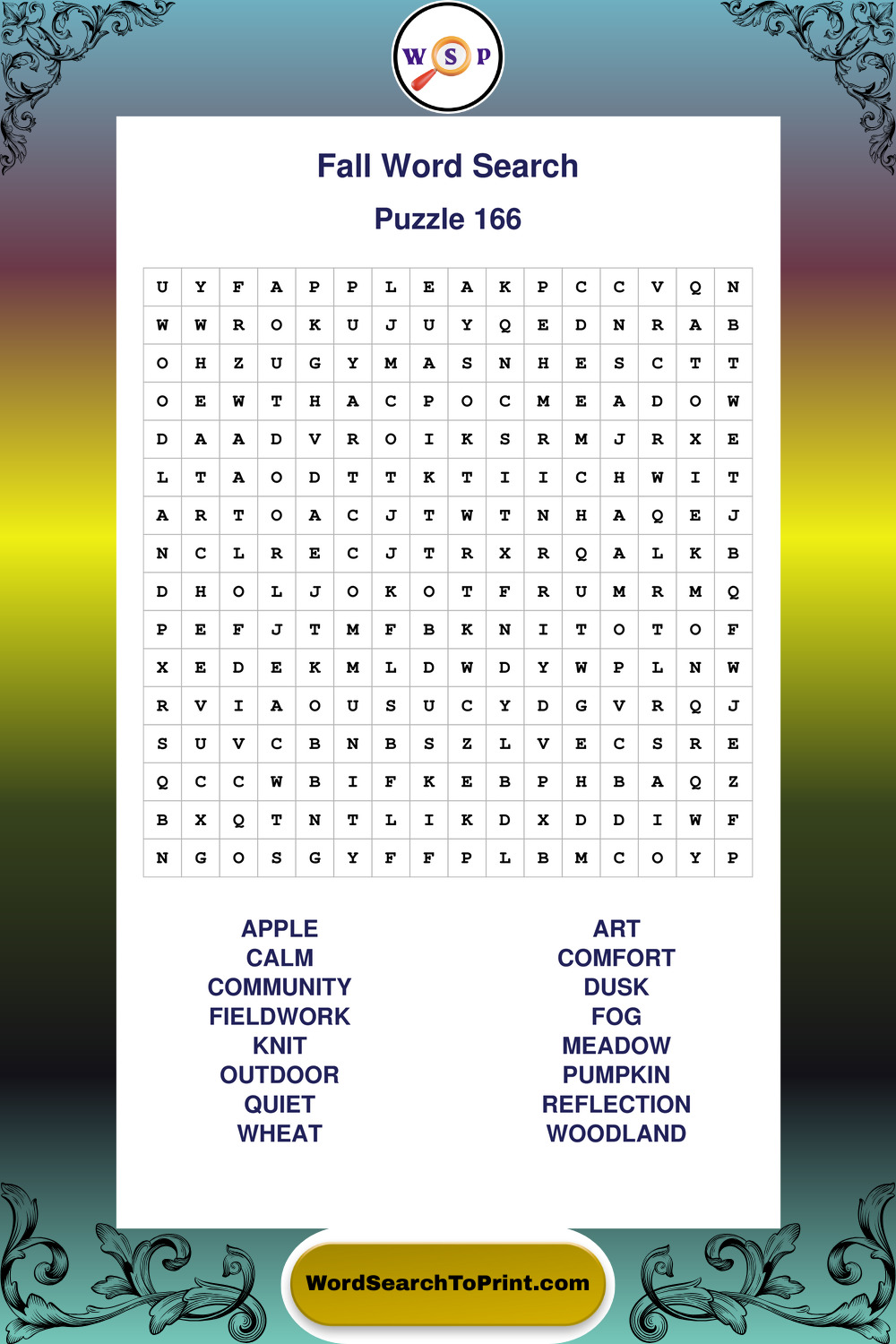 Discover large print Fall wordsearches designed to support relaxed thinking and comfortable reading.