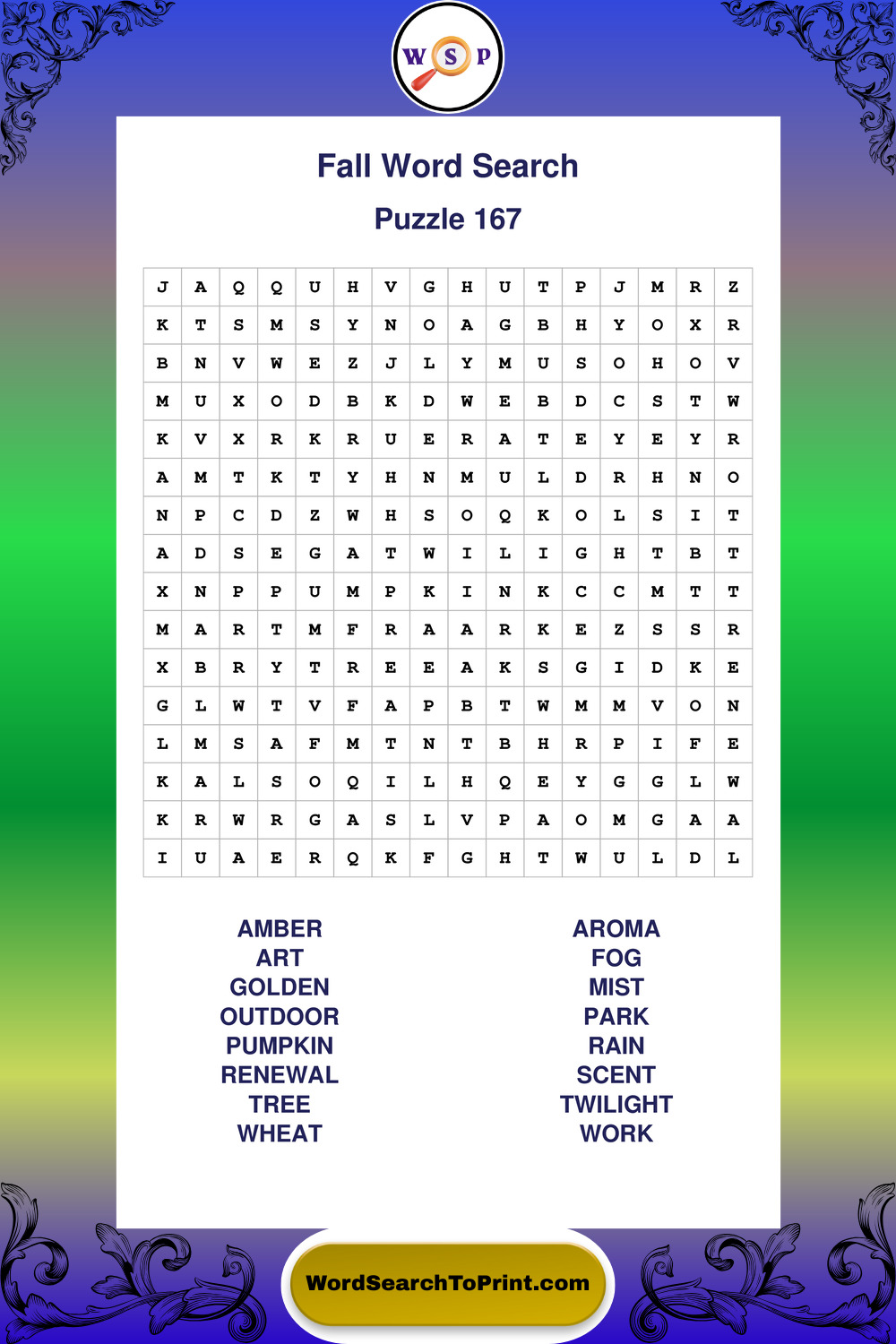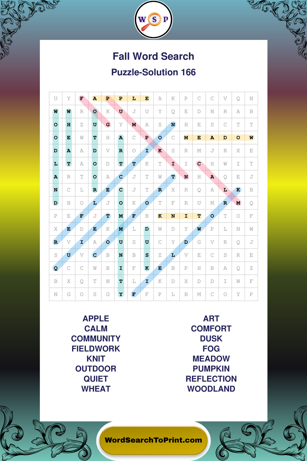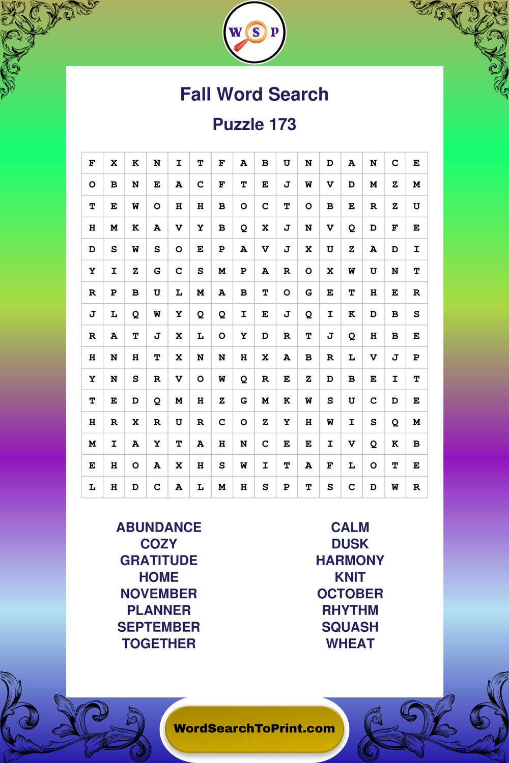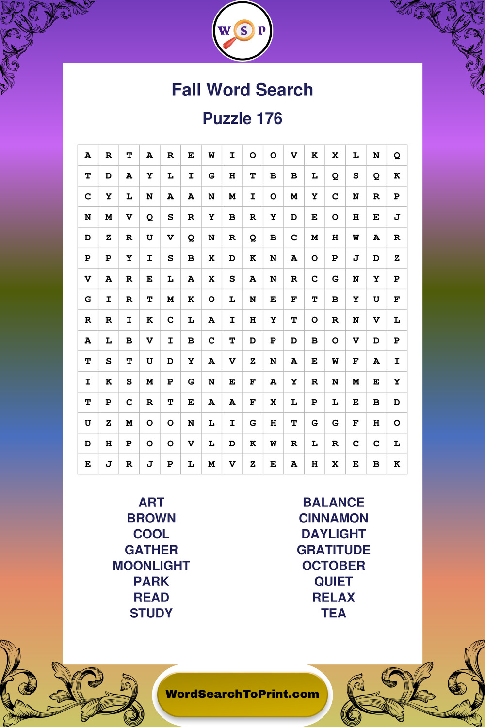 Discover large print Fall wordsearches designed to support relaxed thinking and comfortable reading.