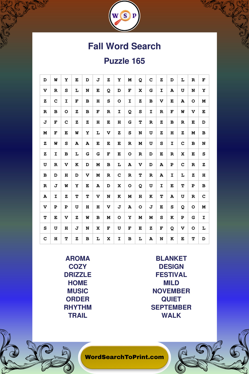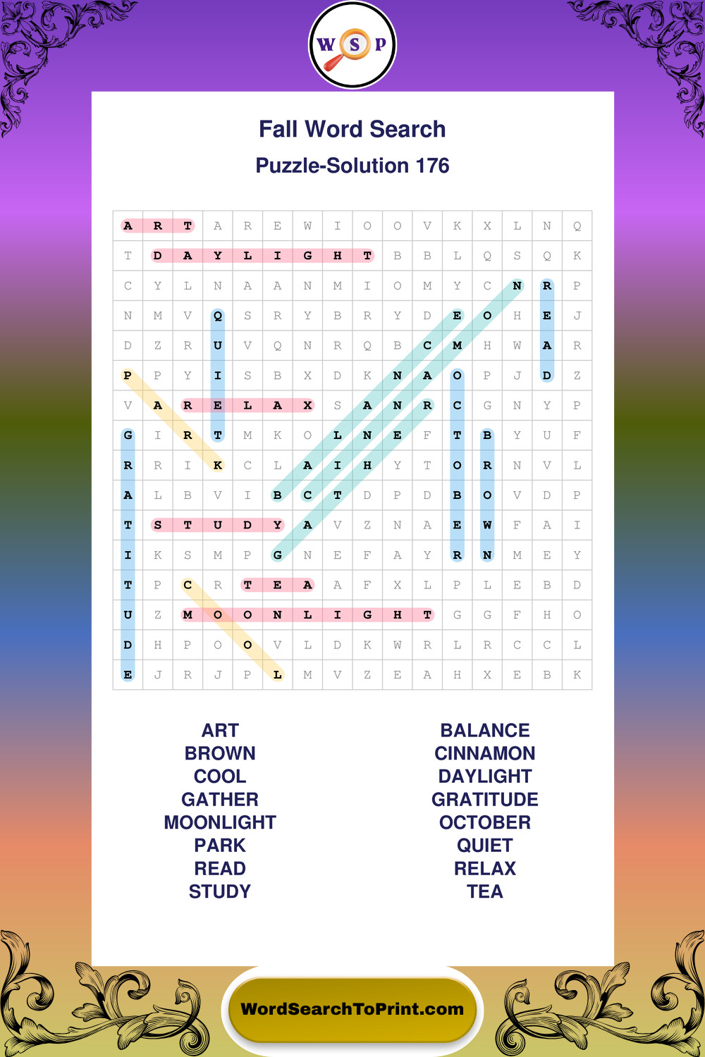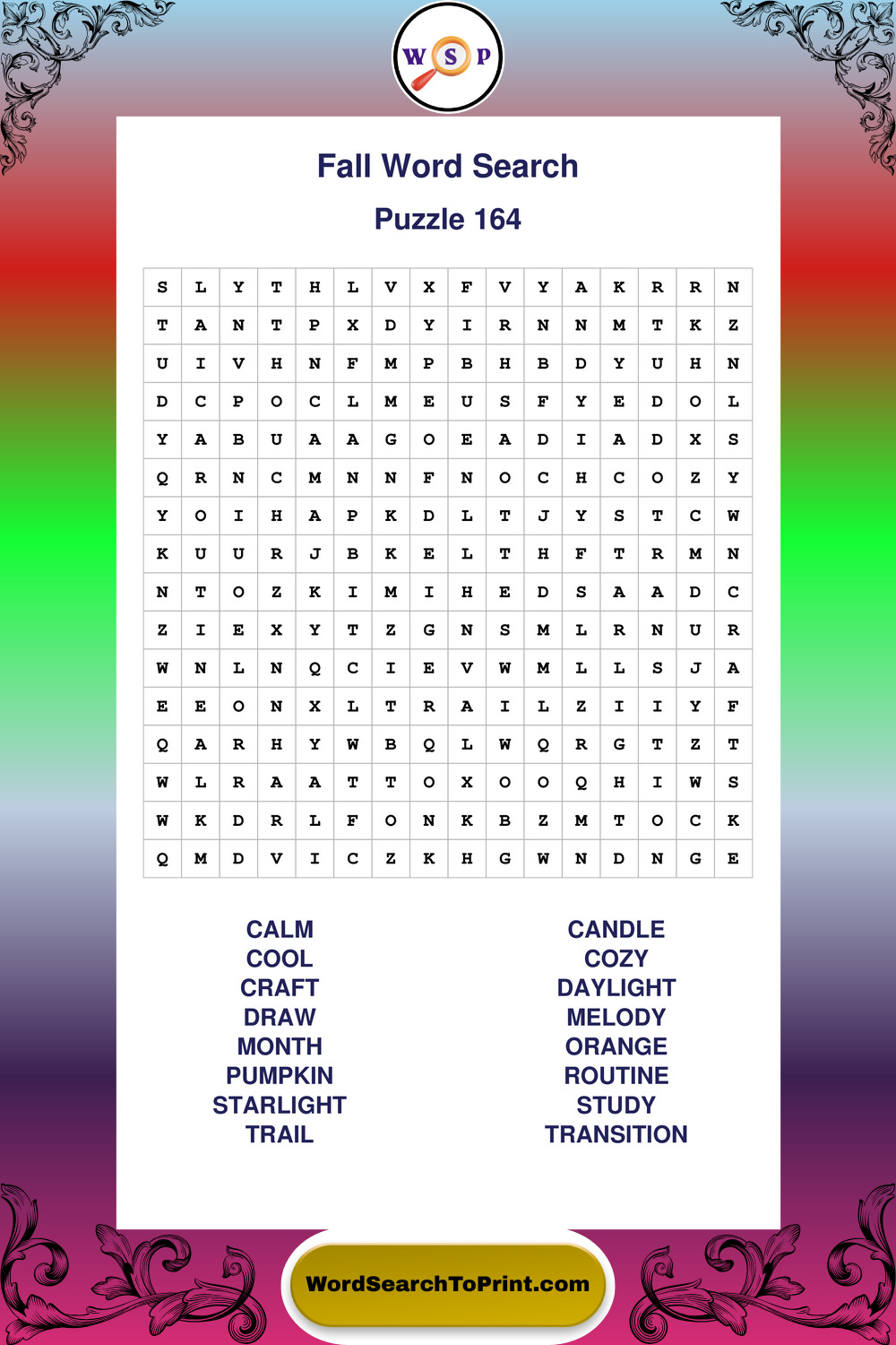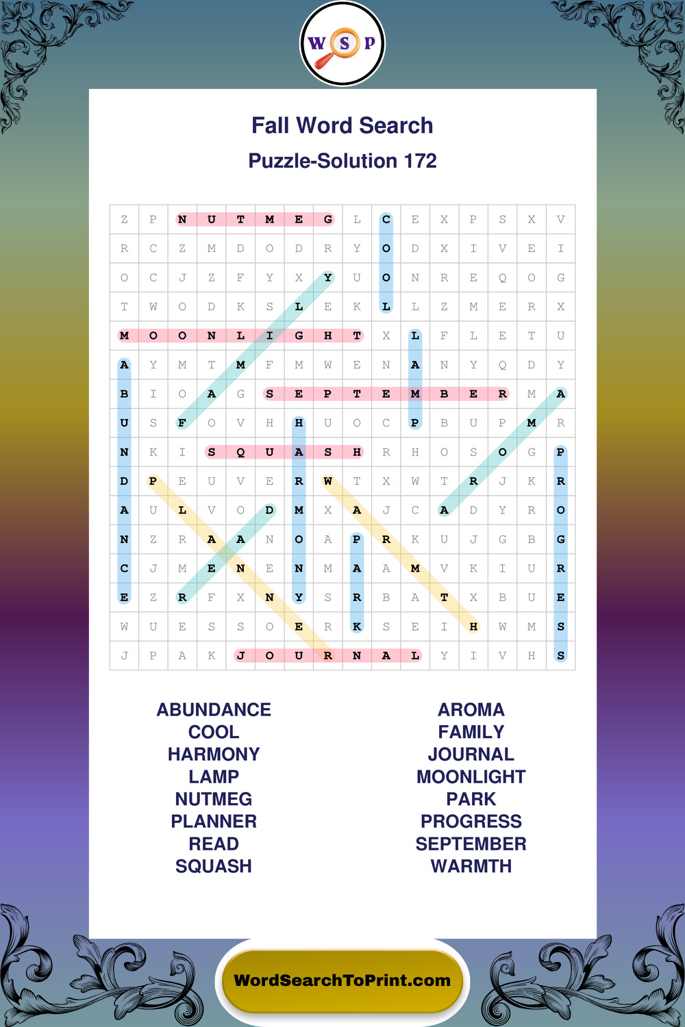 Discover large print Fall wordsearches designed to support relaxed thinking and comfortable reading.
