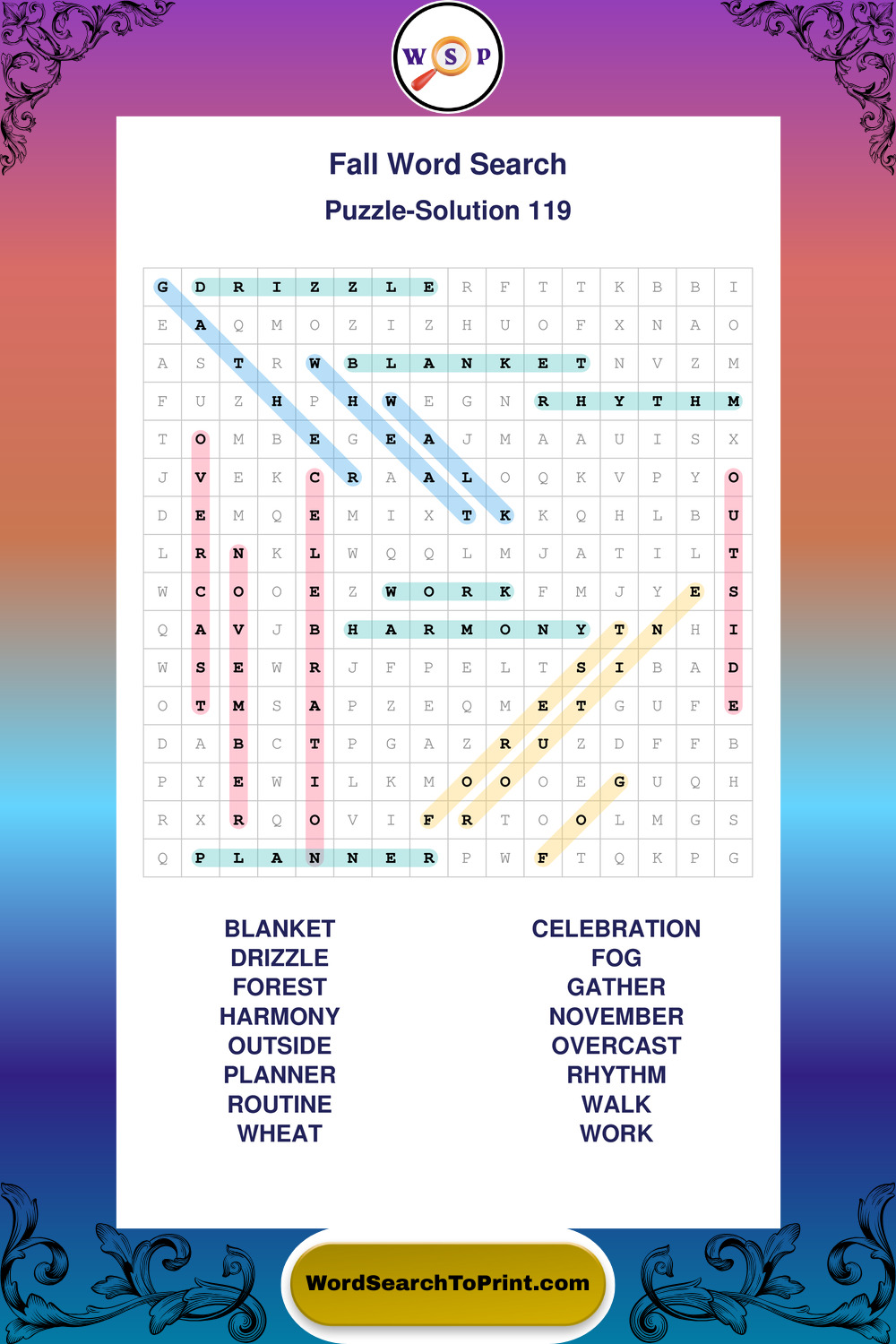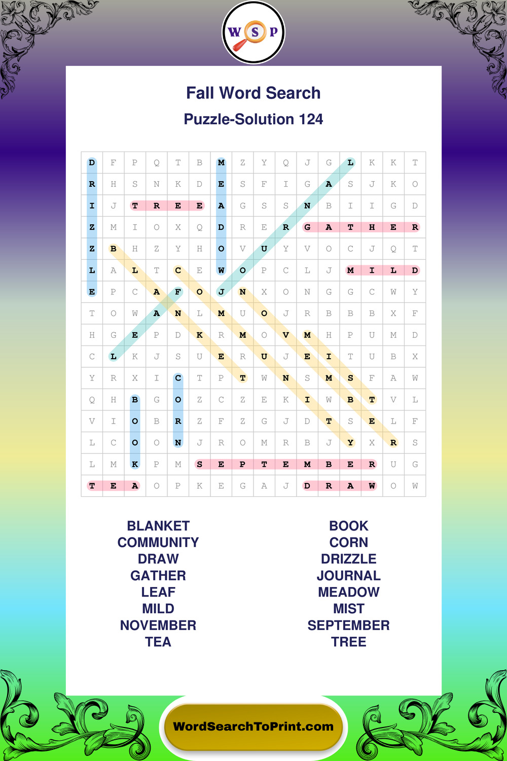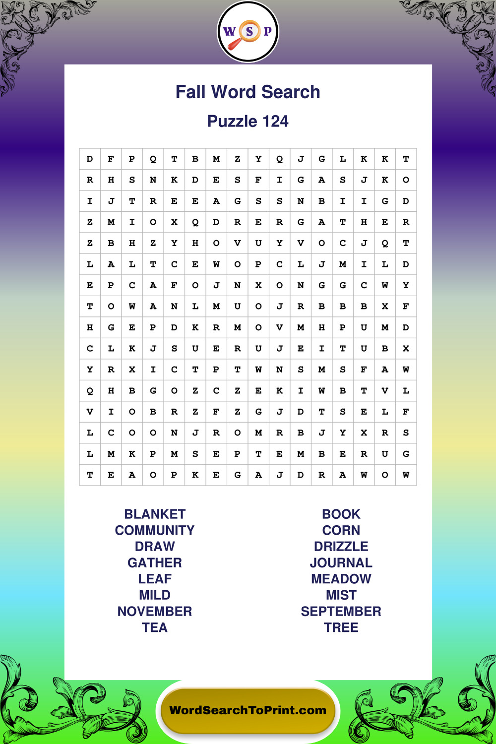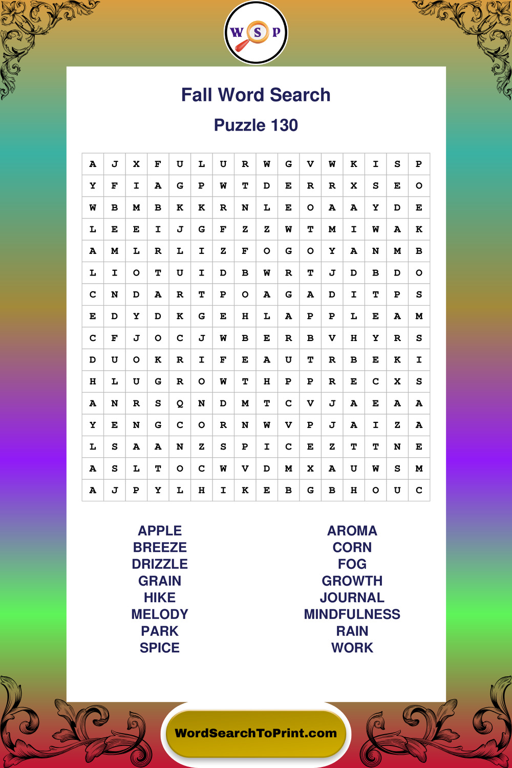 Printable Fall Wordsearch Puzzles