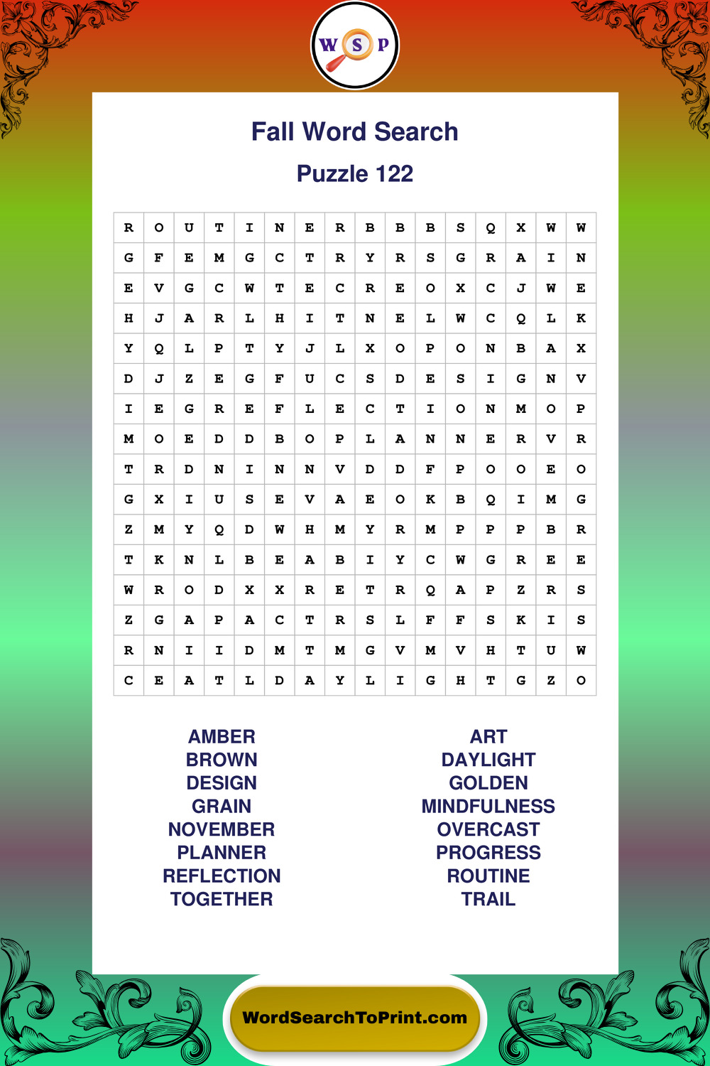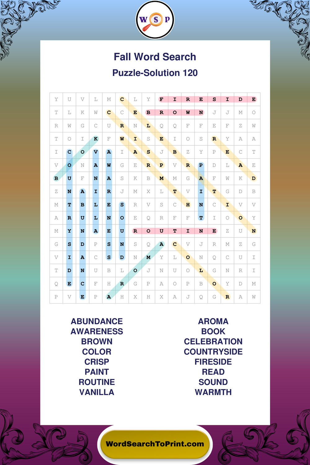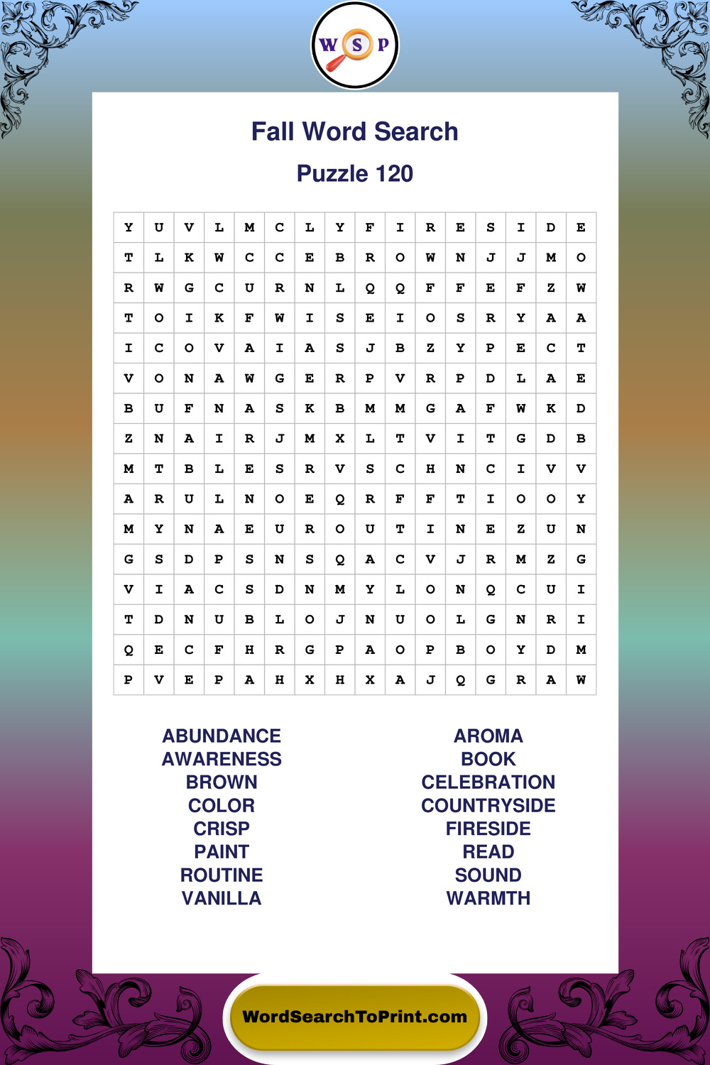 Discover large print Fall wordsearches designed to support relaxed thinking and comfortable reading.