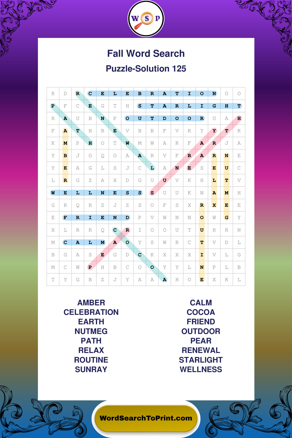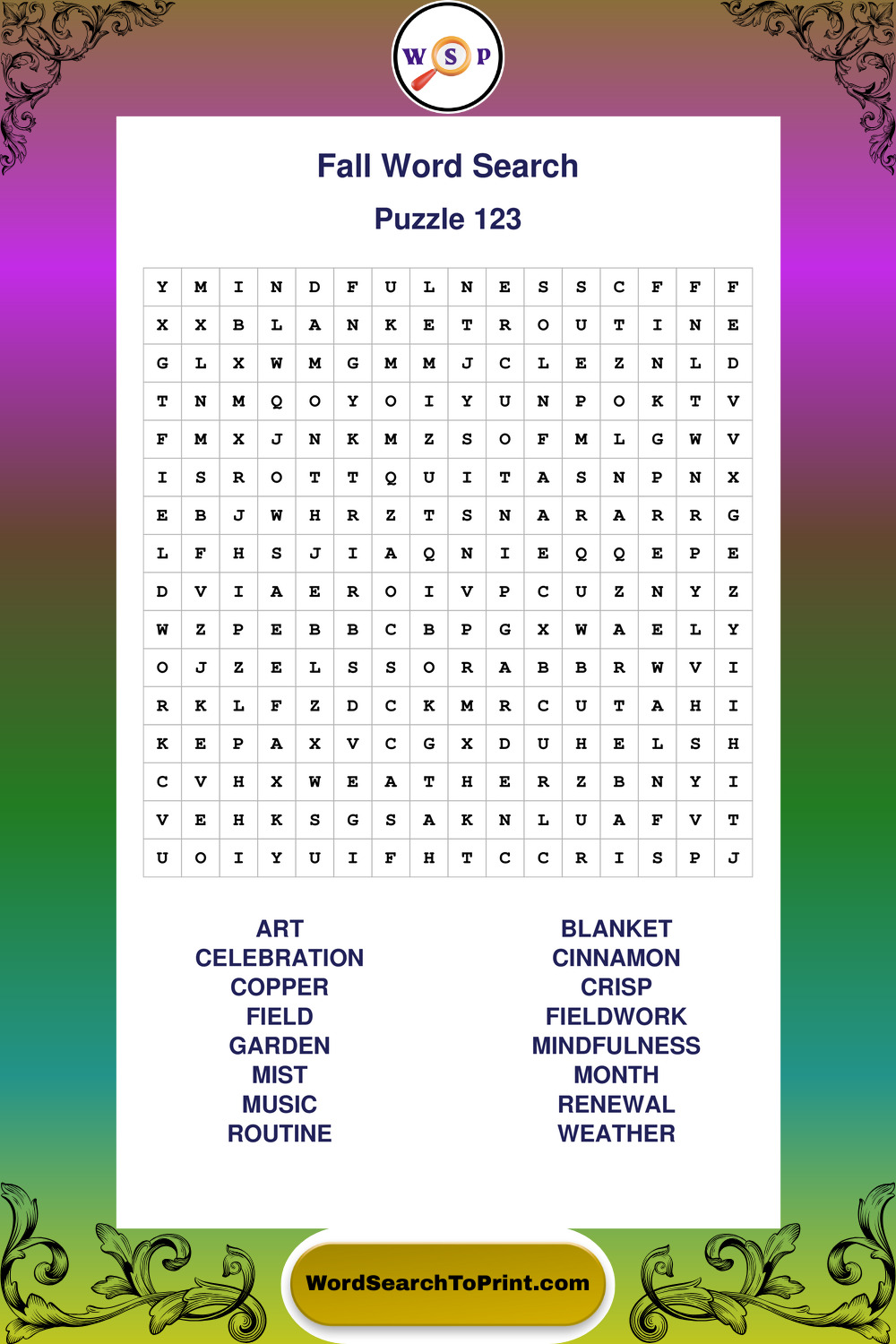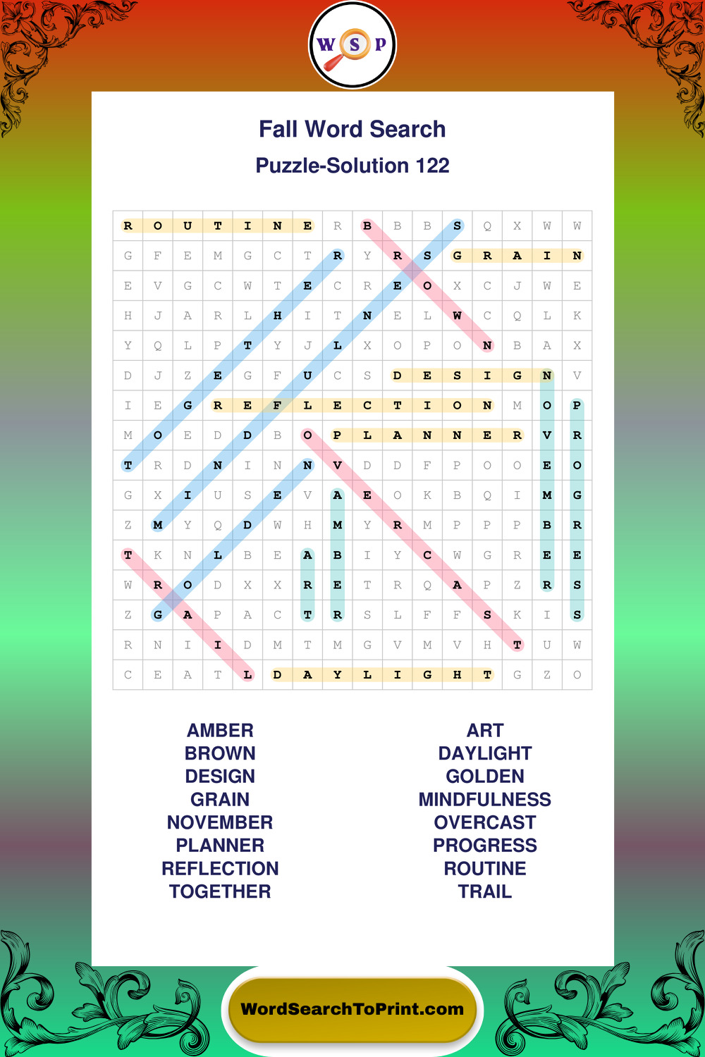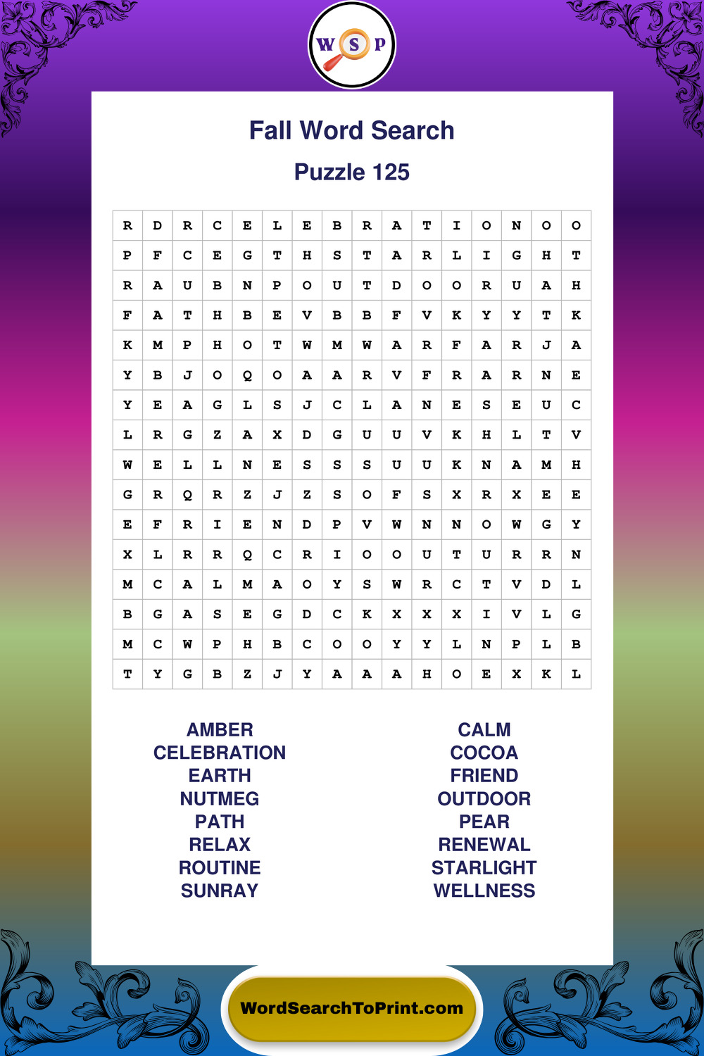 Discover large print Fall wordsearches designed to support relaxed thinking and comfortable reading.