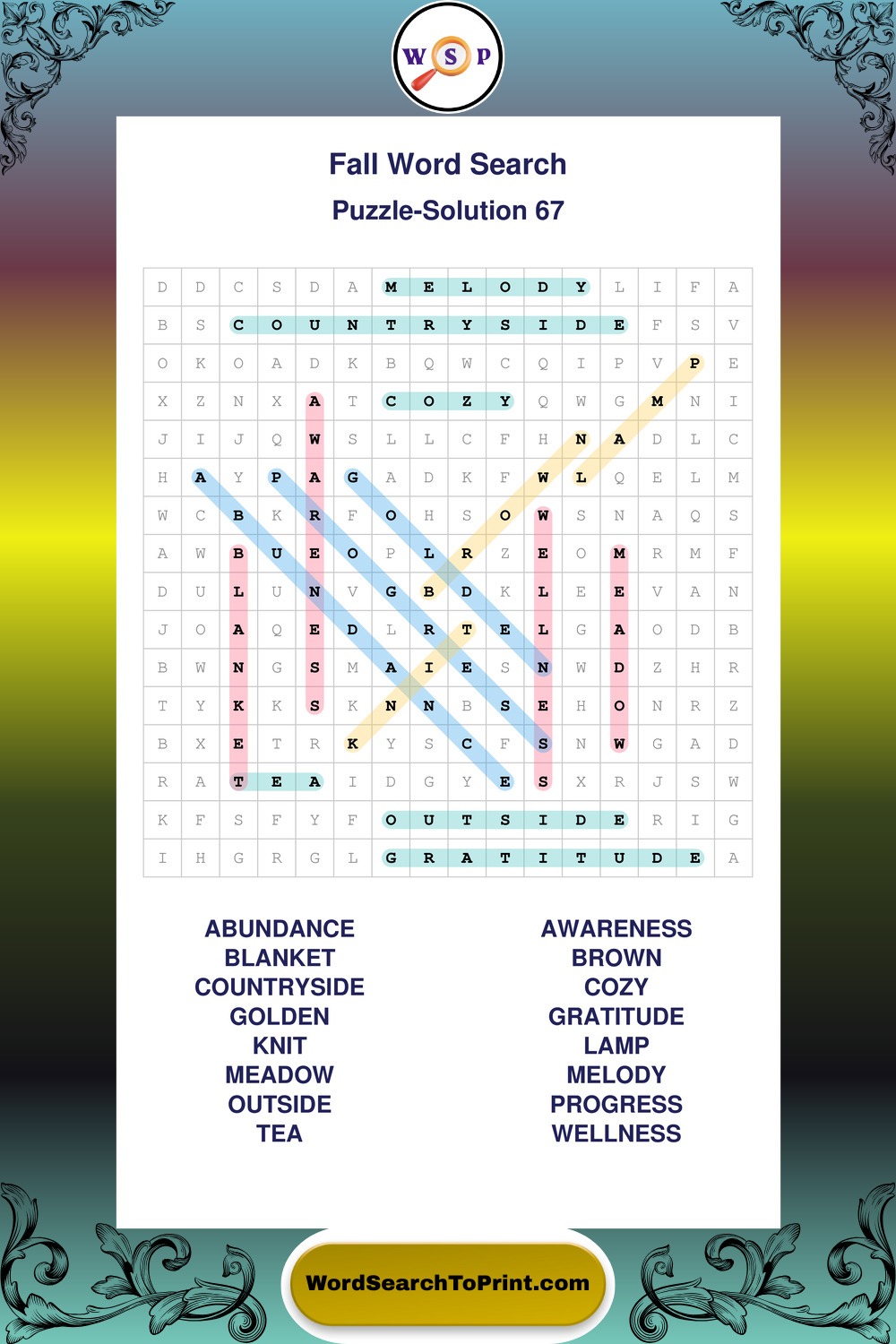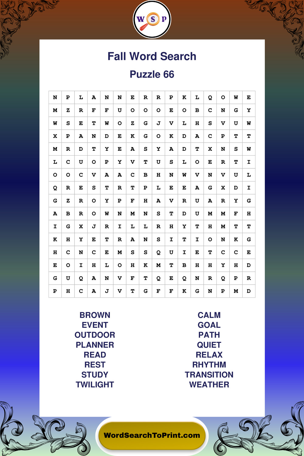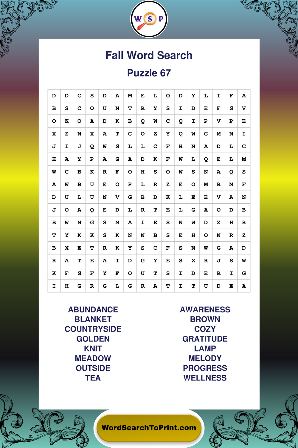 Discover large print Fall wordsearches designed to support relaxed thinking and comfortable reading.