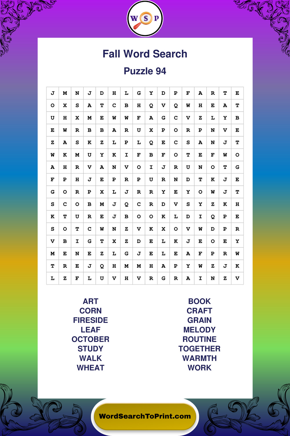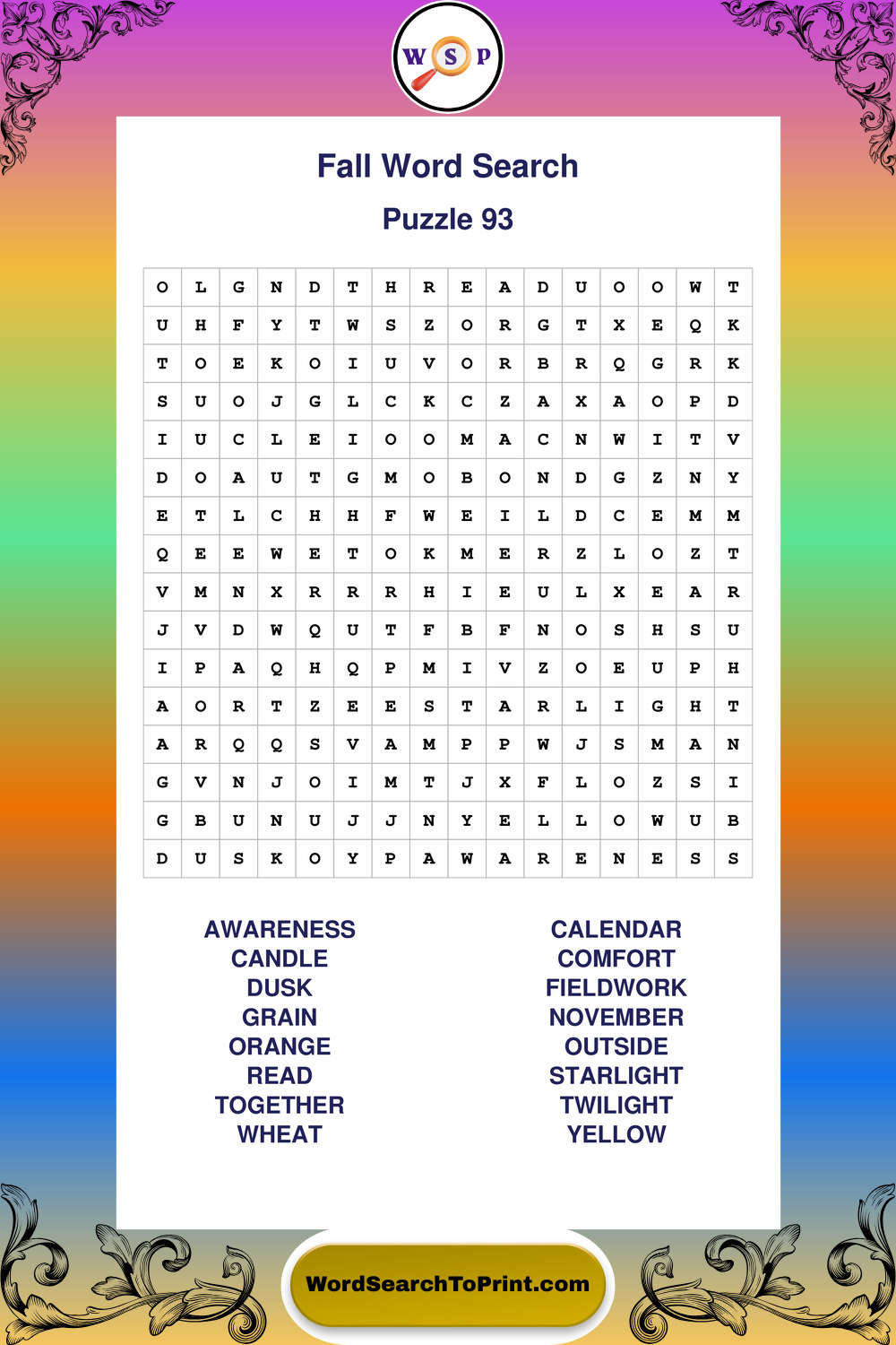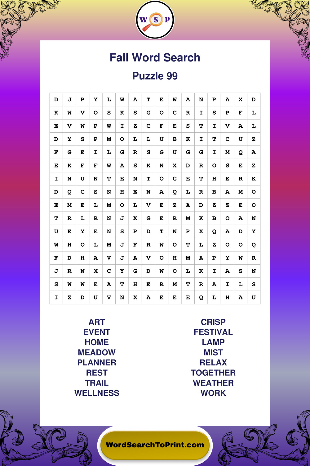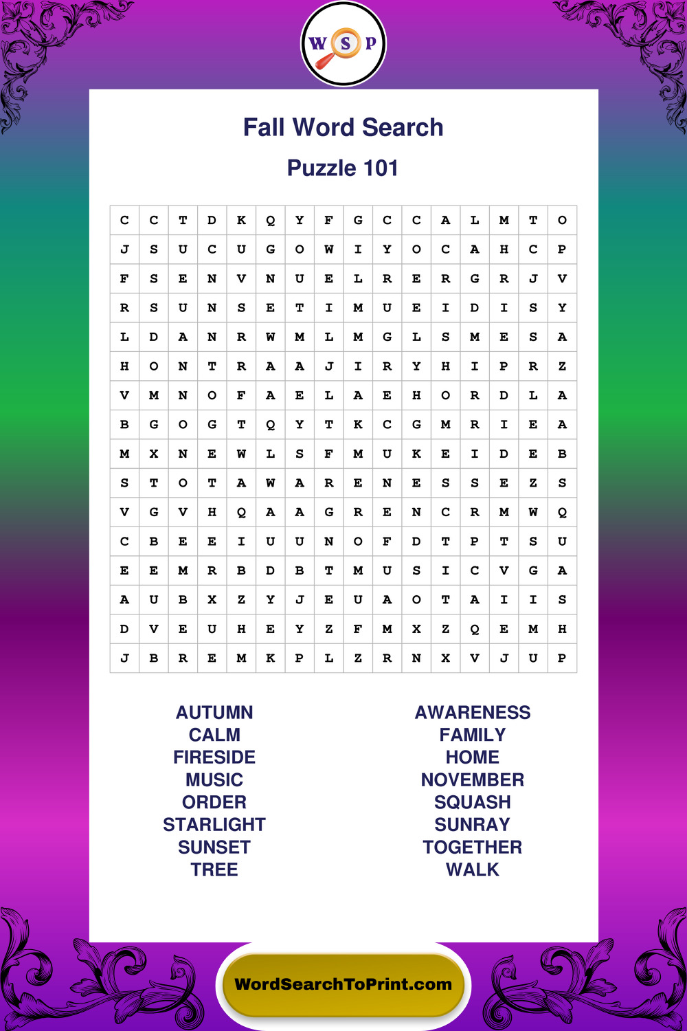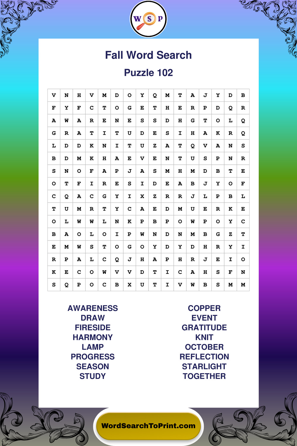 Discover large print Fall wordsearches designed to support relaxed thinking and comfortable reading.