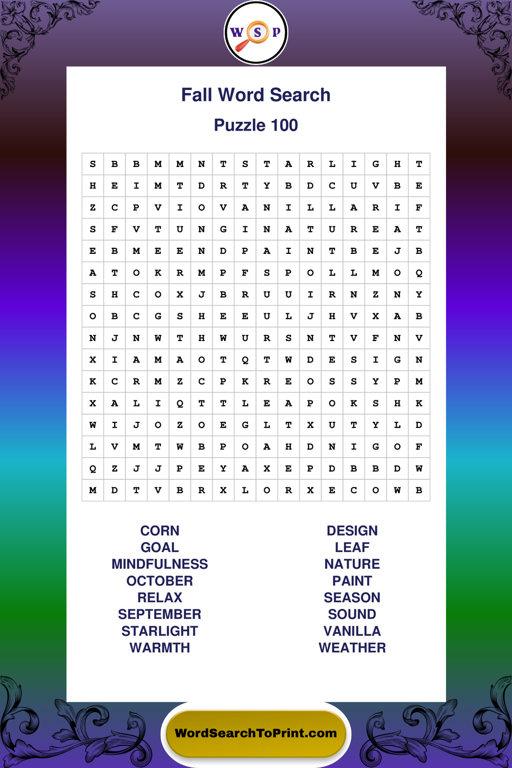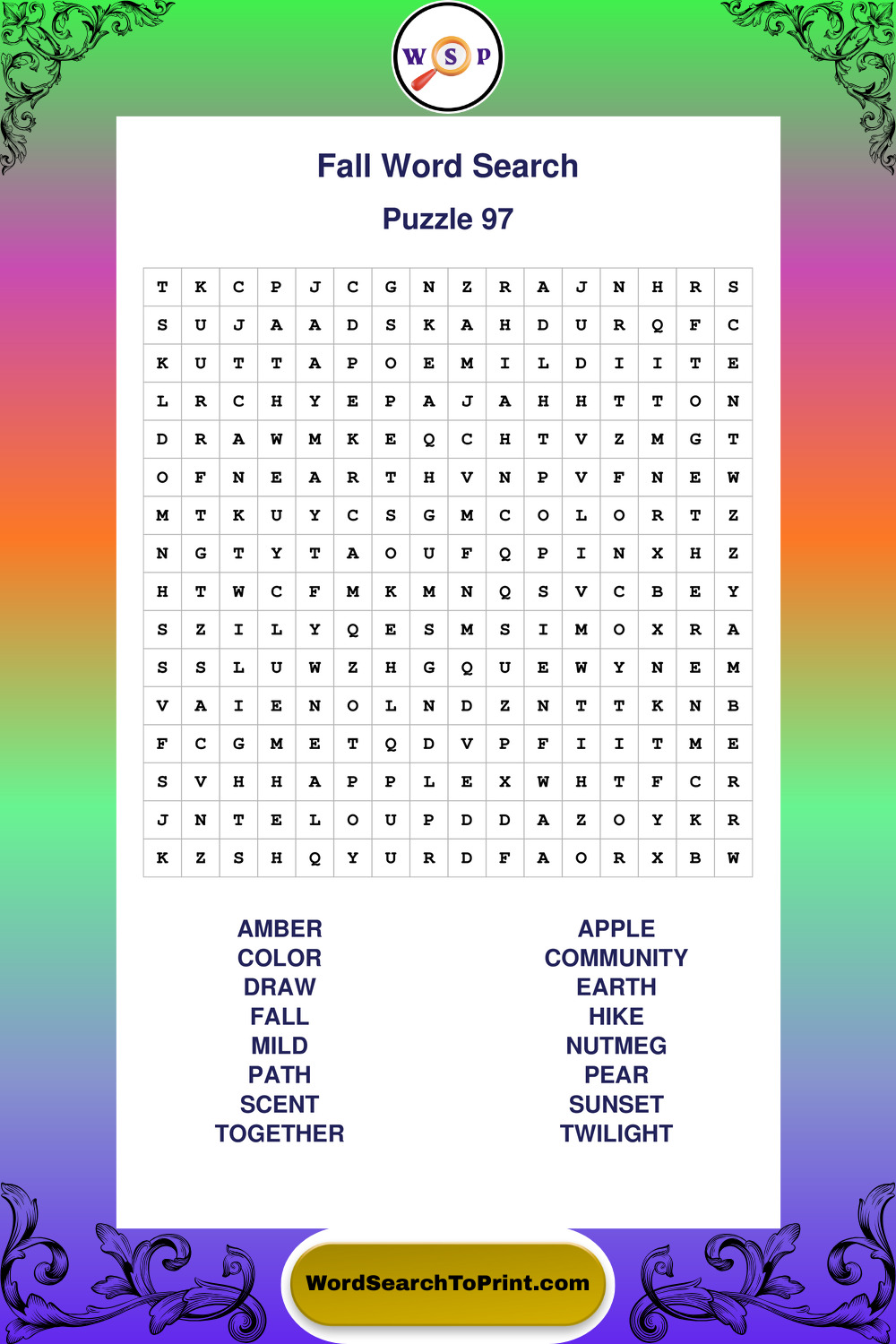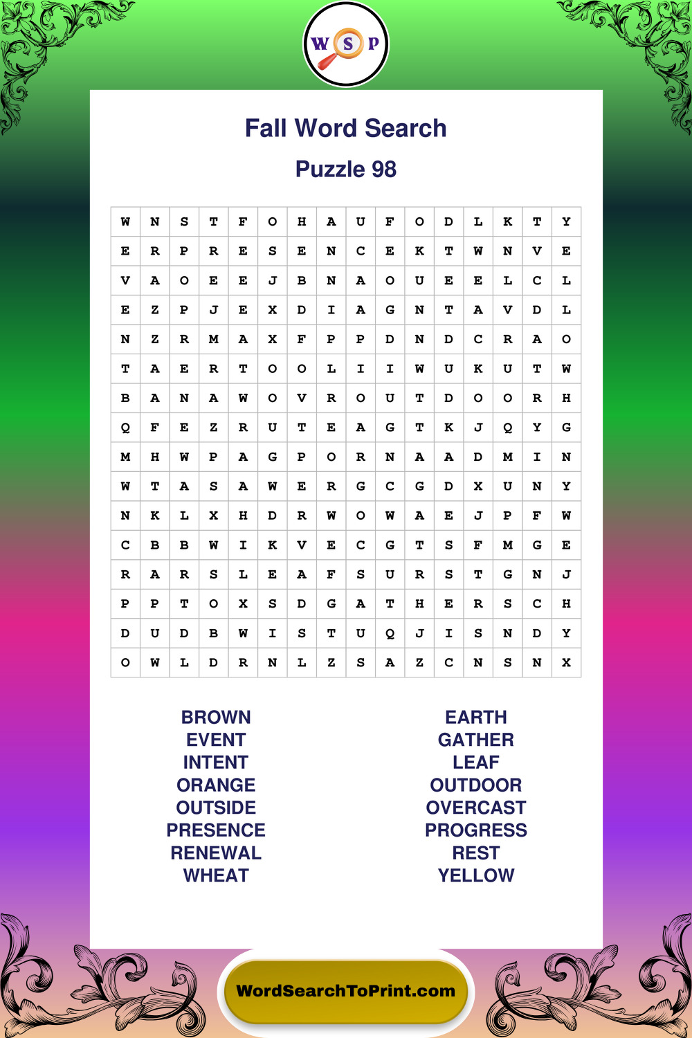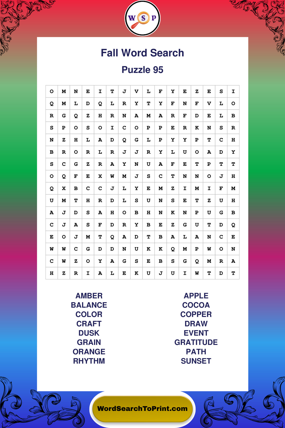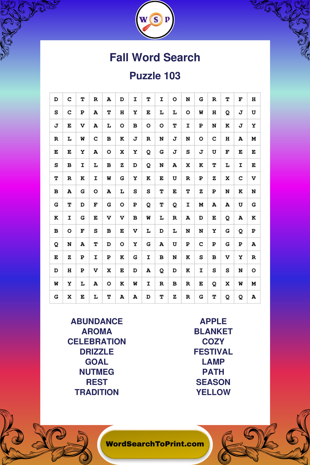 Discover large print Fall wordsearches designed to support relaxed thinking and comfortable reading.